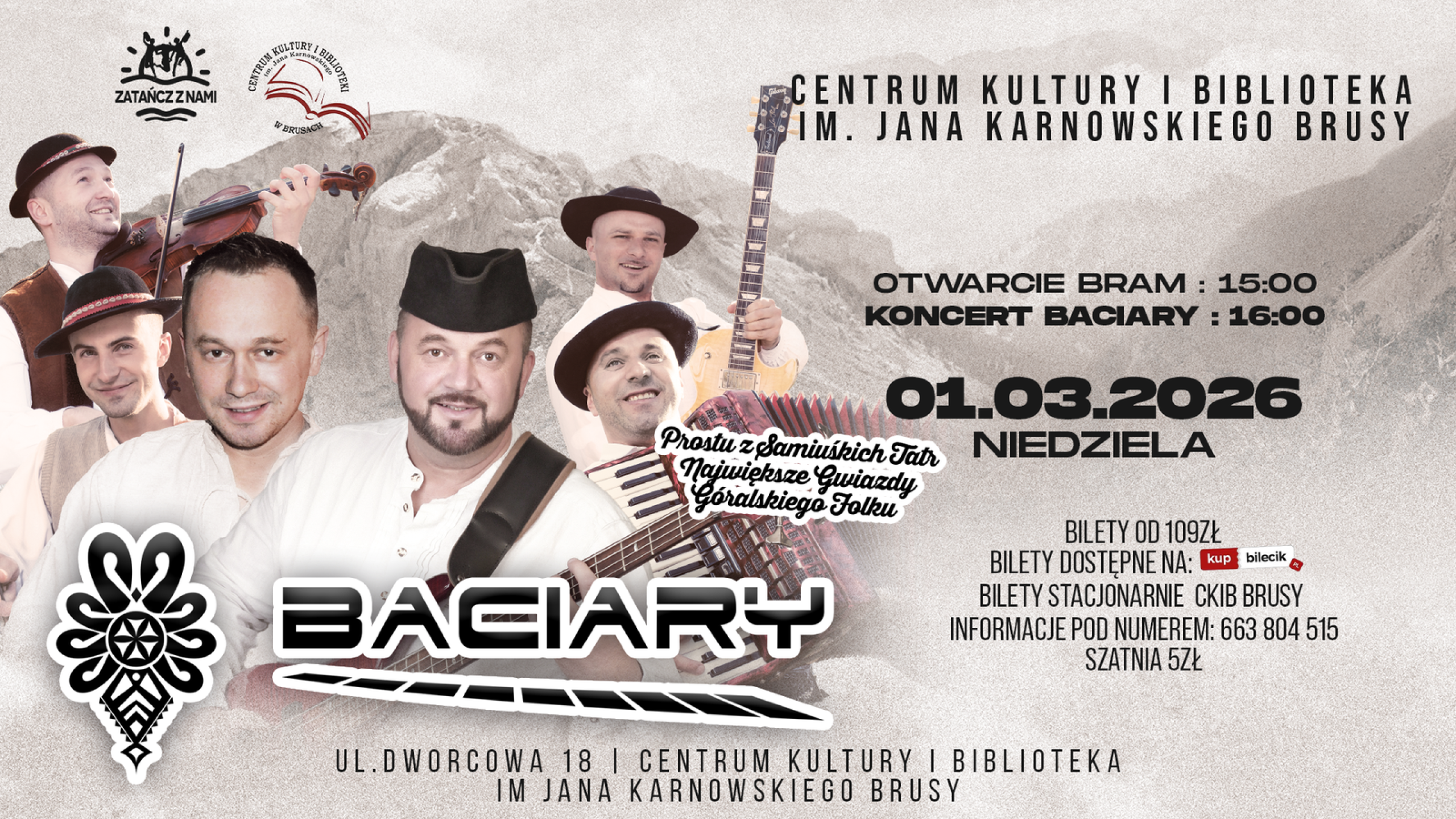 1 marca 2026 (niedziela) Centrum Kultury i Biblioteki w Brusach