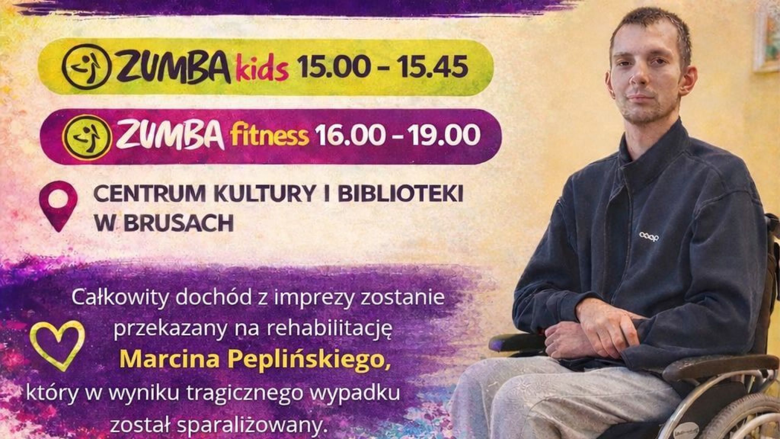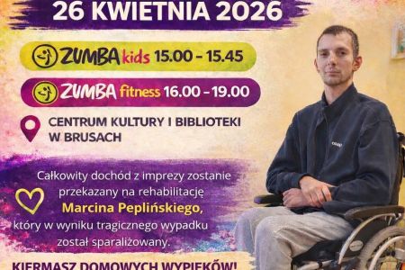 Charytatywny maraton zumby w Centrum Kultury i Biblioteki w Brusach - 26 kwietnia 15.00-19.00 Wstęp…