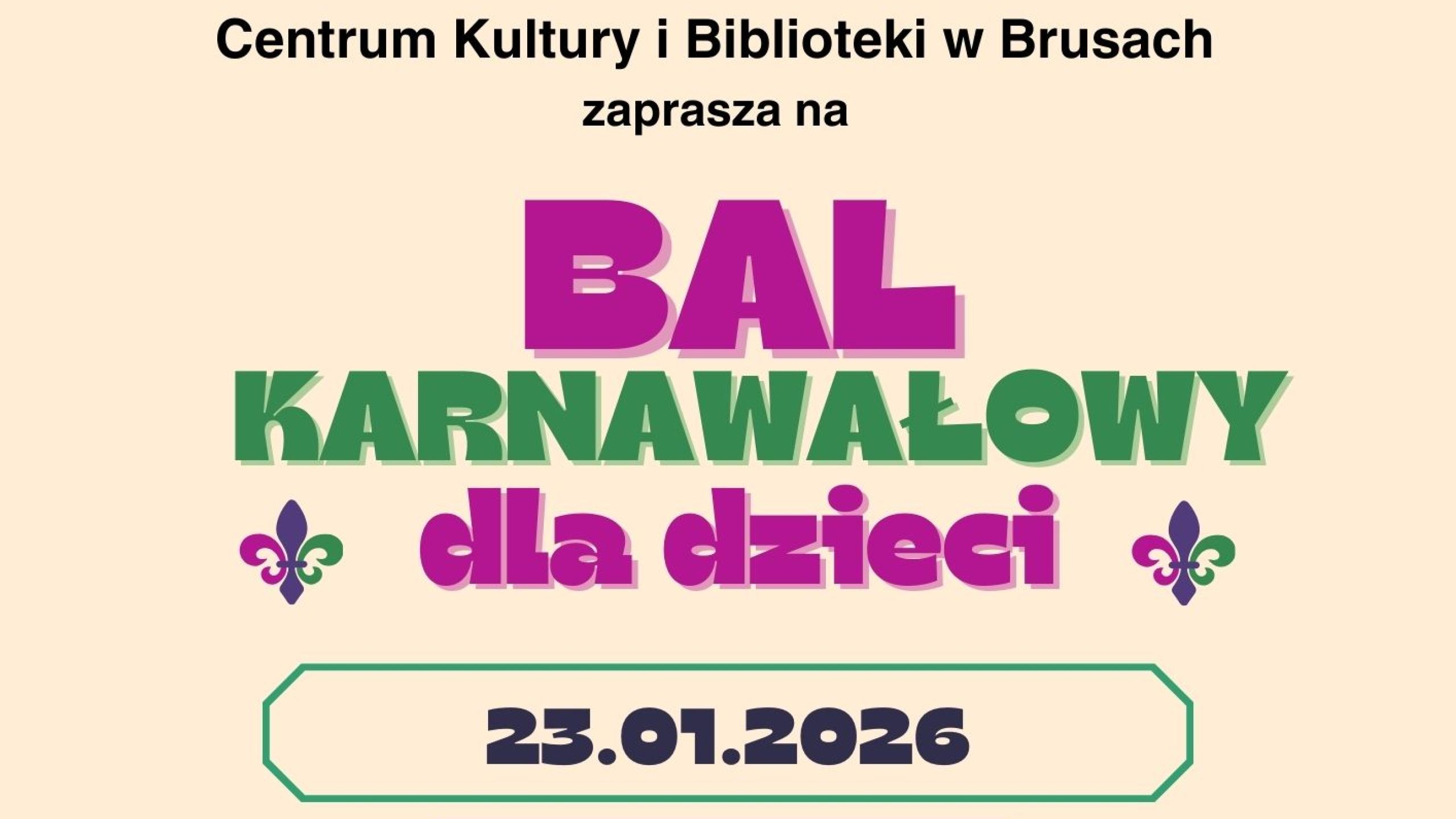 Centrum Kultury i Biblioteki w Brusach zaprasza na Zabawę Karnawałową przy muzyce BEJMUS DJ – WOD…