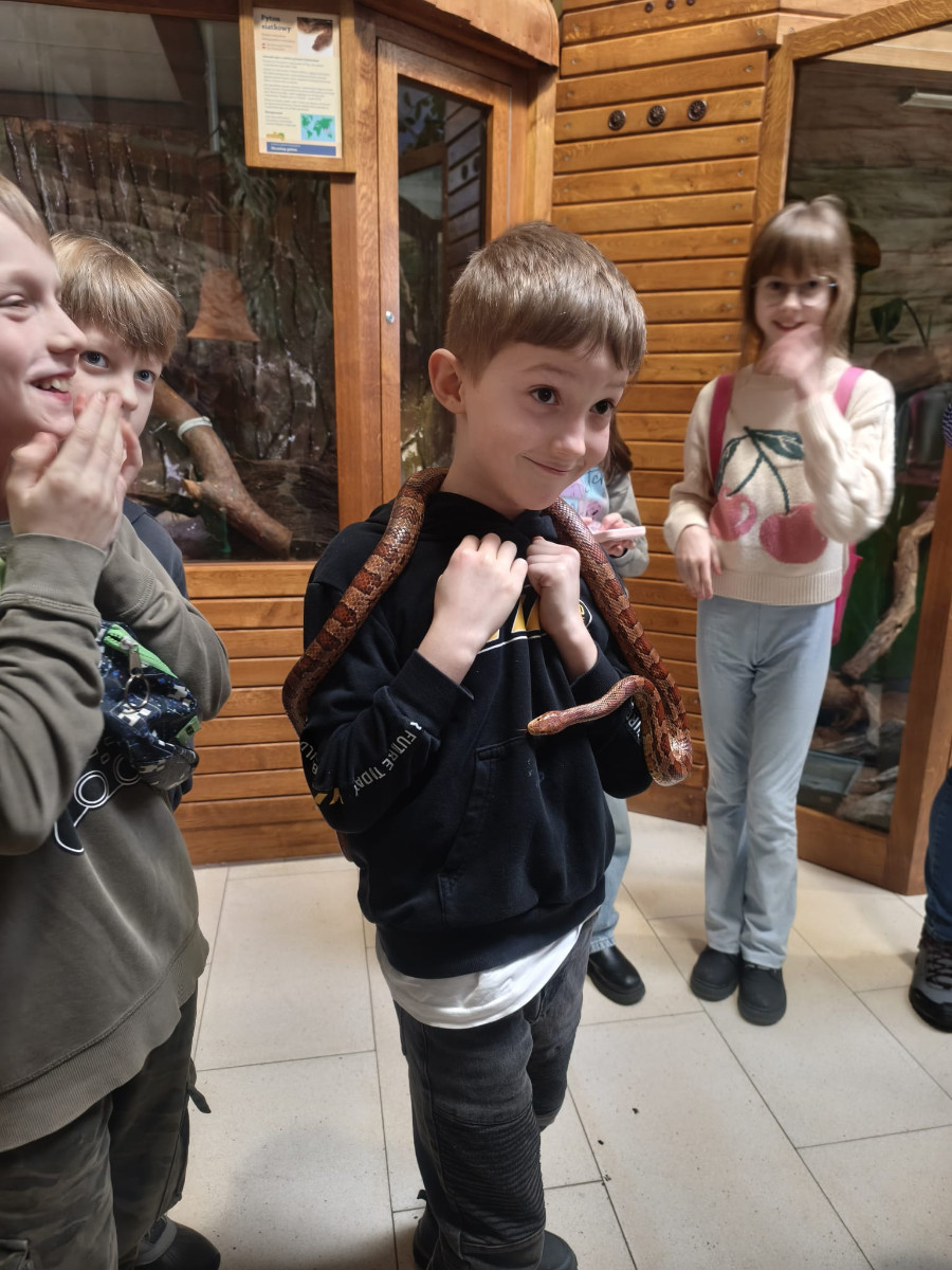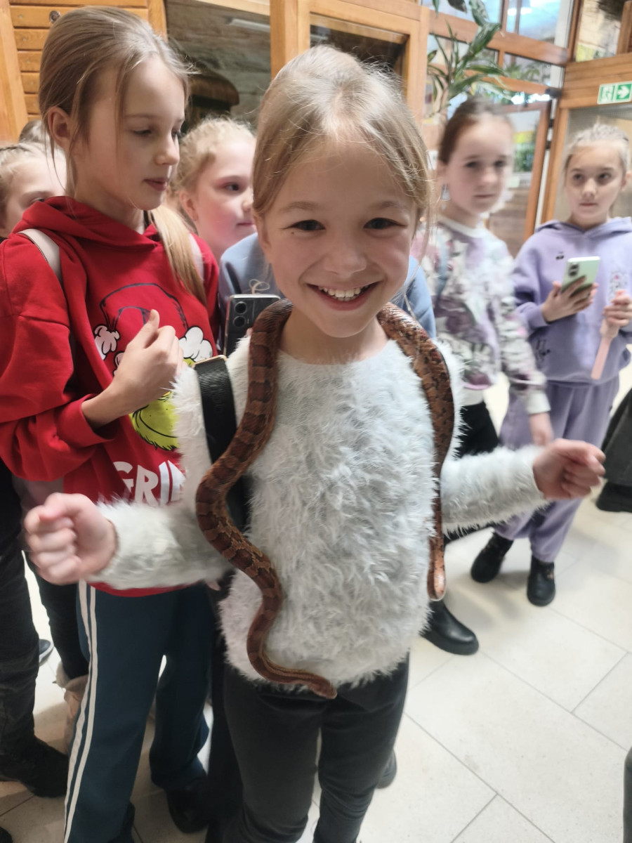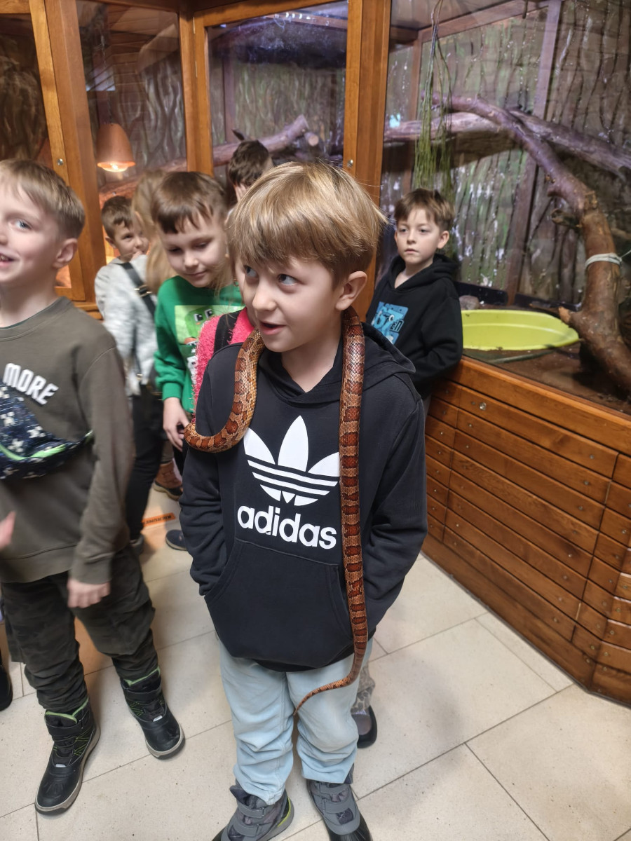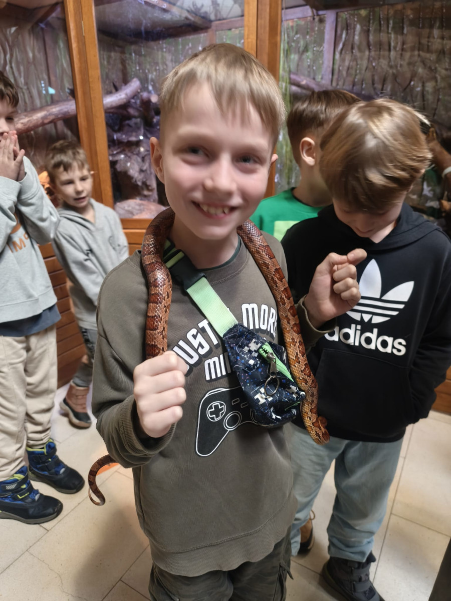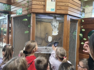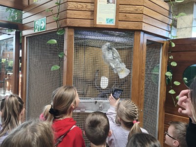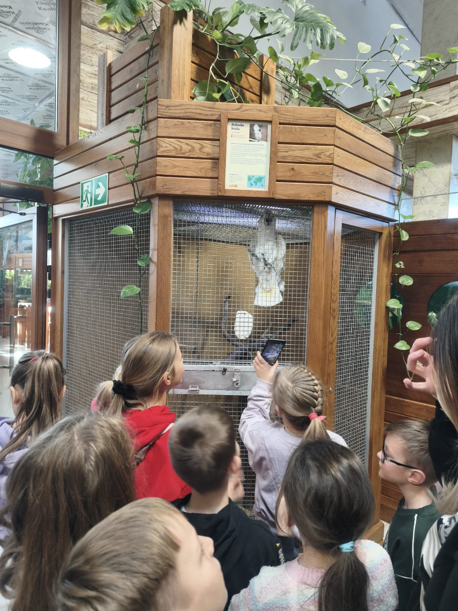 Największą sympatię wśród dzieci wzbudziły papugi kakadu – Dorotka i Patryk. Ich barwne upierzenie, żywiołowe zachowanie oraz bezpośredni kontakt z opiekunami sprawiły, że stały się prawdziwymi gwiazdami wycieczki i na długo zapadły uczestnikom w pamięć.