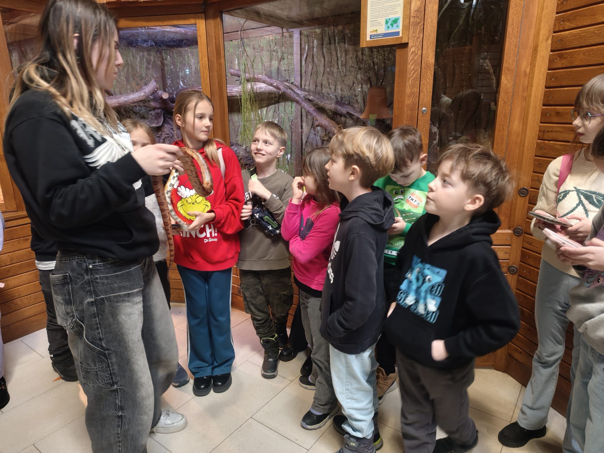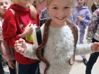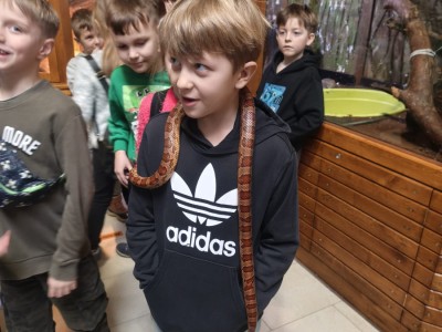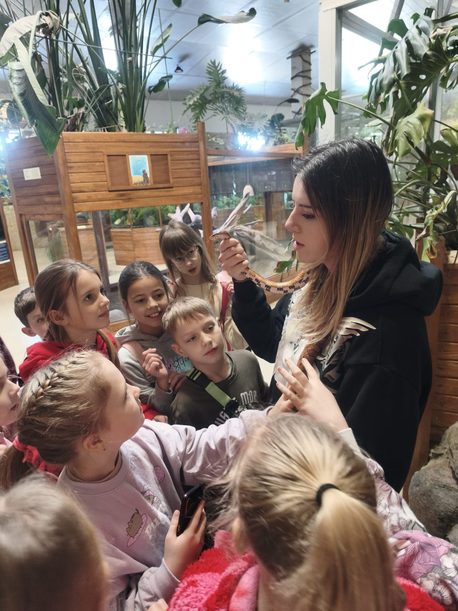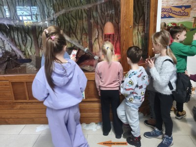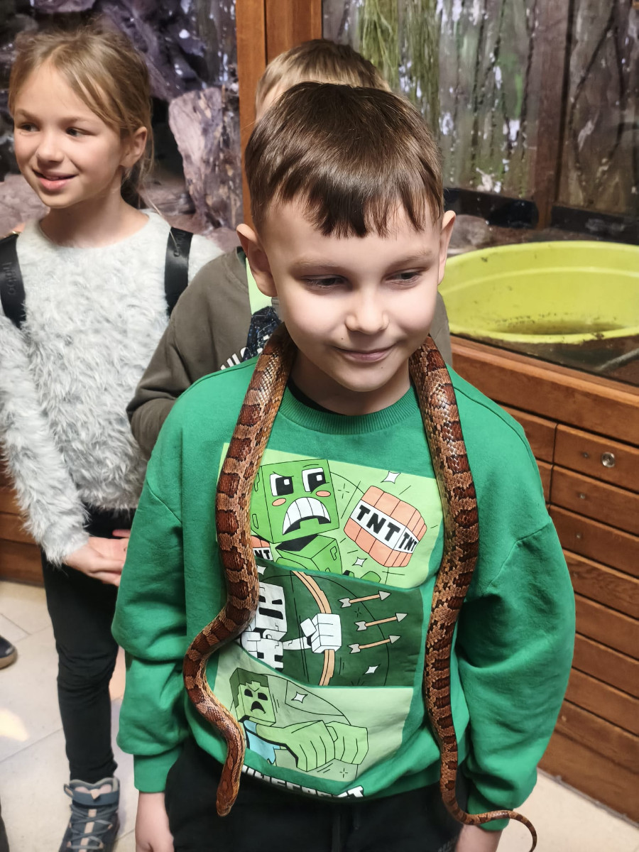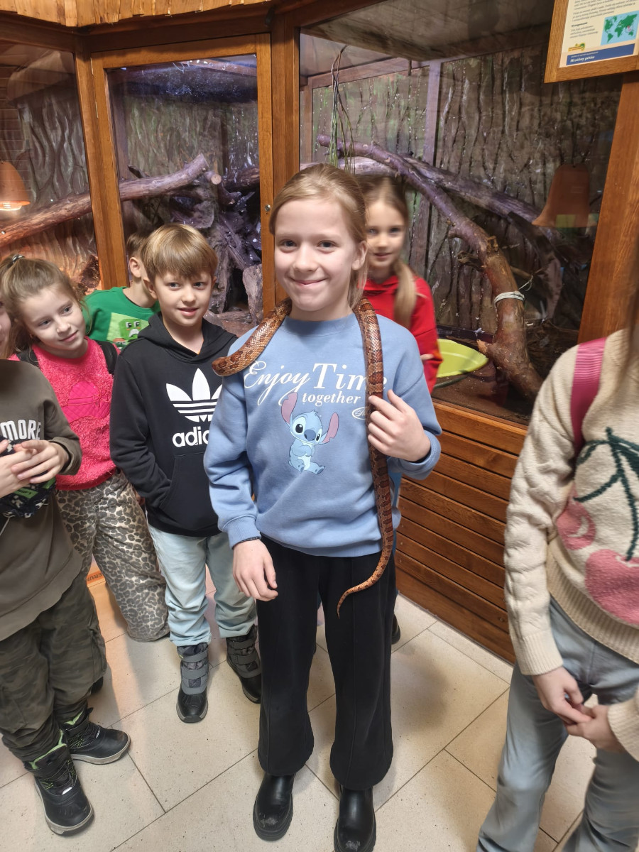 Największą sympatię wśród dzieci wzbudziły papugi kakadu – Dorotka i Patryk. Ich barwne upierzenie, żywiołowe zachowanie oraz bezpośredni kontakt z opiekunami sprawiły, że stały się prawdziwymi gwiazdami wycieczki i na długo zapadły uczestnikom w pamięć.