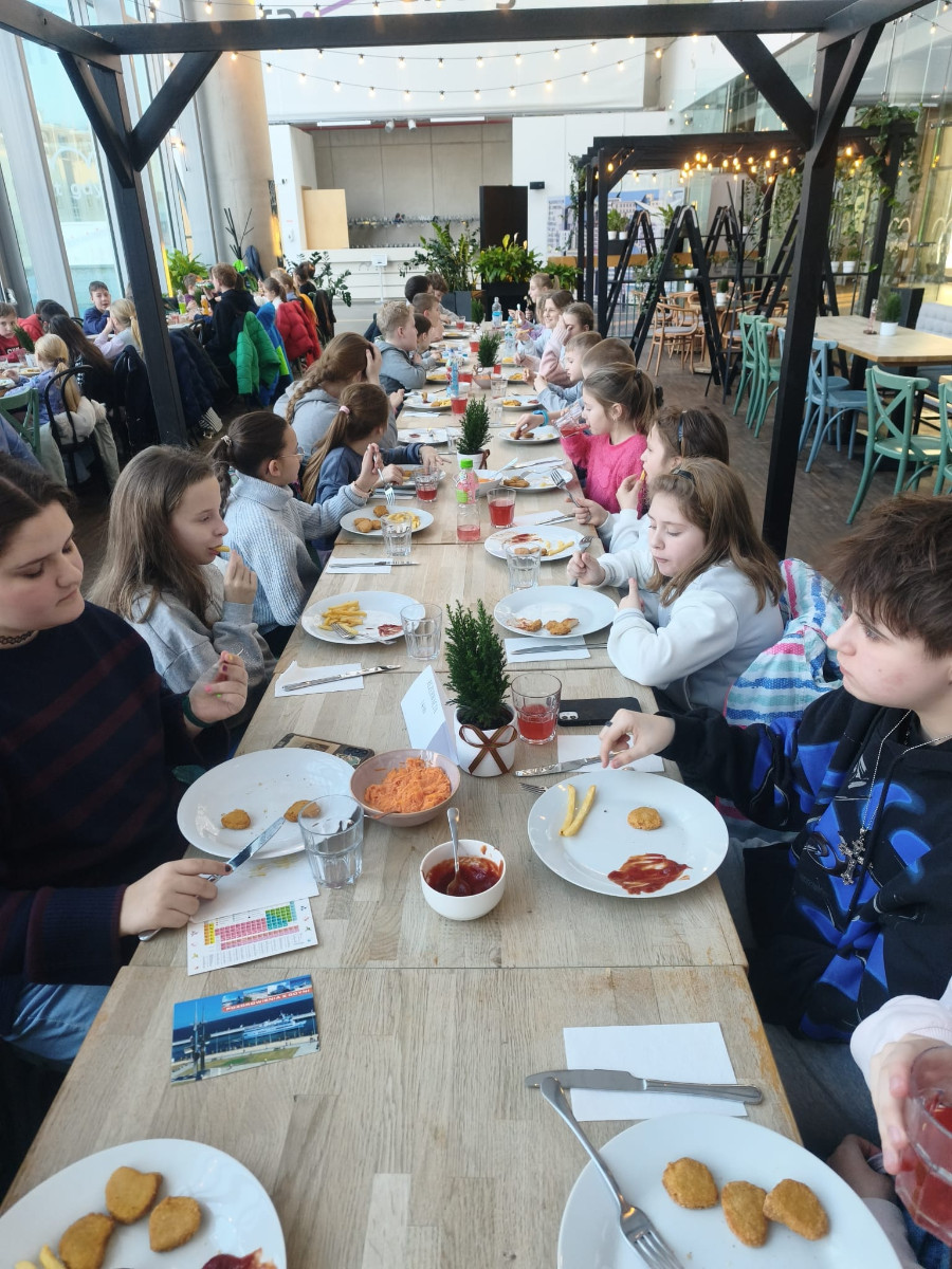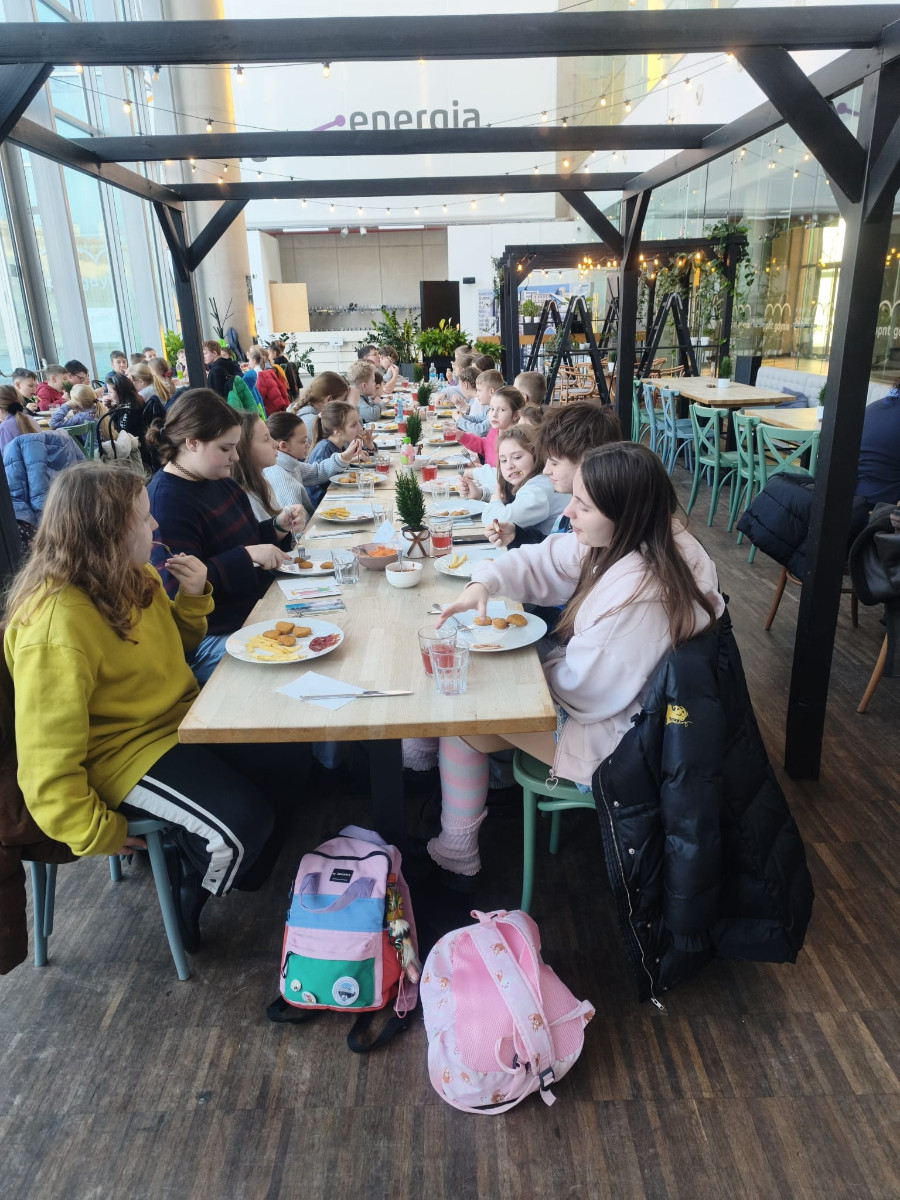 Na zakończenie wyjazdu wszyscy uczestnicy zjedli pyszny obiad, który był miłym podsumowaniem intensywnego i pełnego wrażeń dnia. Wycieczka do Gdyni okazała się doskonałym połączeniem edukacji, aktywności fizycznej i dobrej zabawy, stanowiąc kolejną udaną propozycję spędzenia ferii zimowych.