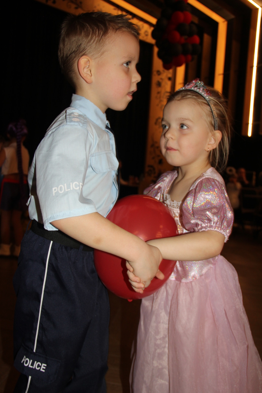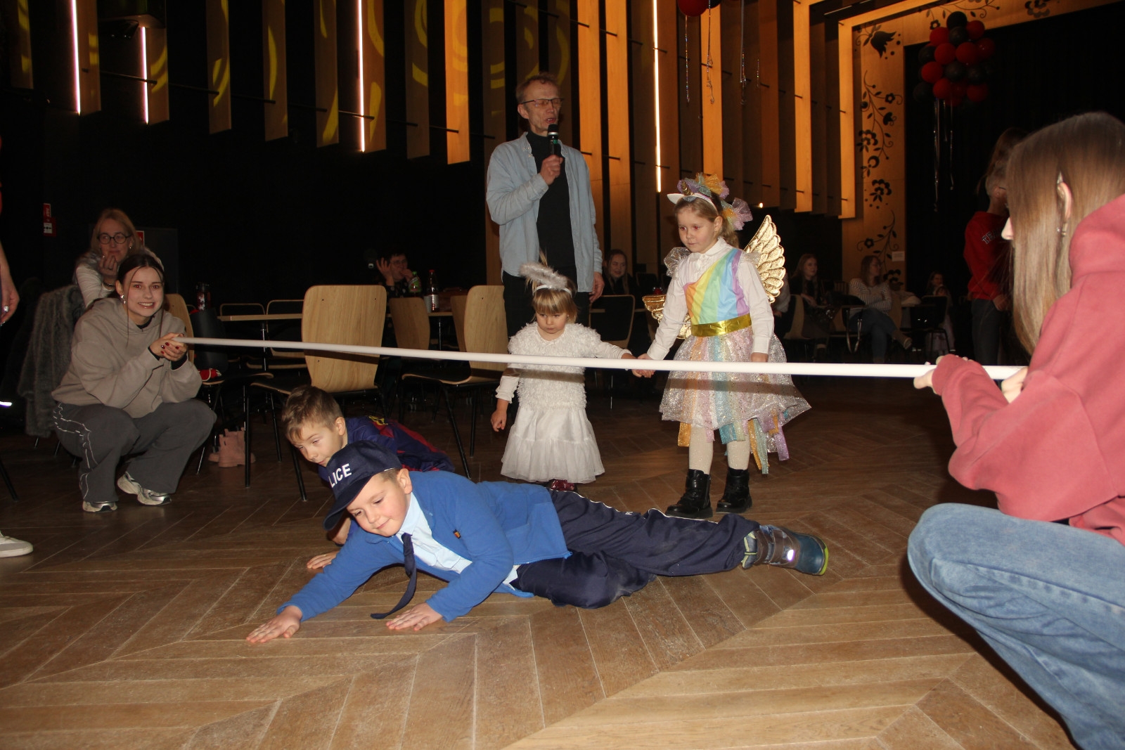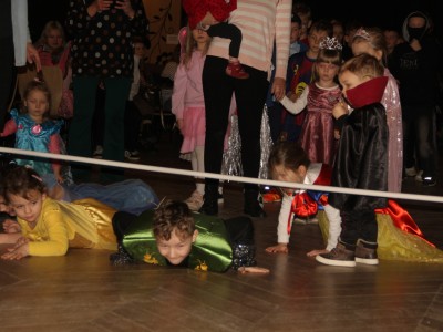 Podczas balu na dzieci czekało wiele atrakcji, zabaw i konkursów ruchowych. W programie znalazły się m.in. takie zabawy jak: „gorące krzesło”, „wędrujący prezent”, przechodzenie pod kijem, taniec z balonikami oraz liczne układy taneczne. Dzieci chętnie brały udział w tańcach takich jak „Zuzanna”, „Idą, idą moje nogi”, „Tańczymy la ba da”, a także w zabawach integracyjnych – wężu karnawałowym.