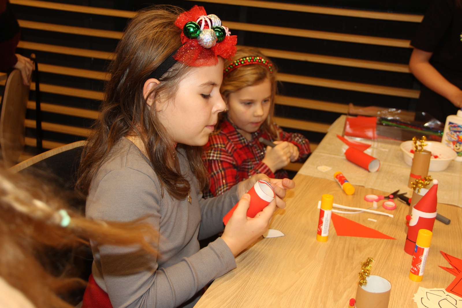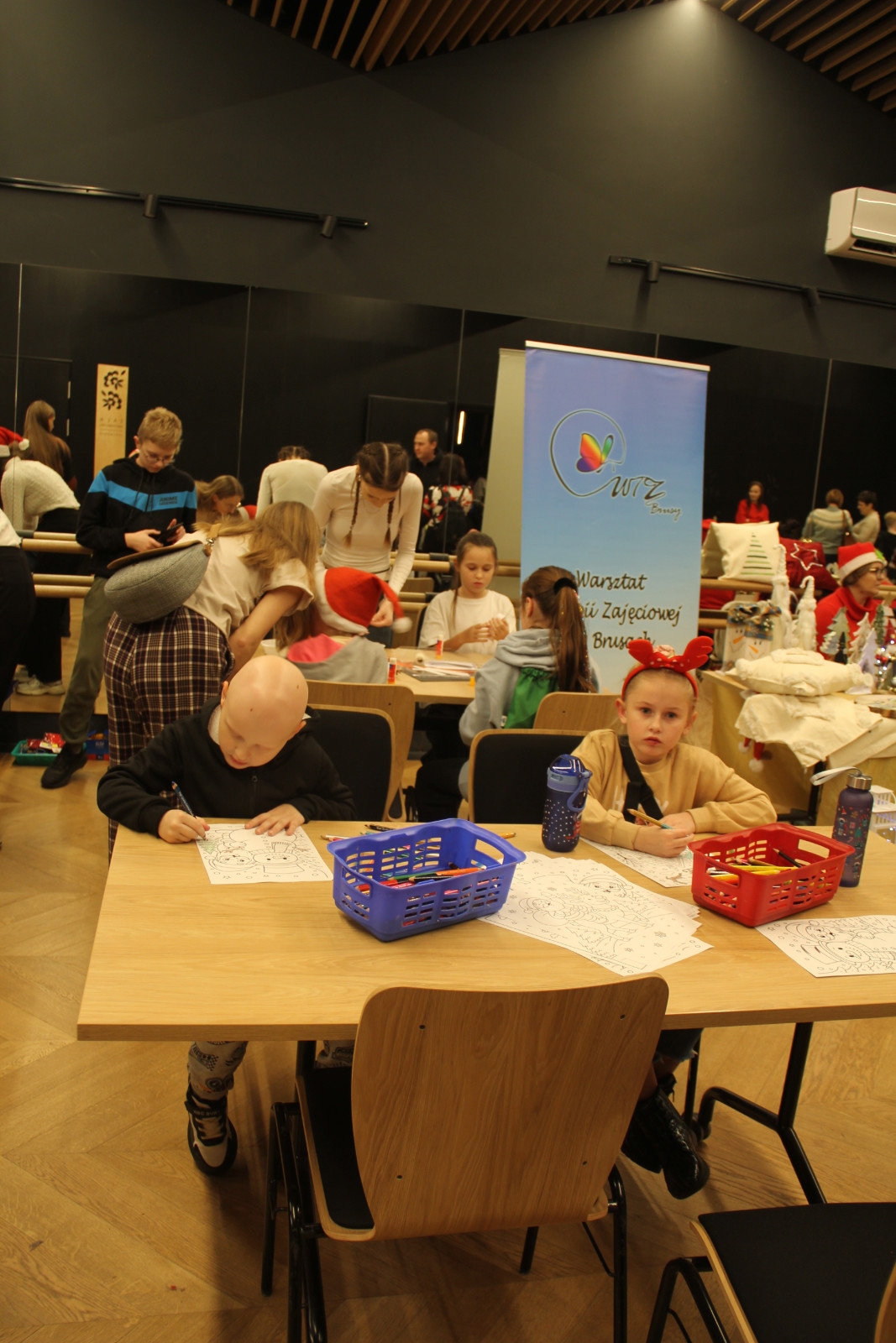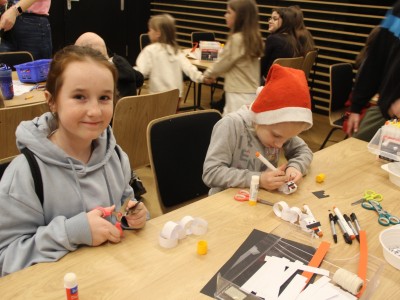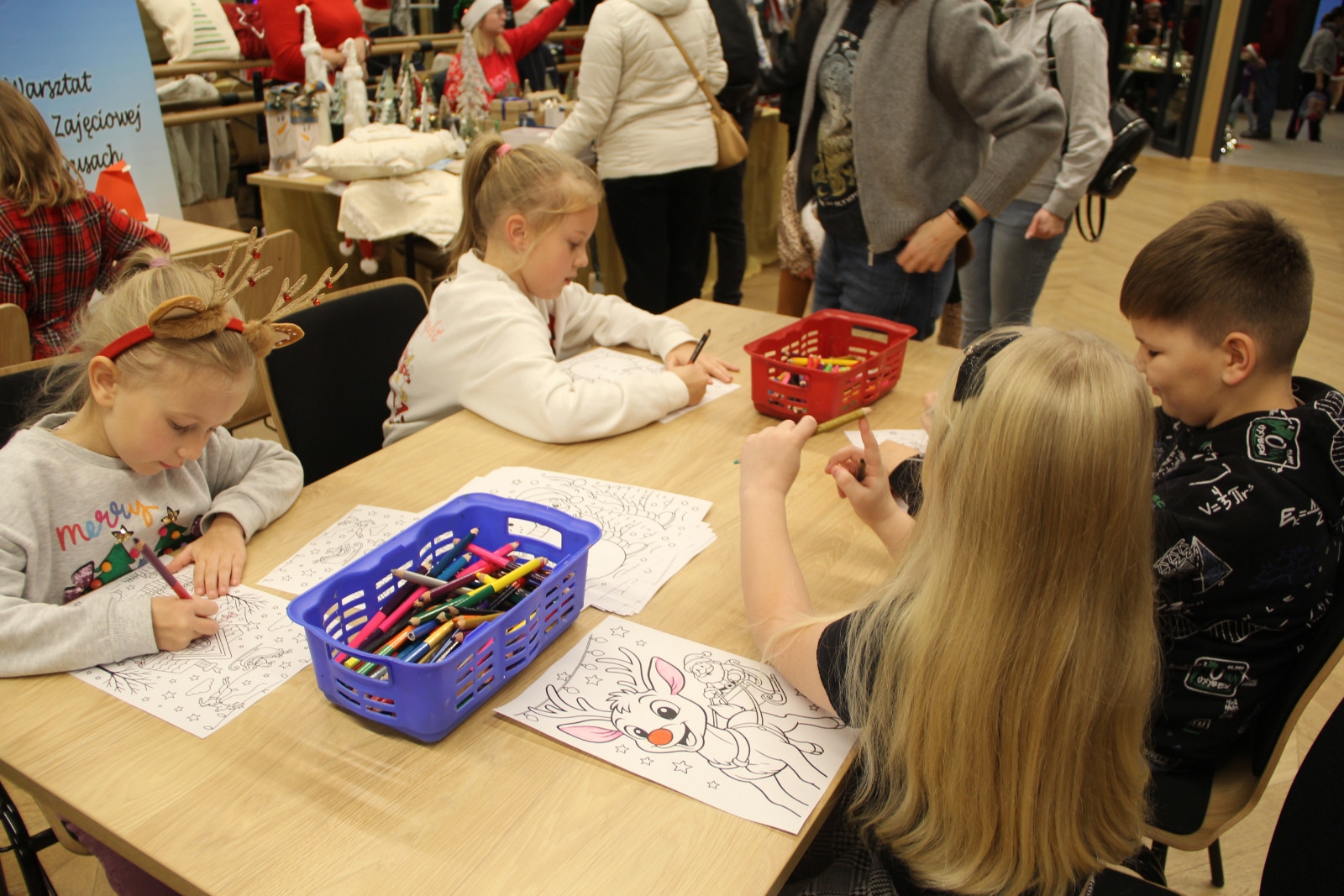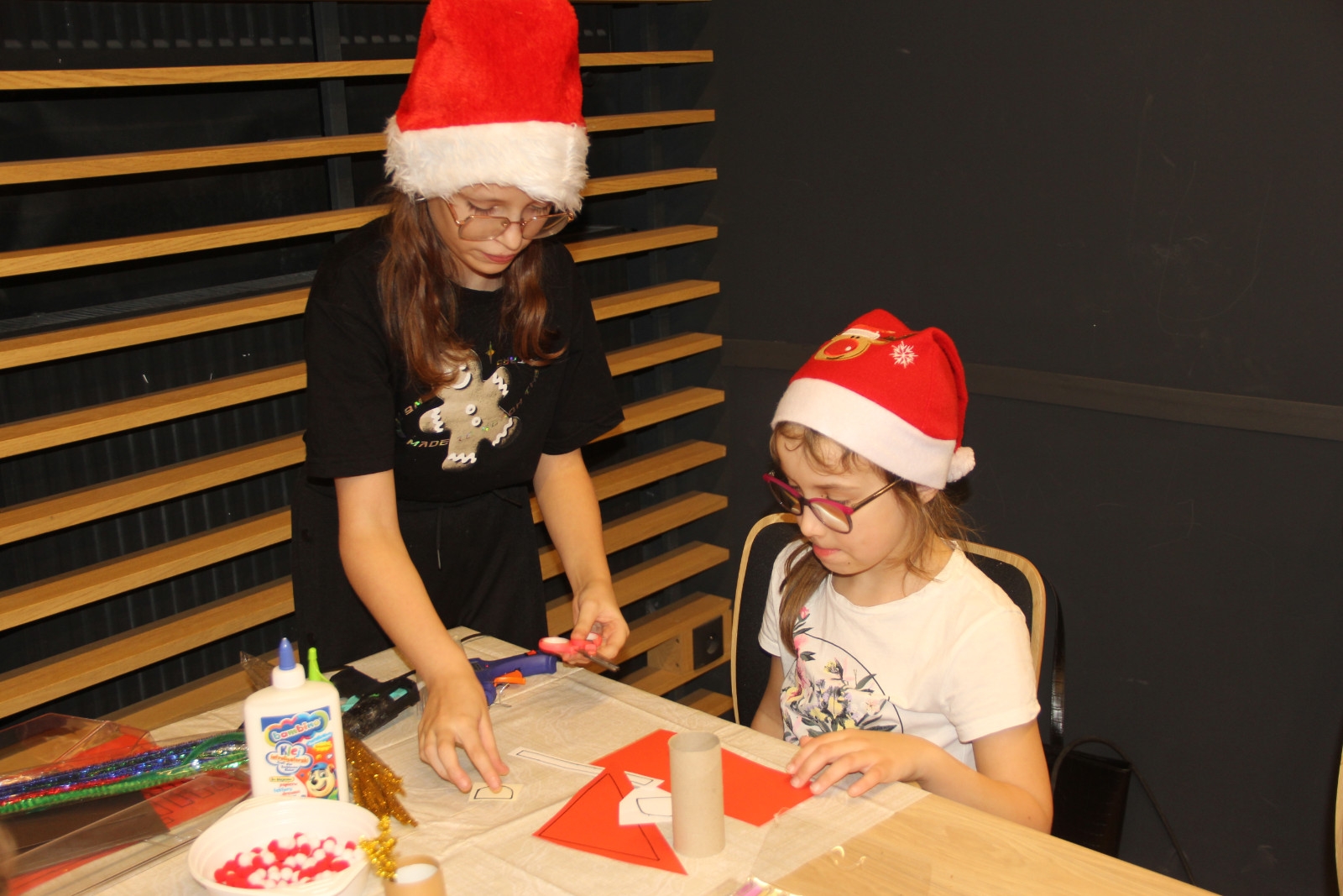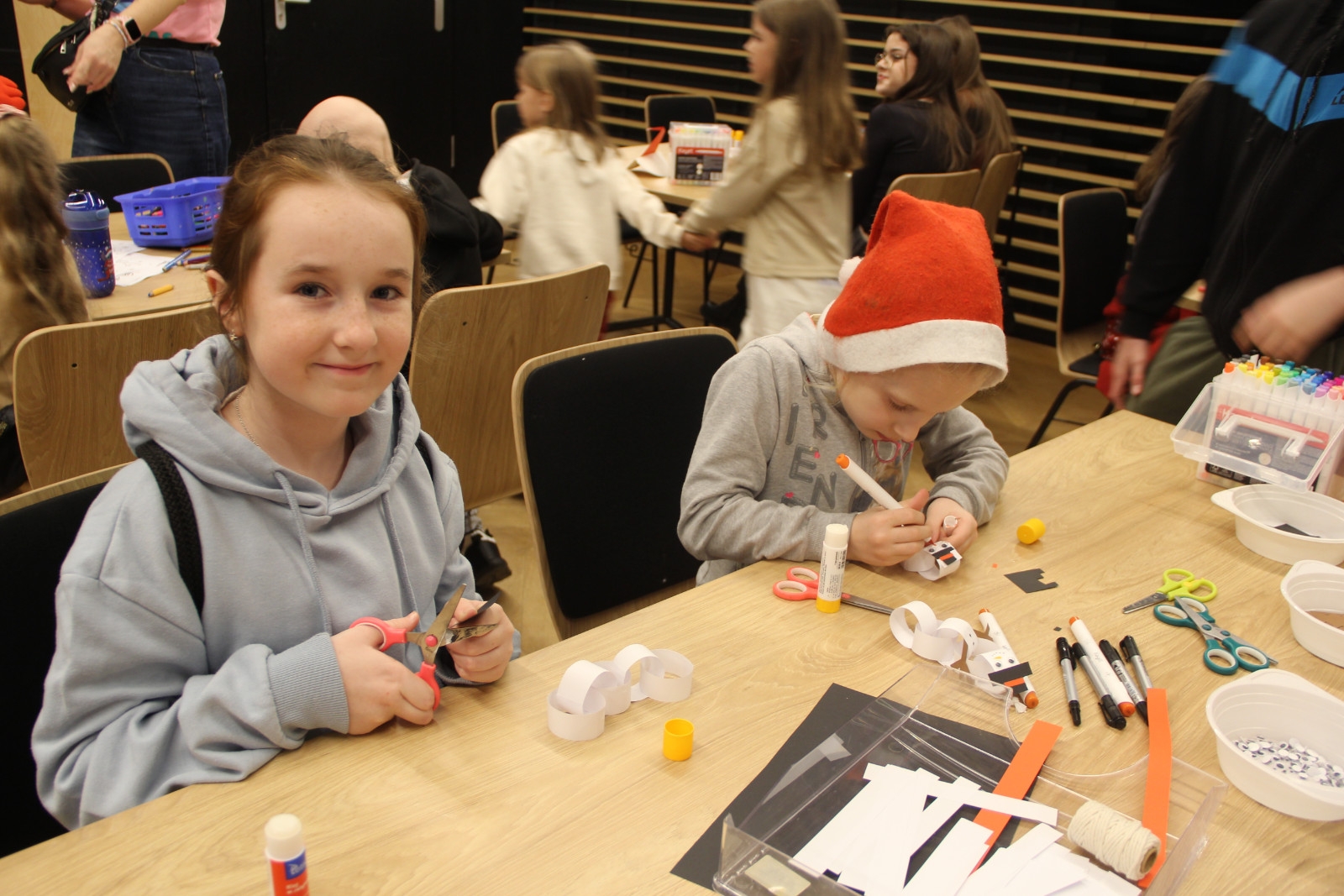 Dużą atrakcją wydarzenia była strefa twórcza, w której dzieci mogły rozwijać swoją kreatywność. Uczestniczki koła plastycznego „Tęcza” prowadziły warsztaty tworzenia świątecznych ozdób, pomagając najmłodszym przygotować oryginalne dekoracje choinkowe.