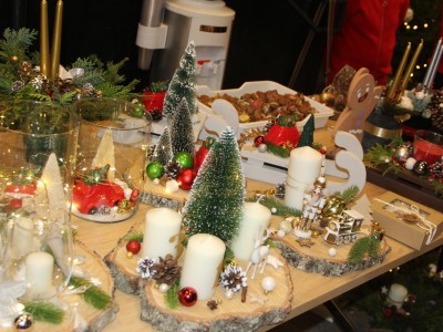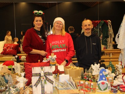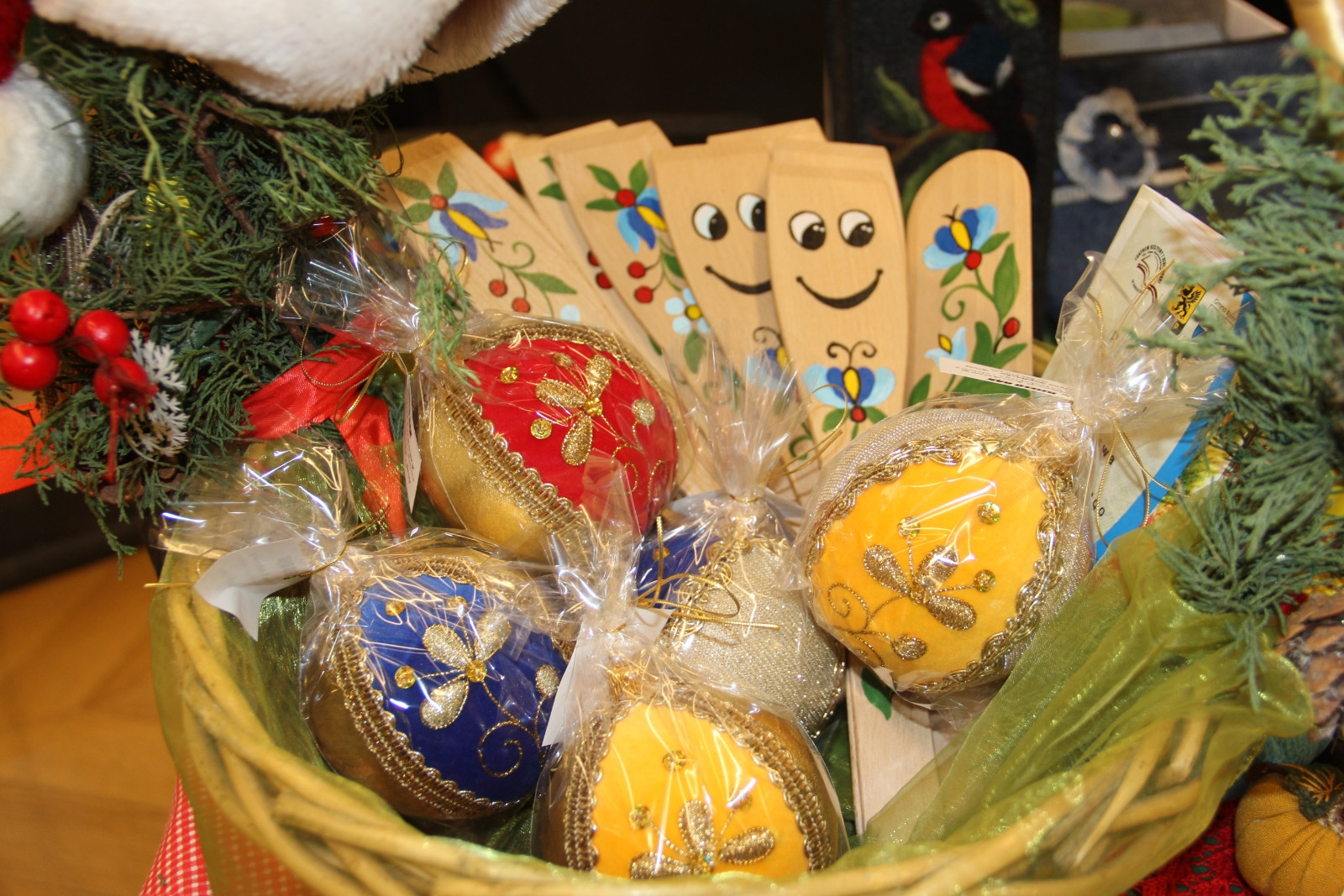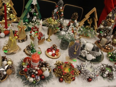 Każdy kto przybył na Spotkanie z Mikołajem mógł zakupić świąteczne ozdoby wykonane przez uczestników Warsztatu Terapii Zajęciowej, Środowiskowego Domu Samopomocy, hafciarek Ireny Peplińskiej i Hanny Matyszewskiej oraz Państwa Mankiewiczów.