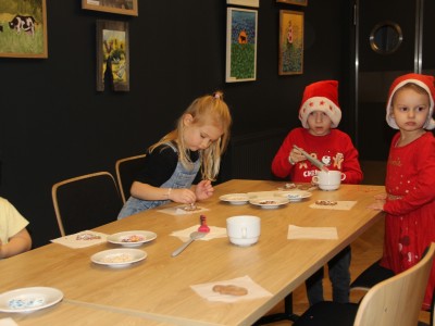 Równolegle odbywały się warsztaty robienia świątecznych bransoletek, prowadzone przez pracowników Środowiskowego Domu Samopomocy w Brusach, a także zajęcia z dekorowania pierników, którymi zajęli się pracownicy Centrum Kultury i Biblioteki.