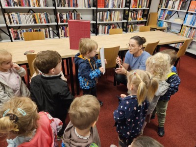 Zapraszamy grupy przedszkolne, szkolne oraz młodzież na lekcje biblioteczne, które prowadzi Pani Klaudia – z pasją opowiada, oprowadza po bibliotece i dostosowuje zajęcia do wieku uczestników.