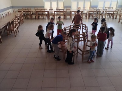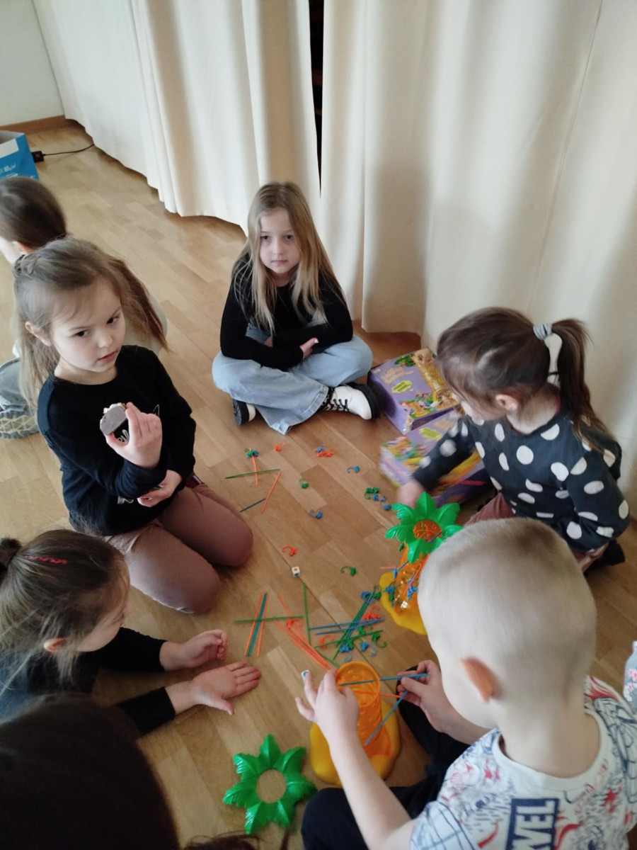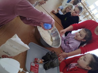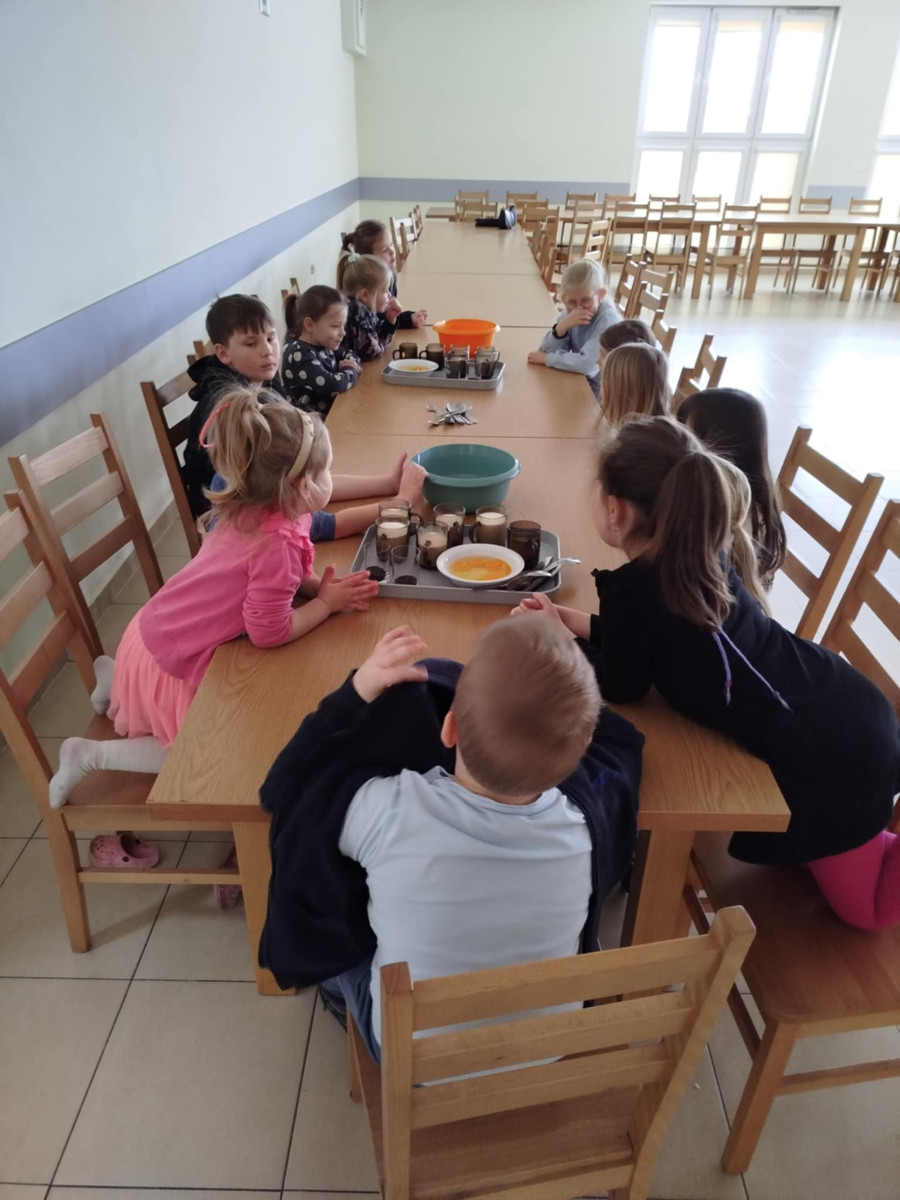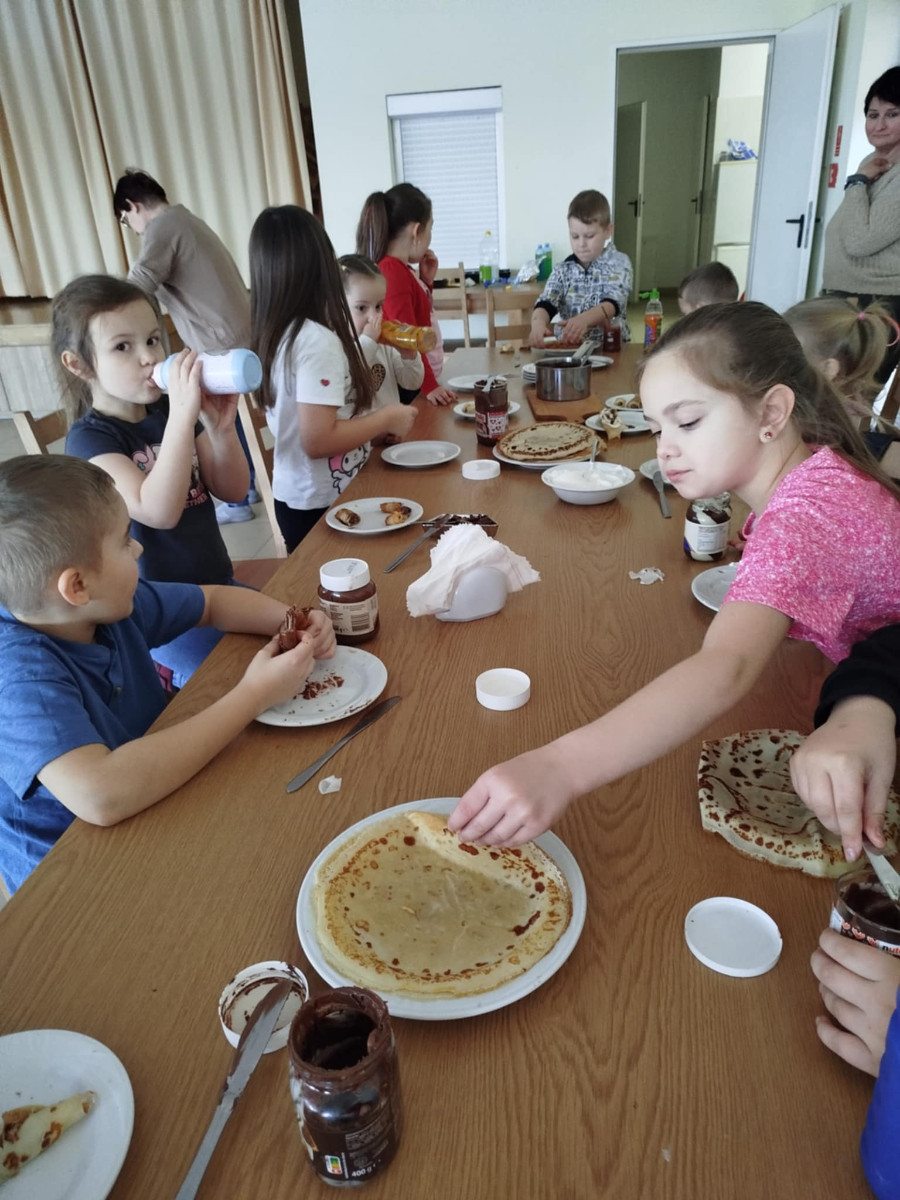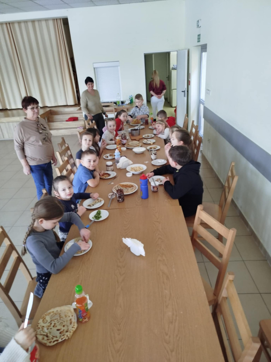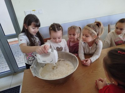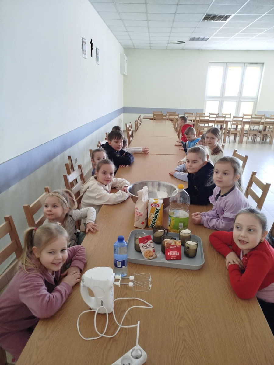 Czwartek i piątek były dniami pełnymi kuchennych słodkości. Przy niewielkiej pomocy dorosłych dzieci upiekły naleśniki oraz przygotowały babeczki, które z apetytem zjadły. Po słodkich przyjemnościach przyszedł czas na gry planszowe i zabawy ruchowe.