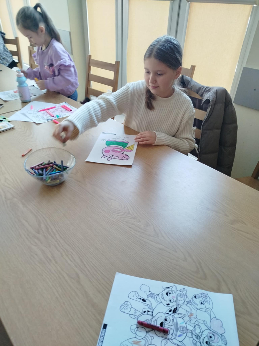 W poniedziałek uczestnicy spotkań słuchali czytanych książek, kolorowali swoje ulubione postacie z bajek oraz bawili się przy użyciu kolorowej chusty animacyjnej. Był to dzień pełen wyciszenia, uśmiechów i wspólnej zabawy.