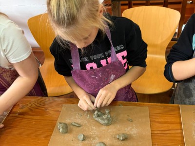 Zajęcia rozpoczęły się krótkim wprowadzeniem na temat historii gliny i jej znaczenia w codziennym życiu dawnych Kaszubów. Następnie uczestnicy przystąpili do praktycznej części warsztatów, podczas której mieli okazję samodzielnie ulepić z gliny różne przedmioty użytkowe – m.in. kubeczki, miseczki czy doniczki.