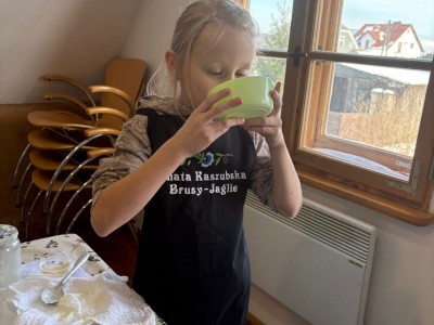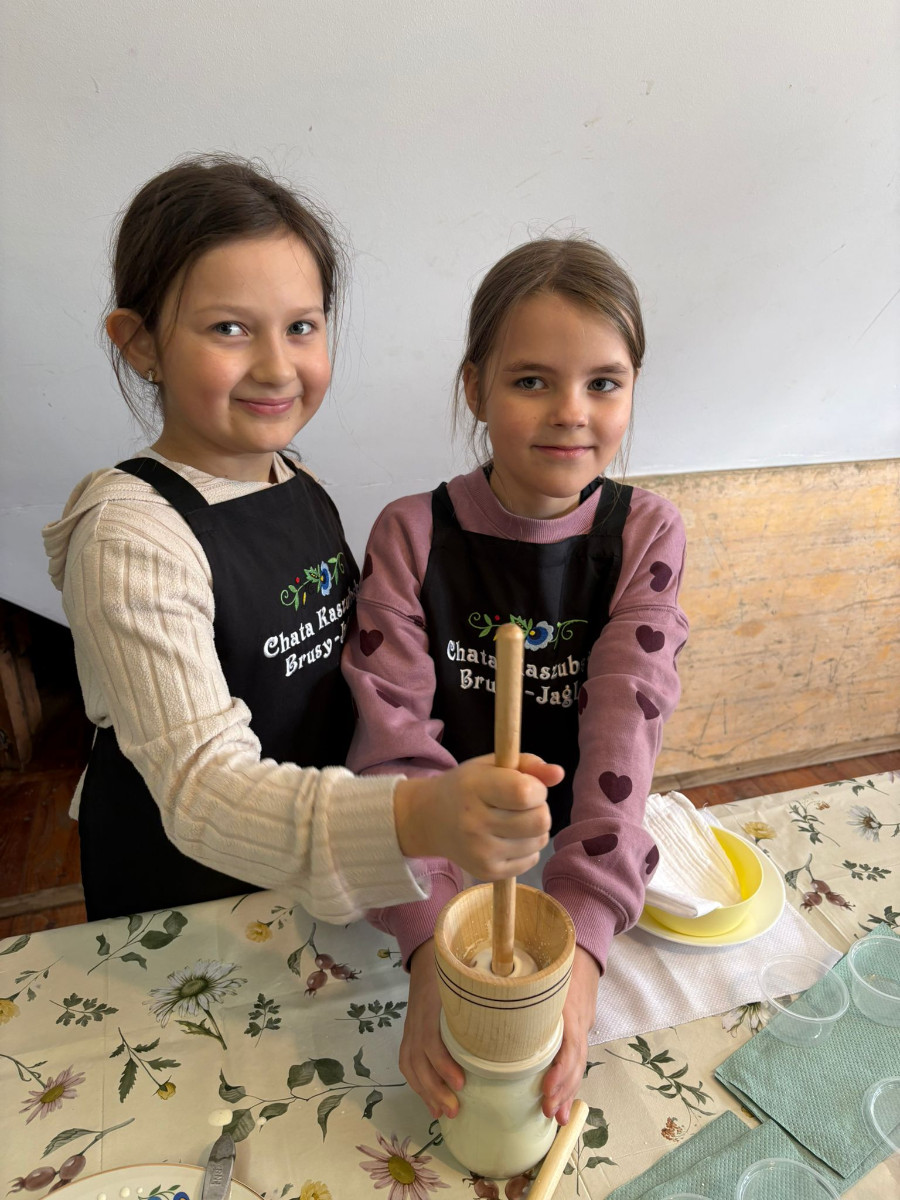 20 lutego 2026r. uczniowie klasy II b ze Szkoły Podstawowej nr 1 w Brusach wzięli udział w warsztatach regionalnych „Kaszubskie Maślenie”. Podczas zajęć dzieci poznały tradycyjny sposób wyrabiania masła – od ubijania śmietany aż po powstanie gotowego produktu.
