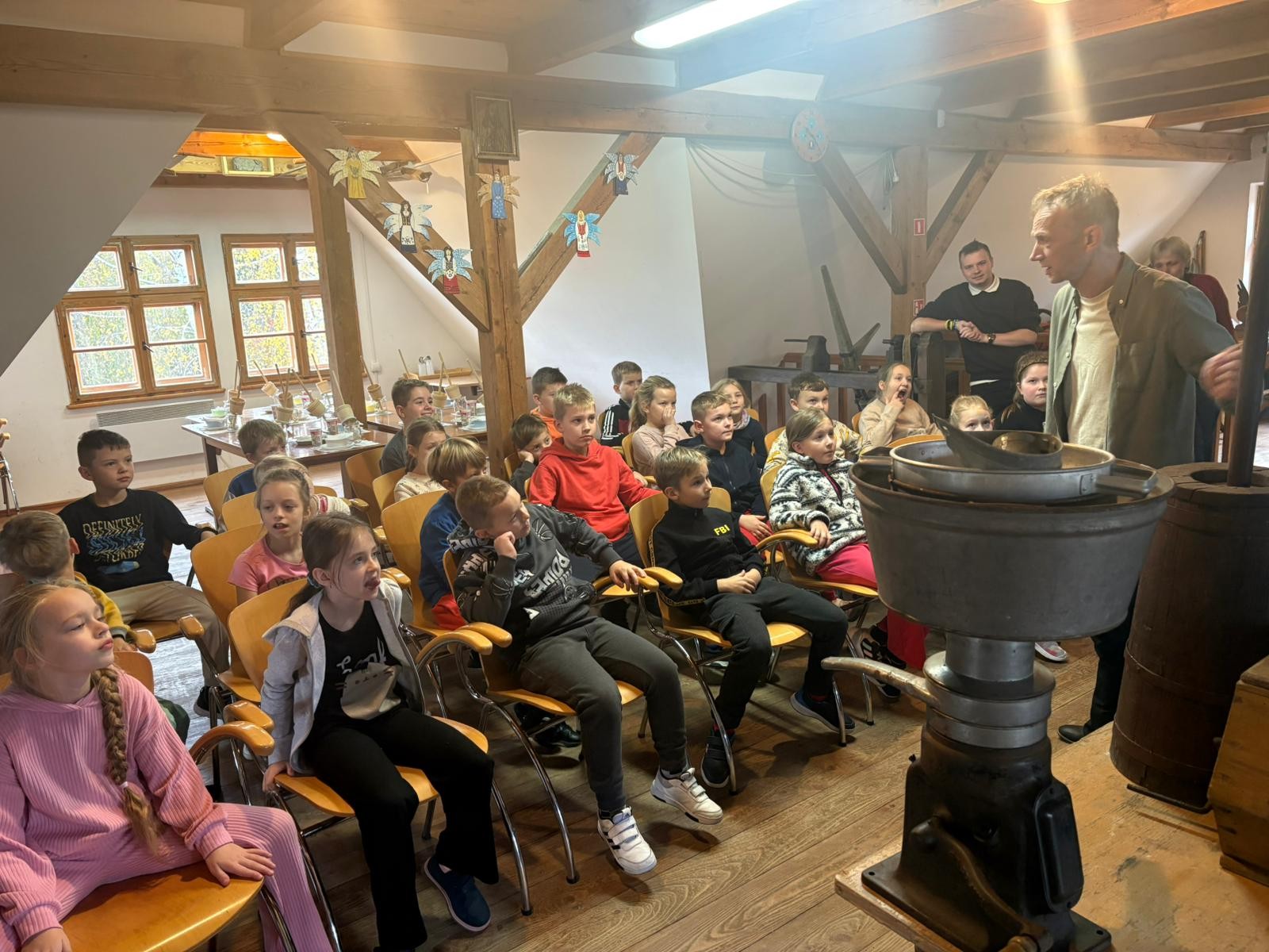 31 października 2025 roku uczniowie klasy 2a ze Szkoły Podstawowej nr 1 w Brusach wzięli udział w warsztatach regionalnych „Kaszubskie Maślenie”, które odbyły się w Chacie Kaszubskiej w Brusach Jagliach.