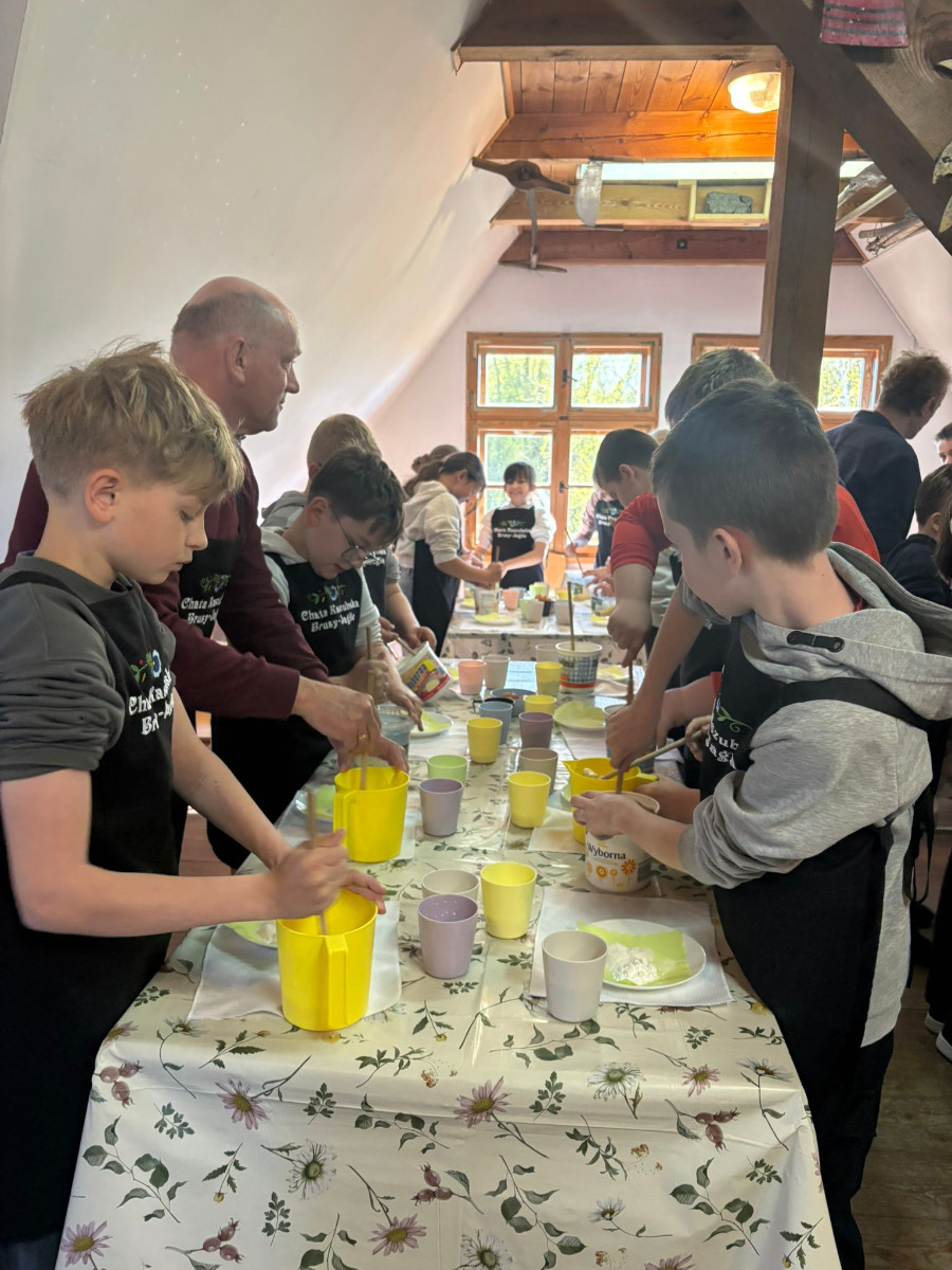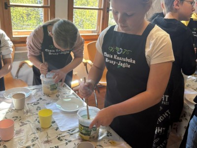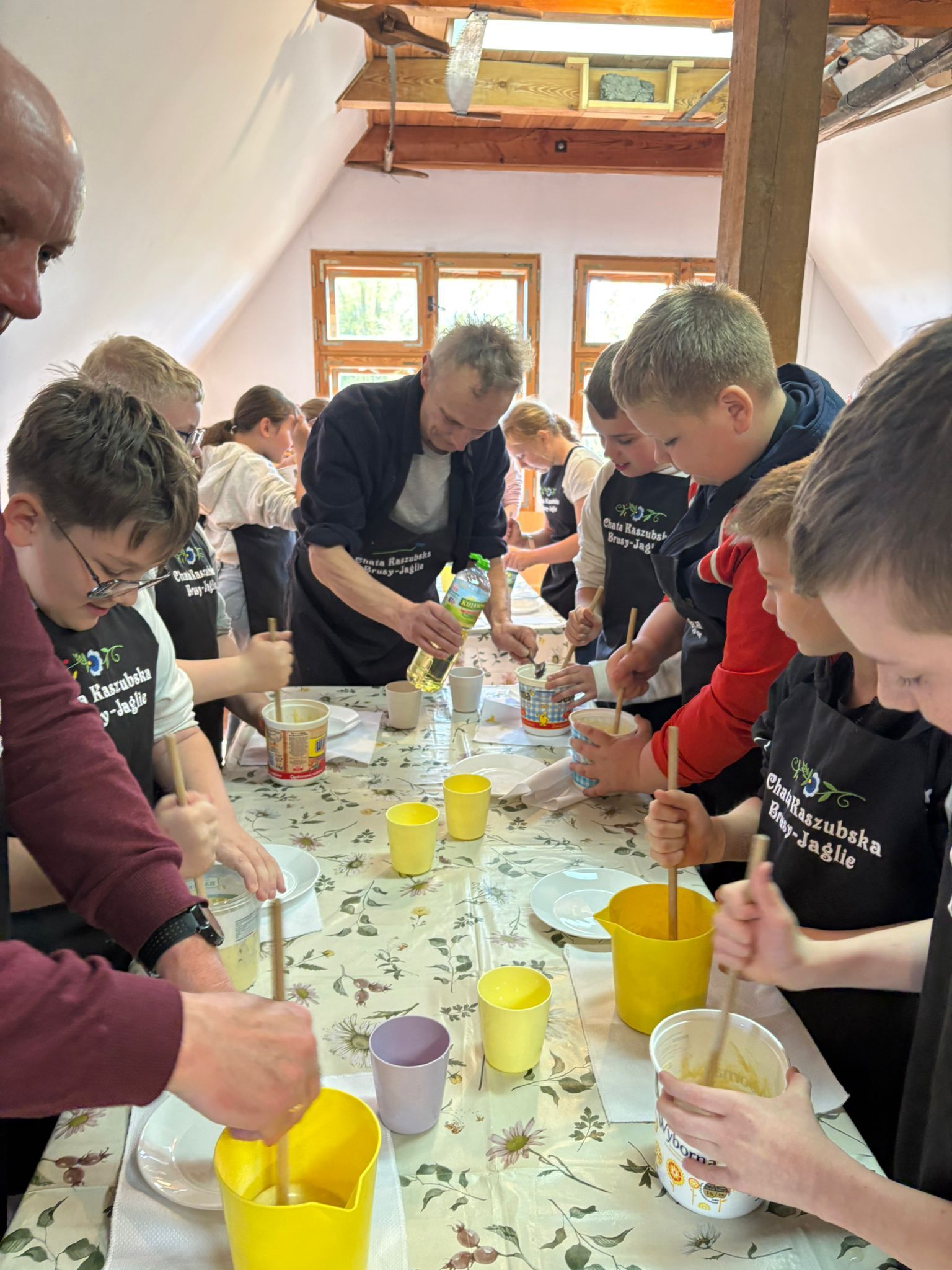 Uczniowie klasy IV z Zespołu Szkół w Lipnicy uczestniczyli w warsztatach regionalnych „Ogniste wafle”, które odbyły się 28 kwietnia 2026 r. w Chacie Kaszubskiej w Brusach Jagliach.