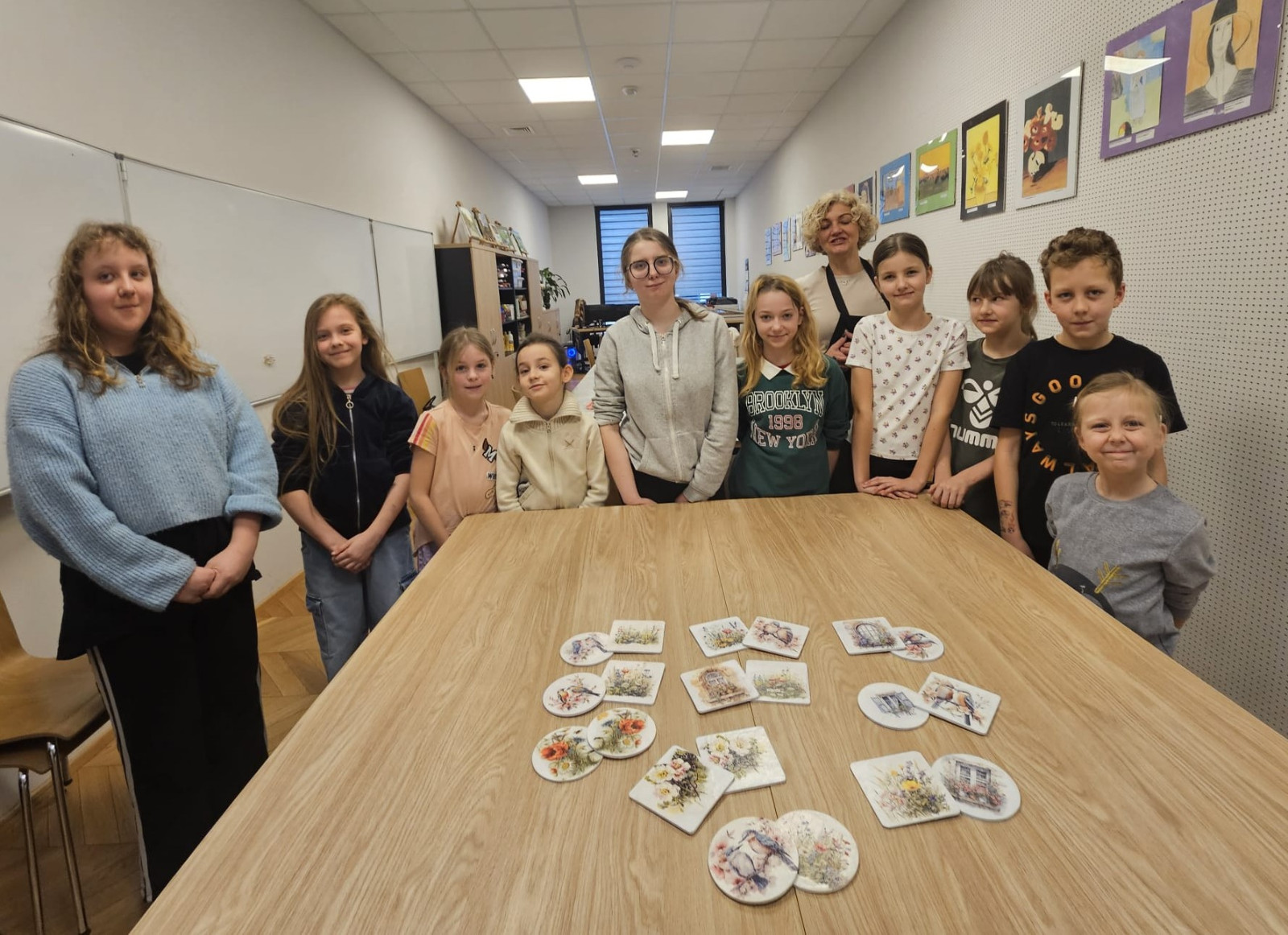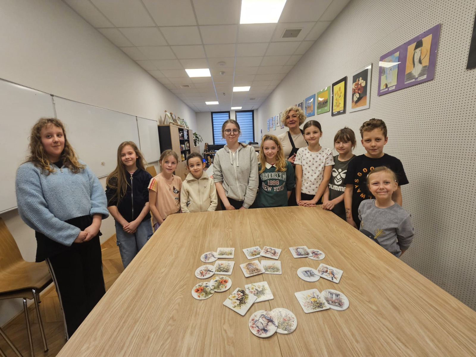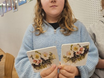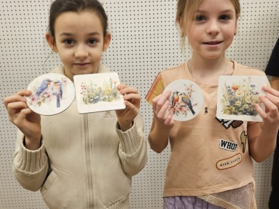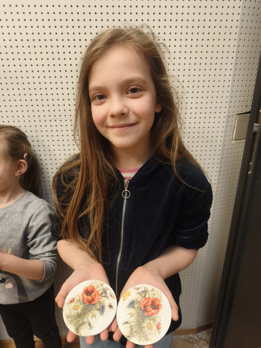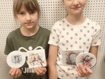 Efektem warsztatów były niepowtarzalne, ręcznie zdobione podkładki, które każdy uczestnik mógł zabrać ze sobą do domu. Gotowe prace mogą stać się miłą pamiątką z ferii lub oryginalnym prezentem dla bliskiej osoby.