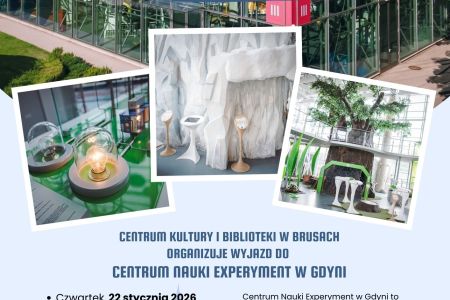 Centrum Kultury i Biblioteki im. Jana Karnowskiego w Brusach organizuje w czasie ferii zimowych wyjazd do Centrum Nauki EXPERYMENT w Gdyni. Termin: czwartek, 22 stycznia 2026 r…