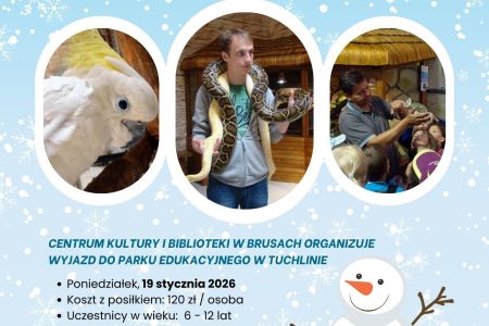 Centrum Kultury i Biblioteki im. Jana Karnowskiego w Brusach organizuje w czasie ferii zimowych wyjazd do Parku Edukacyjnego ZOO Egzotyczne Kaszuby w Tuchlinie. Termin: poniedzia…
