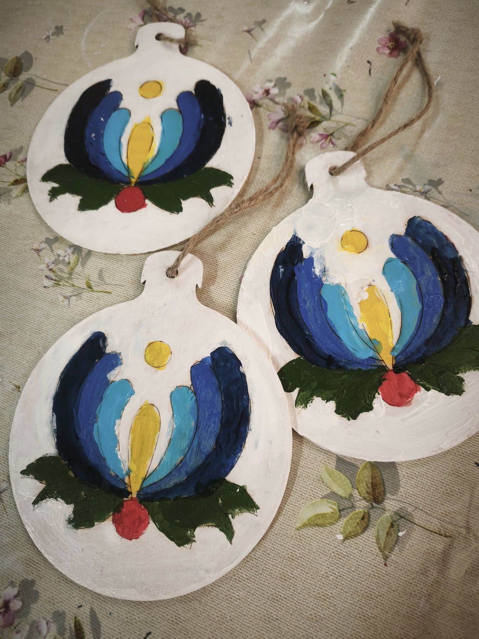 Głównym celem warsztatów było zapoznanie dzieci z historią ozdób choinkowych na Zaborach. Po krótkim wprowadzeniu uczestnicy przystąpili do części praktycznej – samodzielnie malowali drewniane bombki farbami akrylowymi, wykorzystując charakterystyczne motywy haftu kaszubskiego, takie jak palmeta i tulipan. Każde dziecko wykonało własną, niepowtarzalną ozdobę, którą zabrało ze sobą na pamiątkę, łącząc naukę o regionalnym dziedzictwie z radością tworzenia.