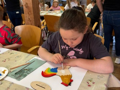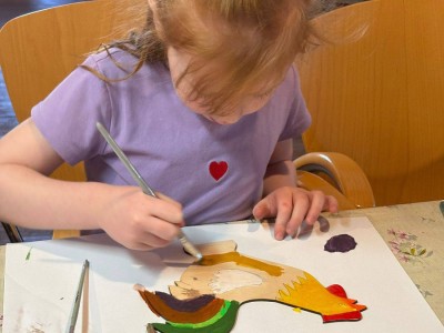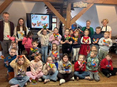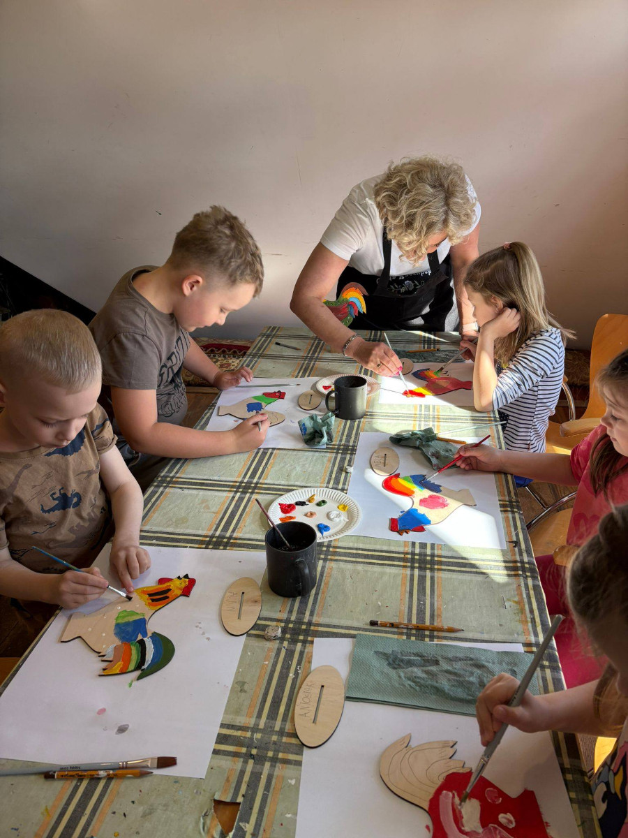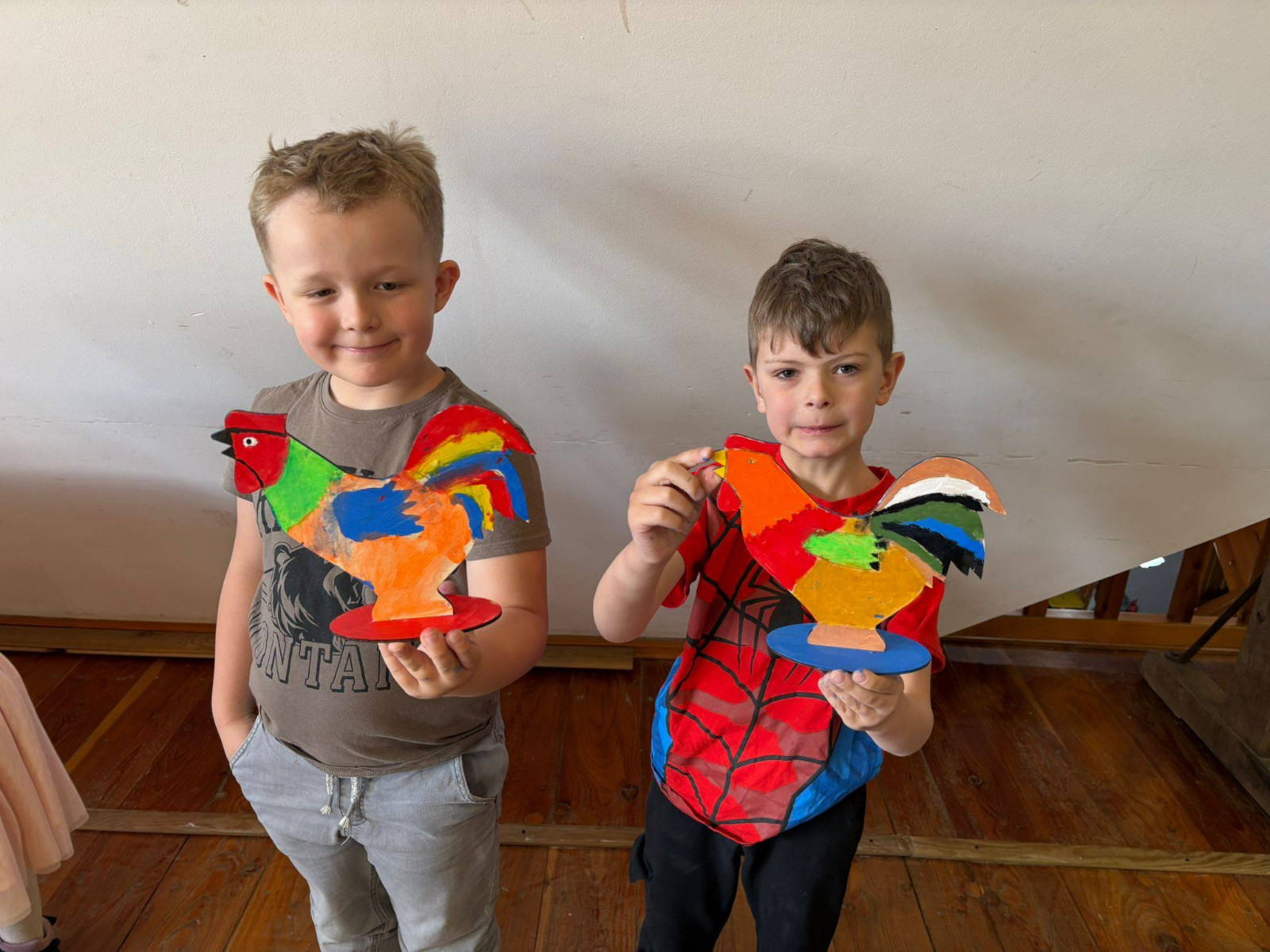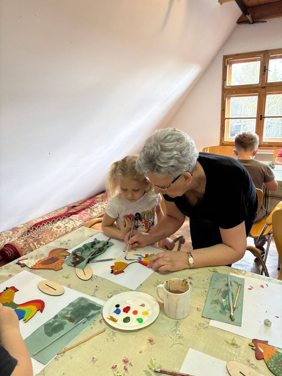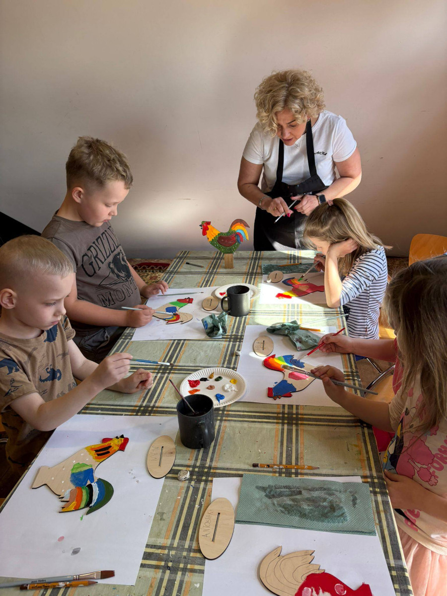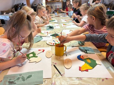 W trakcie zajęć dzieci usłyszały o znaczeniu koguta w regionalnej symbolice oraz poznały charakterystyczne motywy zdobnicze. Następnie przystąpiły do części praktycznej, podczas której samodzielnie malowały drewniane koguty farbami akrylowymi. Powstałe prace zachwycały kolorami i pomysłowością.