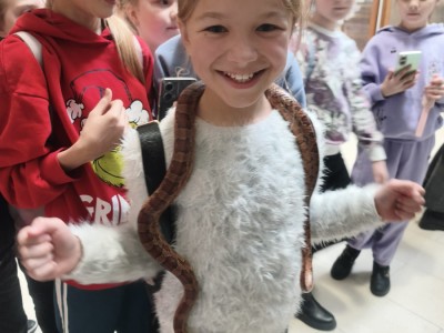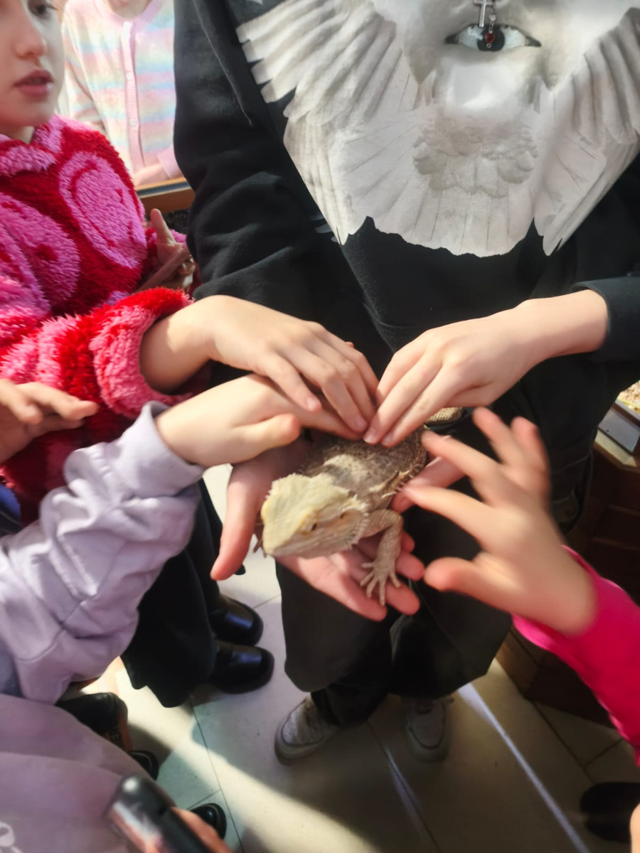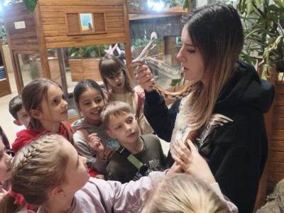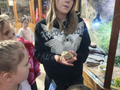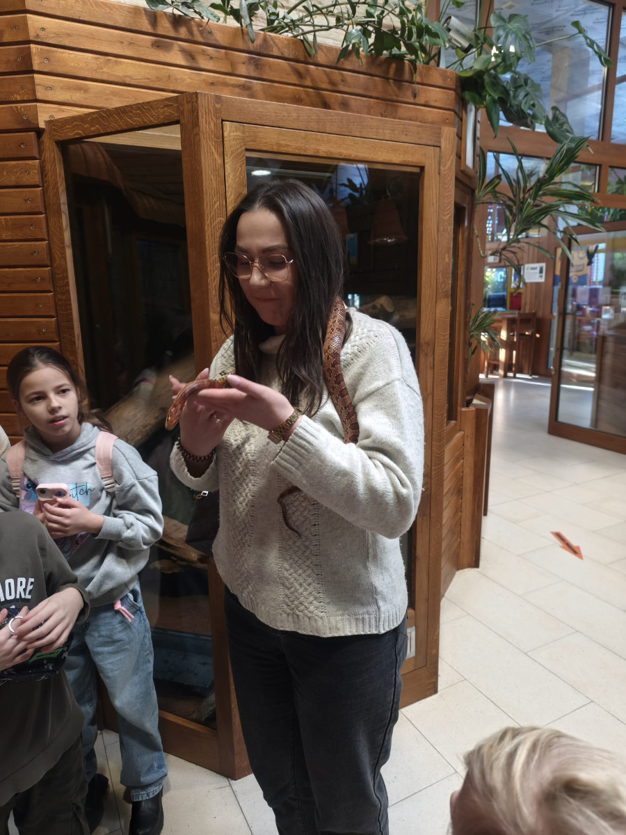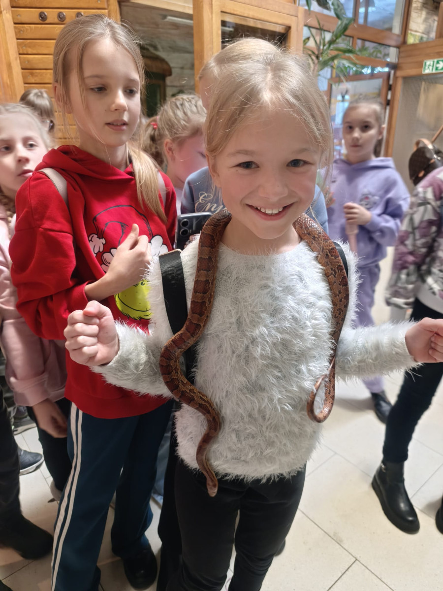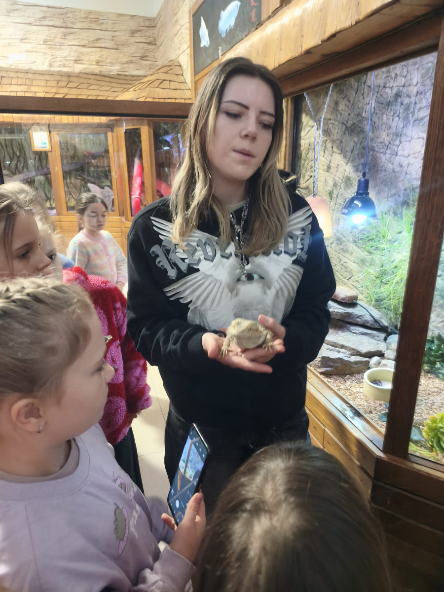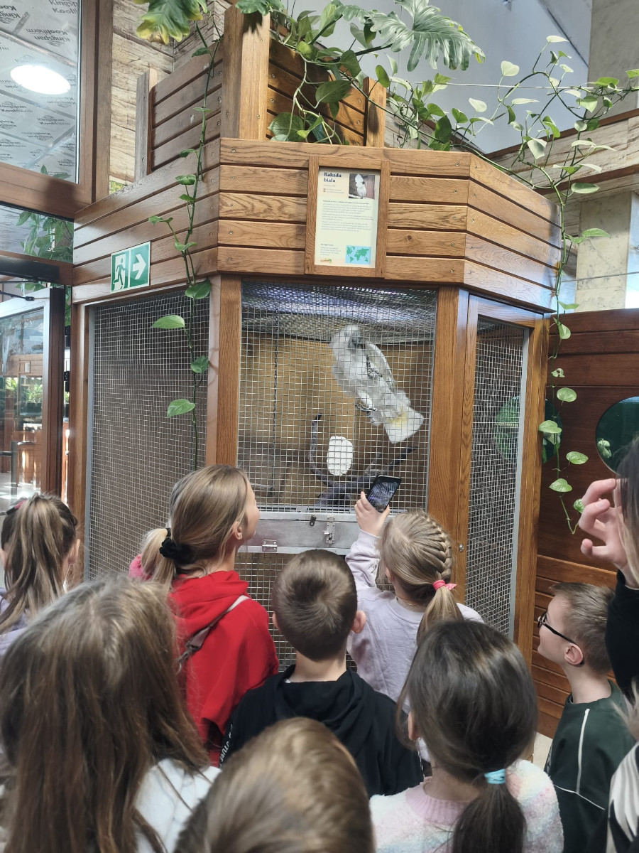 Największą sympatię wśród dzieci wzbudziły papugi kakadu – Dorotka i Patryk. Ich barwne upierzenie, żywiołowe zachowanie oraz bezpośredni kontakt z opiekunami sprawiły, że stały się prawdziwymi gwiazdami wycieczki i na długo zapadły uczestnikom w pamięć.