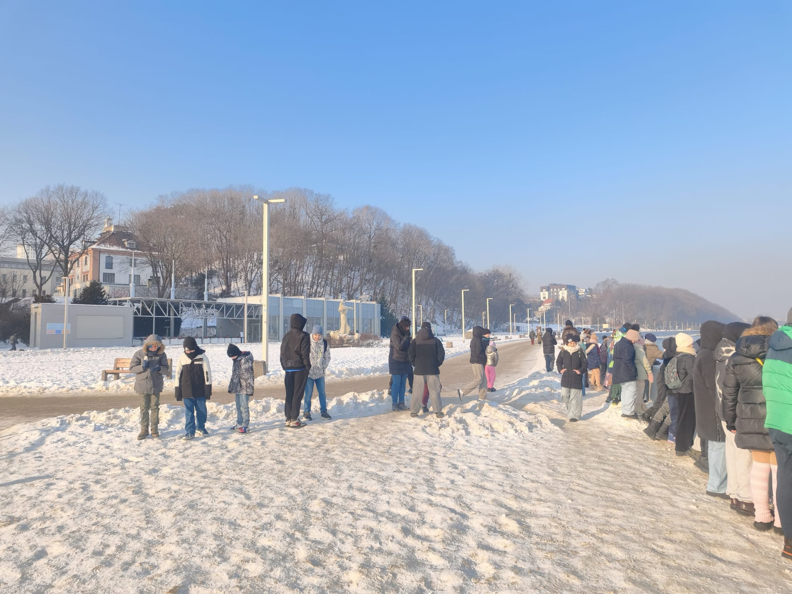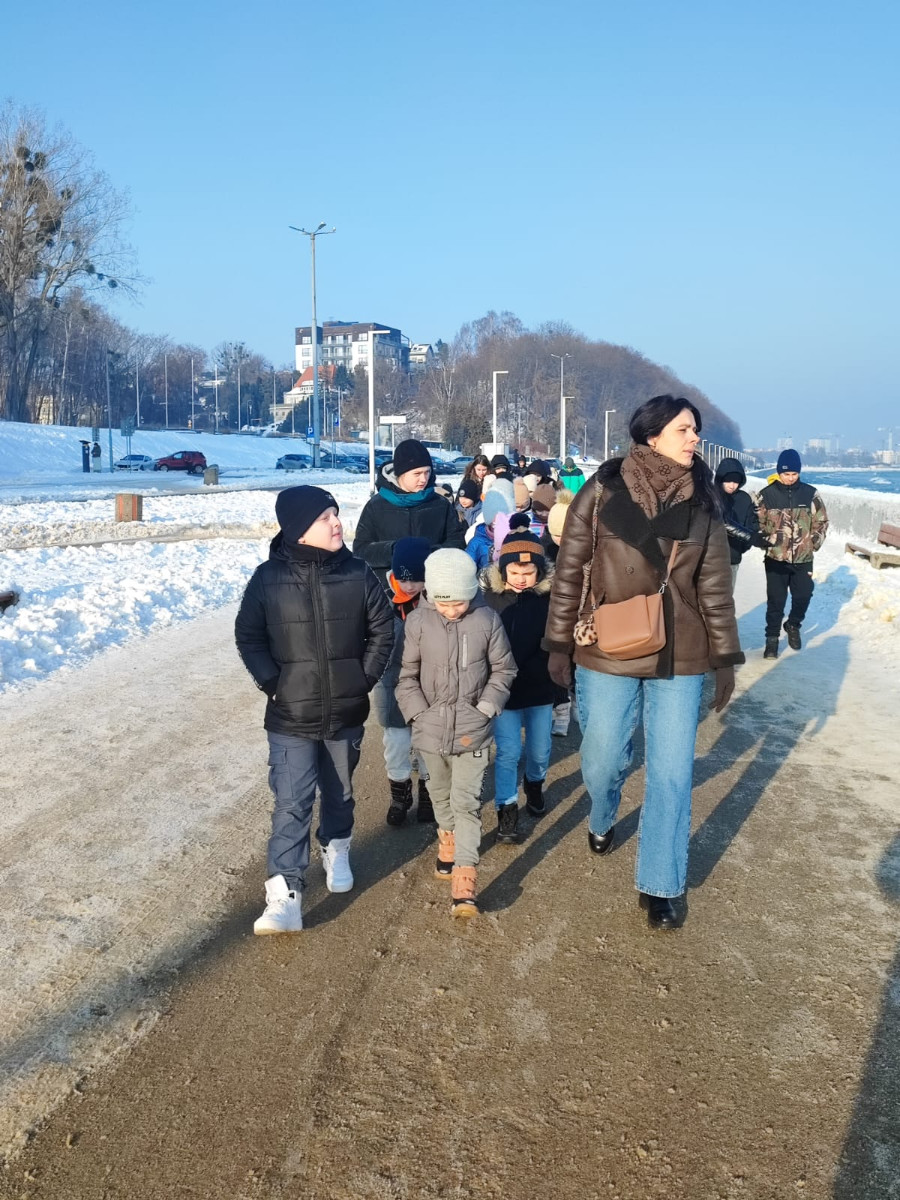 Zanim uczestnicy odwiedzili Centrum Nauki Experyment, udali się na spacer klifem nad morzem. Przechadzka wzdłuż wybrzeża była doskonałą okazją do podziwiania zimowych widoków, zaczerpnięcia świeżego, morskiego powietrza oraz aktywnego rozpoczęcia dnia.