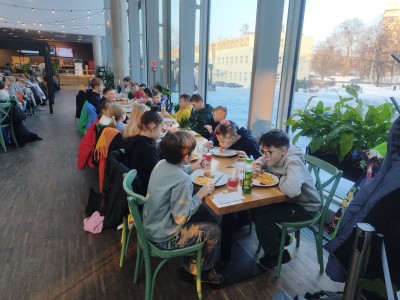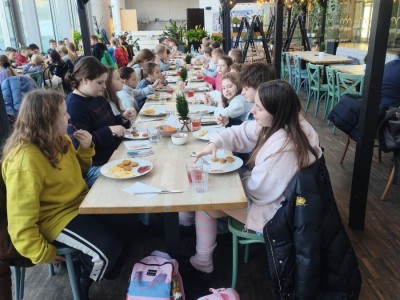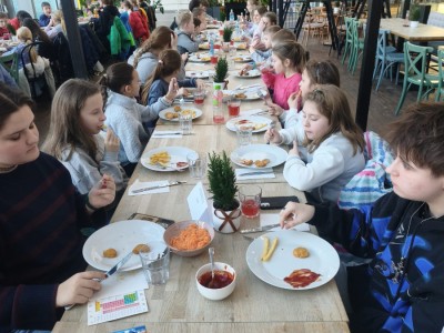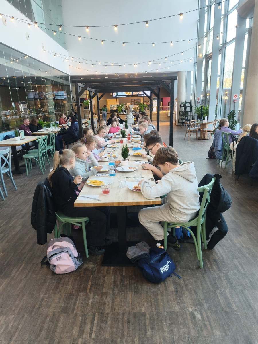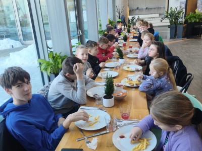 Na zakończenie wyjazdu wszyscy uczestnicy zjedli pyszny obiad, który był miłym podsumowaniem intensywnego i pełnego wrażeń dnia. Wycieczka do Gdyni okazała się doskonałym połączeniem edukacji, aktywności fizycznej i dobrej zabawy, stanowiąc kolejną udaną propozycję spędzenia ferii zimowych.