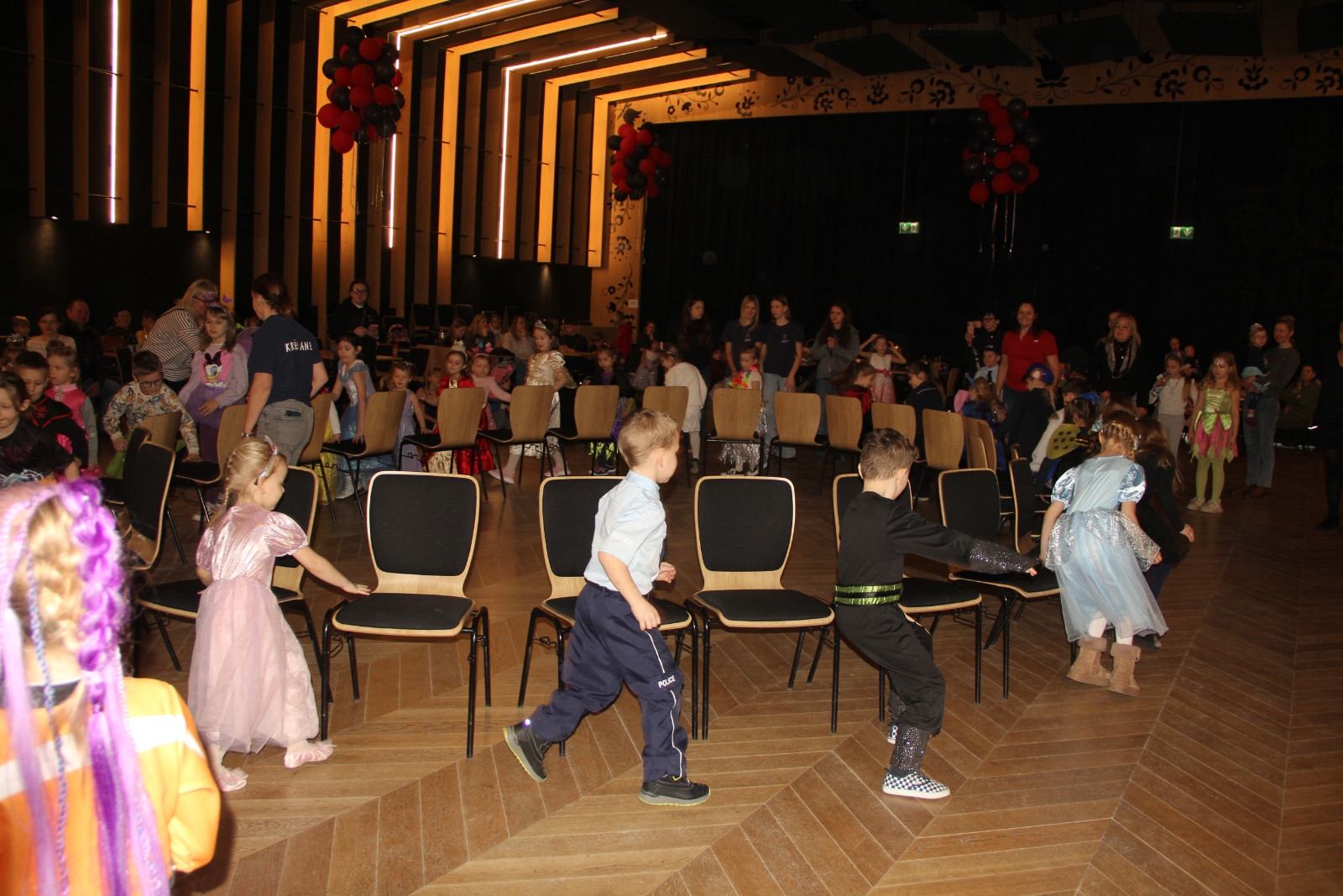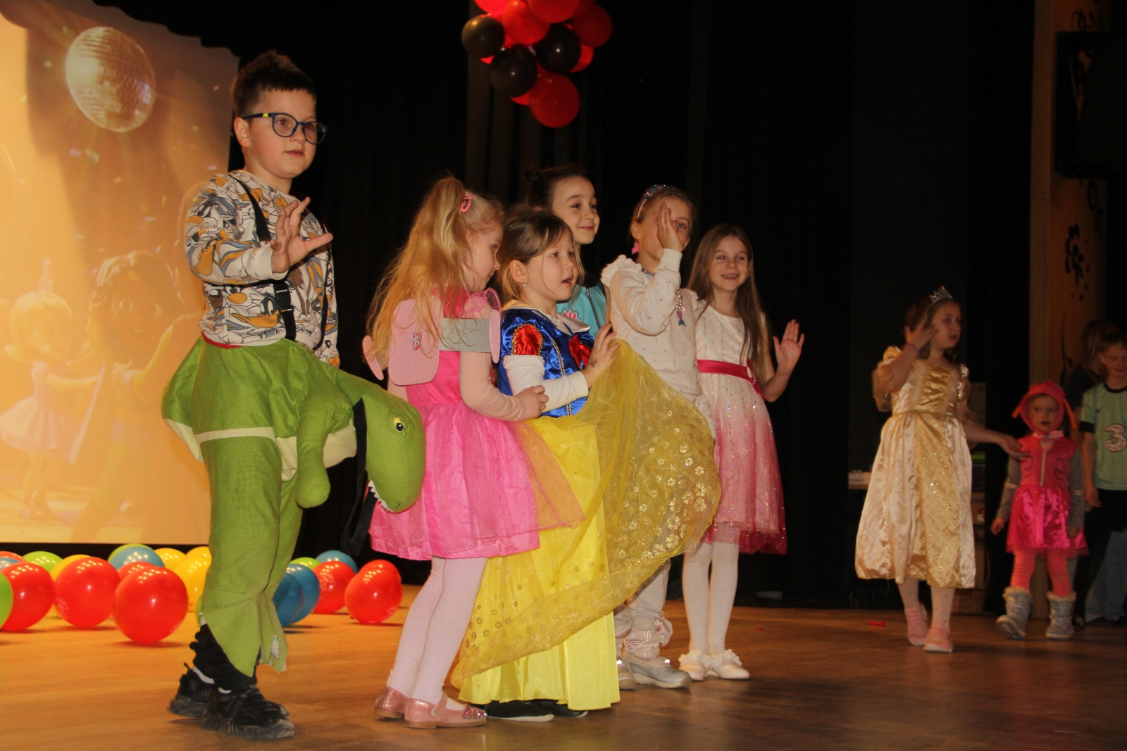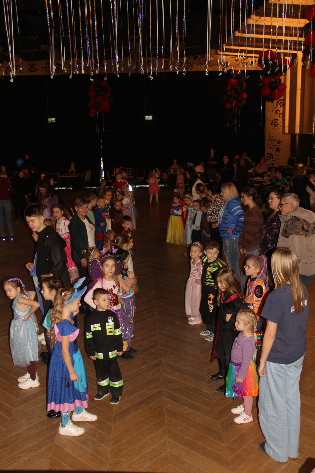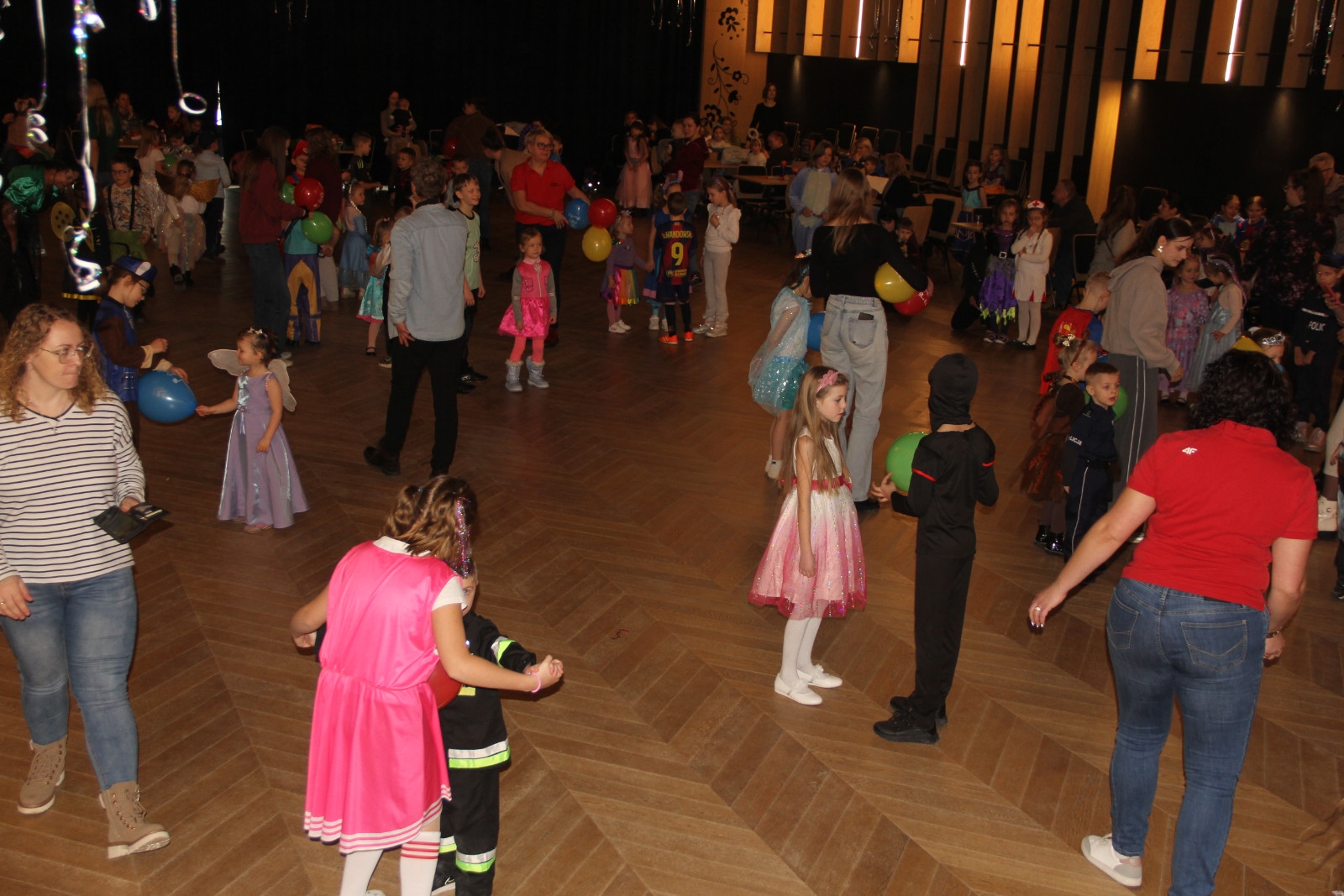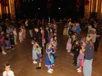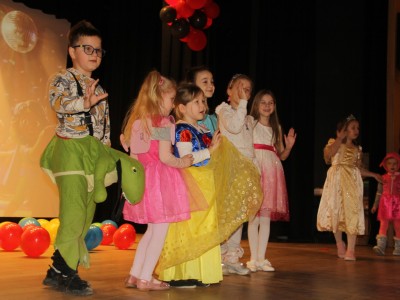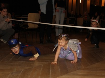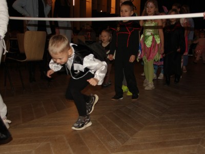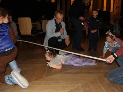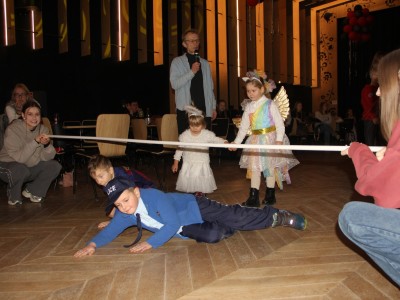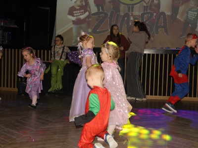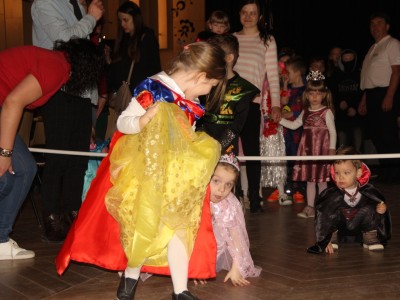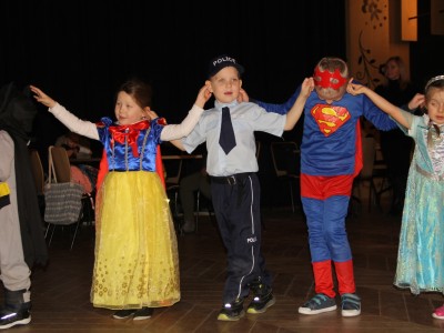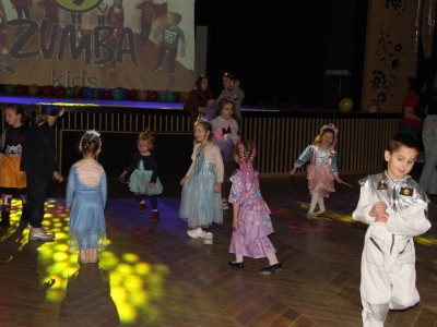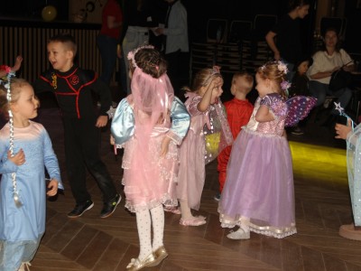 Podczas balu na dzieci czekało wiele atrakcji, zabaw i konkursów ruchowych. W programie znalazły się m.in. takie zabawy jak: „gorące krzesło”, „wędrujący prezent”, przechodzenie pod kijem, taniec z balonikami oraz liczne układy taneczne. Dzieci chętnie brały udział w tańcach takich jak „Zuzanna”, „Idą, idą moje nogi”, „Tańczymy la ba da”, a także w zabawach integracyjnych – wężu karnawałowym.