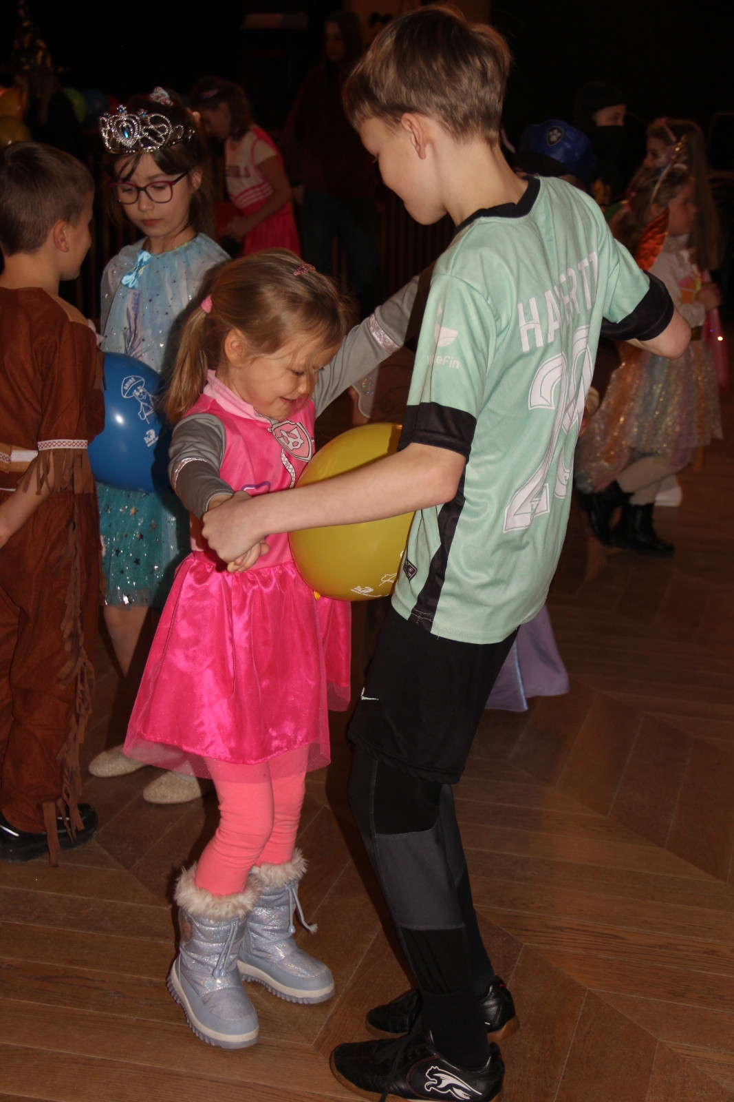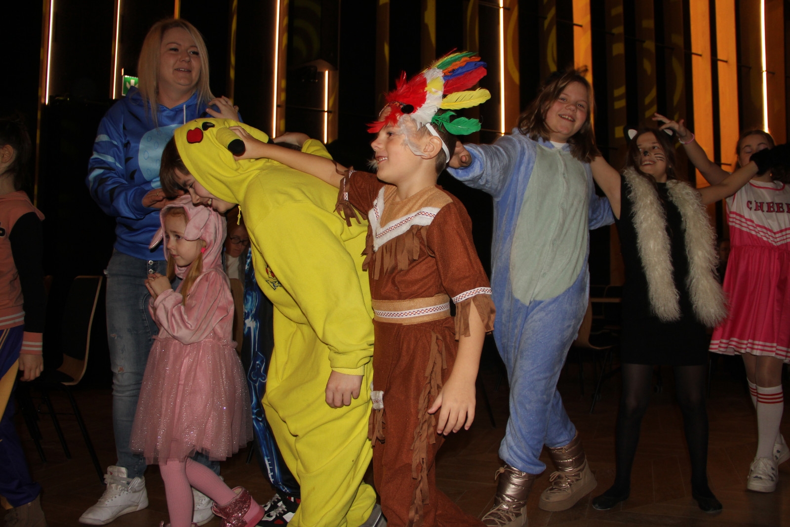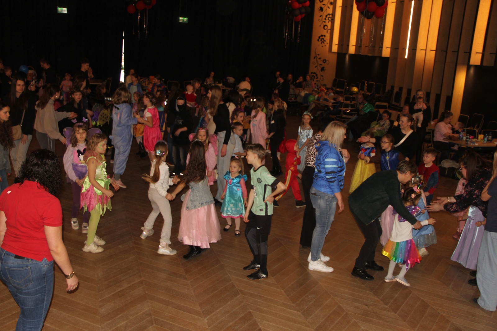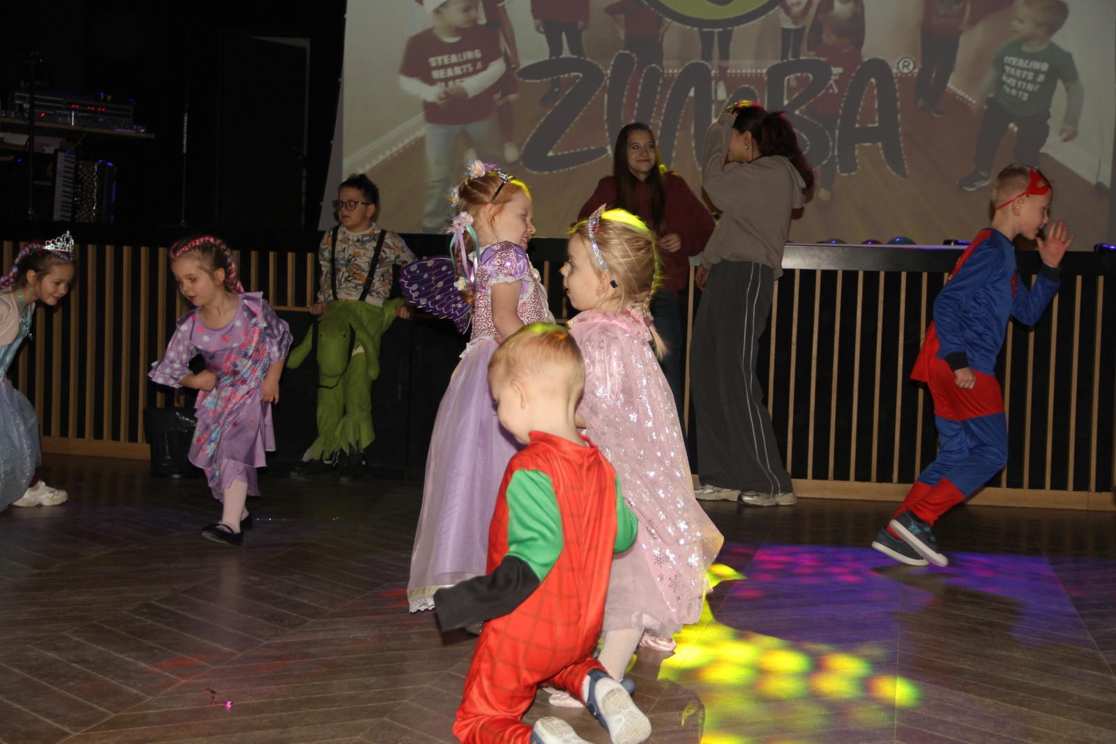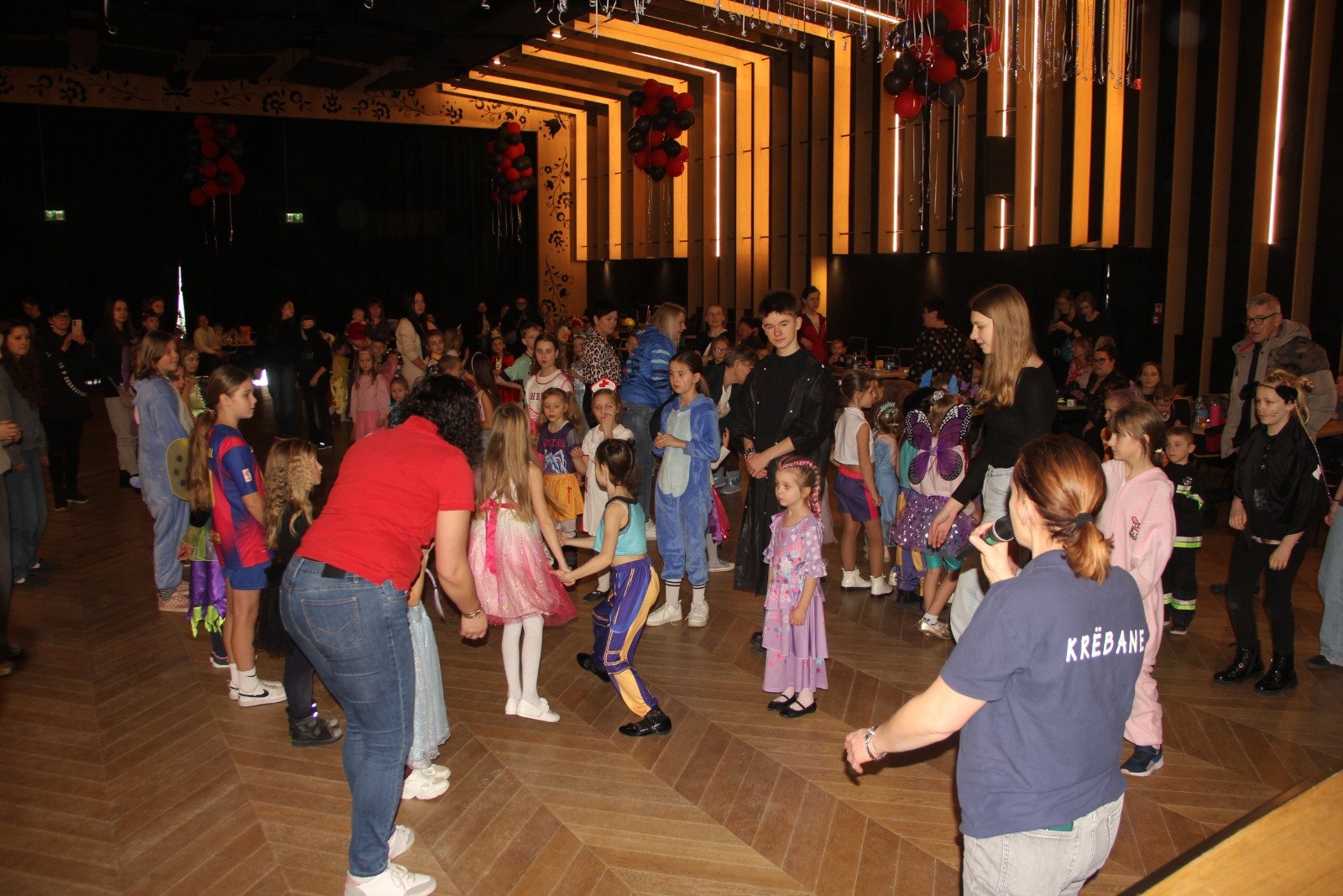 Podczas balu na dzieci czekało wiele atrakcji, zabaw i konkursów ruchowych. W programie znalazły się m.in. takie zabawy jak: „gorące krzesło”, „wędrujący prezent”, przechodzenie pod kijem, taniec z balonikami oraz liczne układy taneczne. Dzieci chętnie brały udział w tańcach takich jak „Zuzanna”, „Idą, idą moje nogi”, „Tańczymy la ba da”, a także w zabawach integracyjnych – wężu karnawałowym.