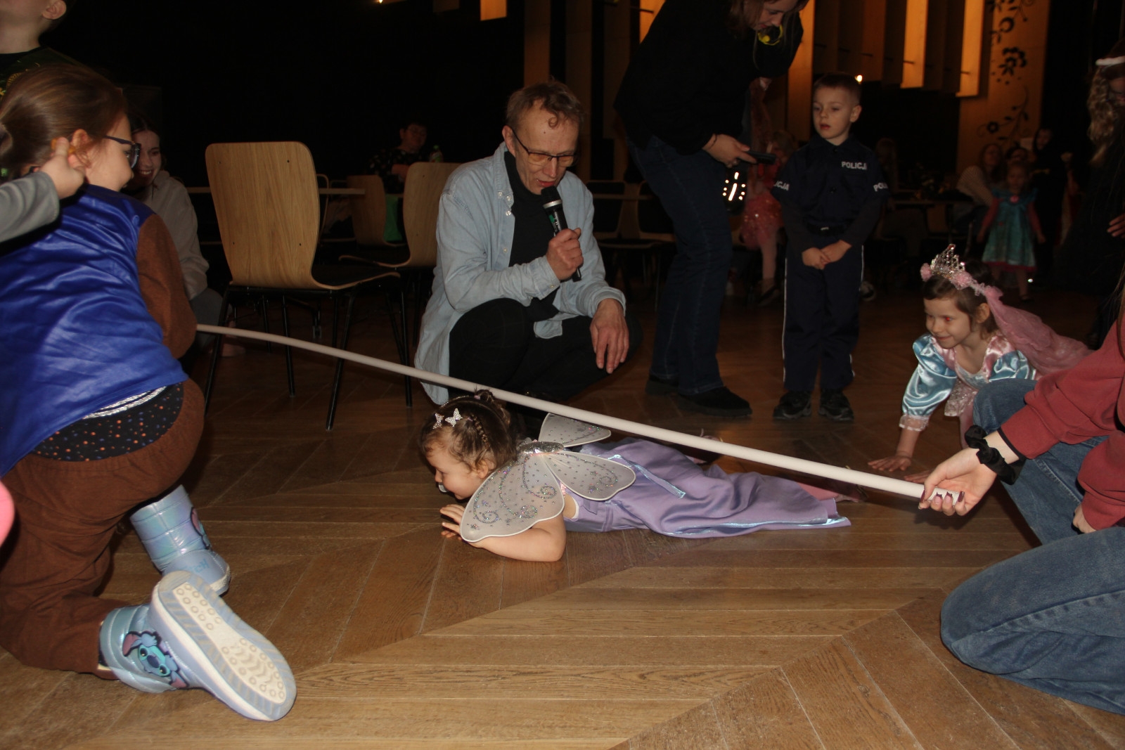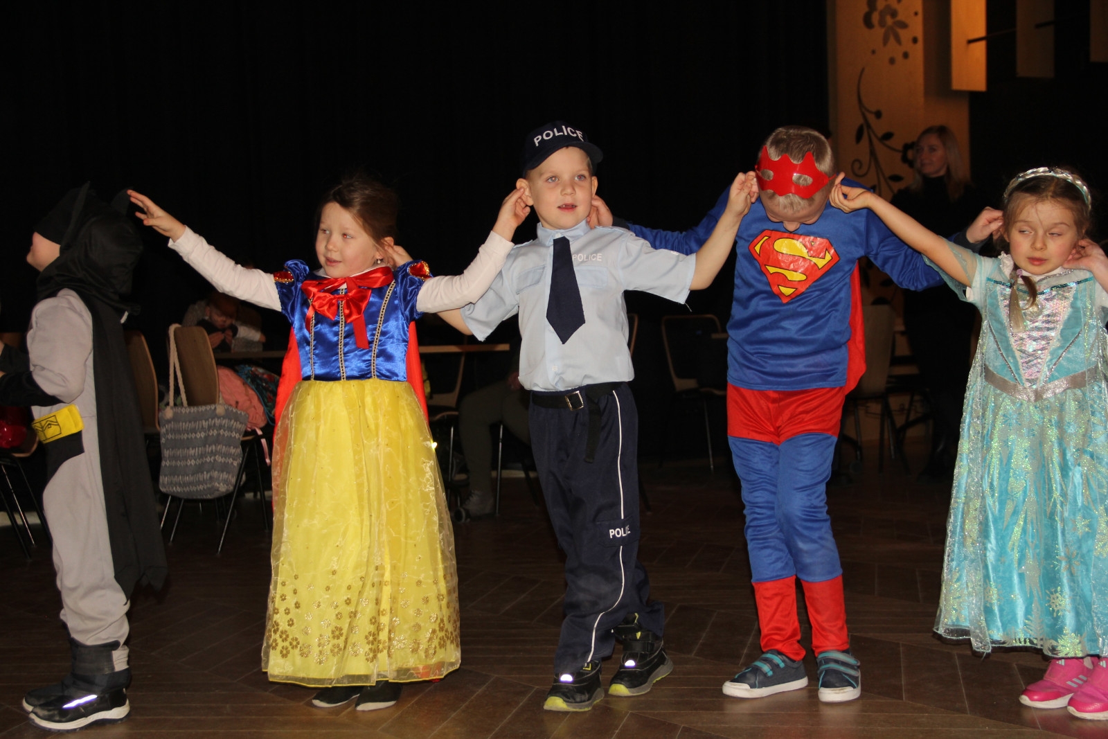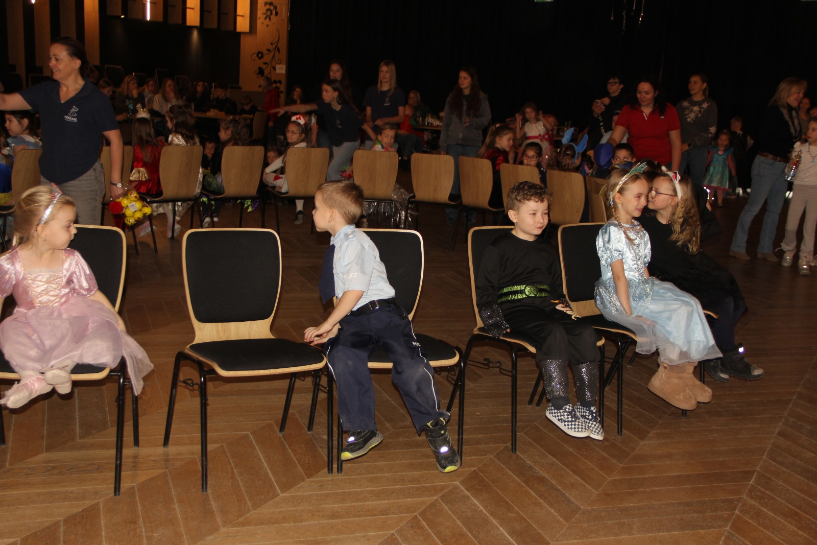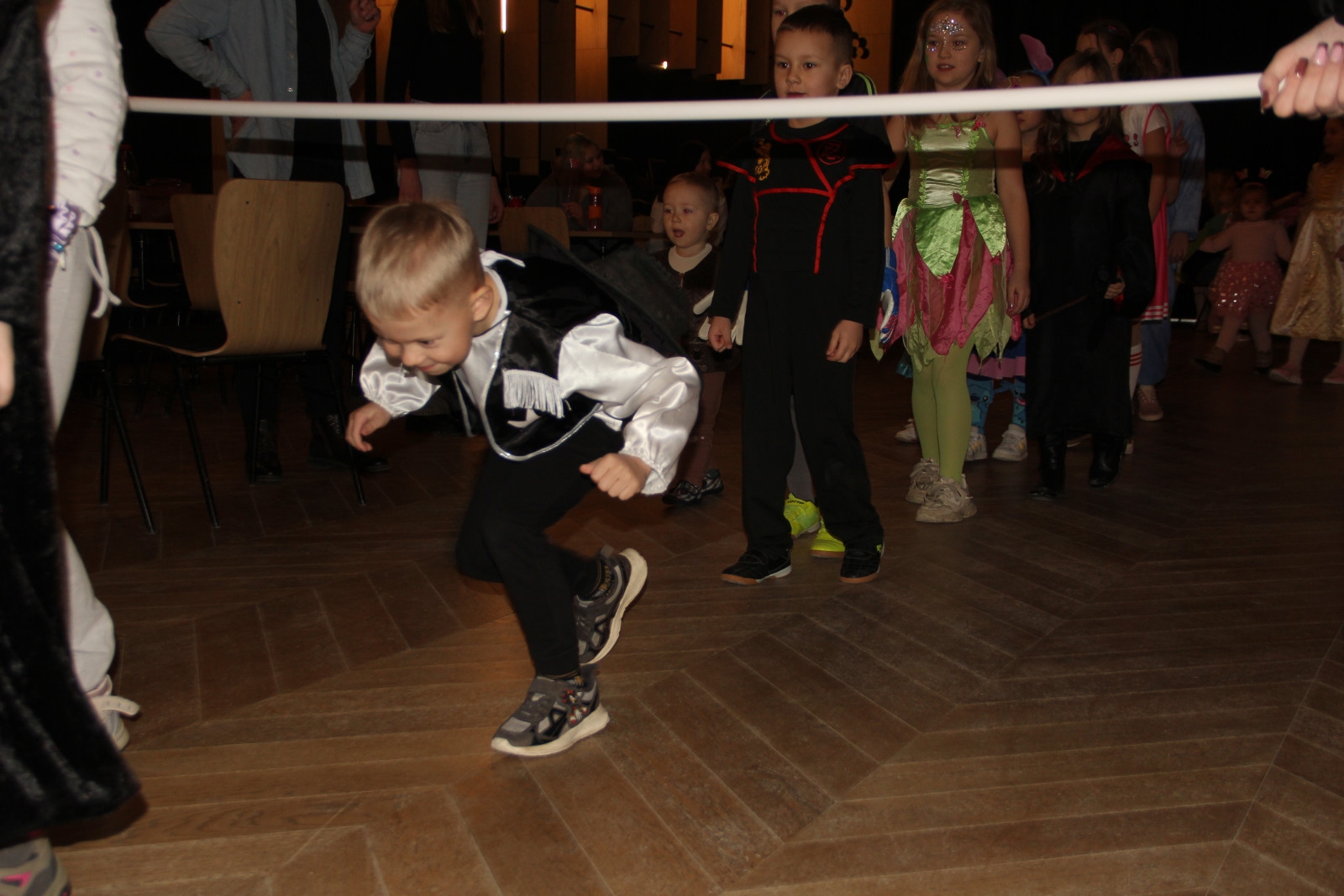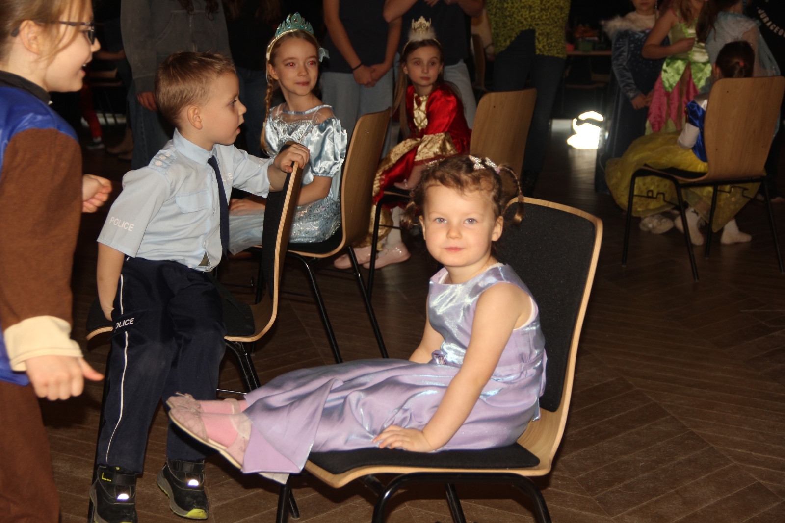 Podczas balu na dzieci czekało wiele atrakcji, zabaw i konkursów ruchowych. W programie znalazły się m.in. takie zabawy jak: „gorące krzesło”, „wędrujący prezent”, przechodzenie pod kijem, taniec z balonikami oraz liczne układy taneczne. Dzieci chętnie brały udział w tańcach takich jak „Zuzanna”, „Idą, idą moje nogi”, „Tańczymy la ba da”, a także w zabawach integracyjnych – wężu karnawałowym.
