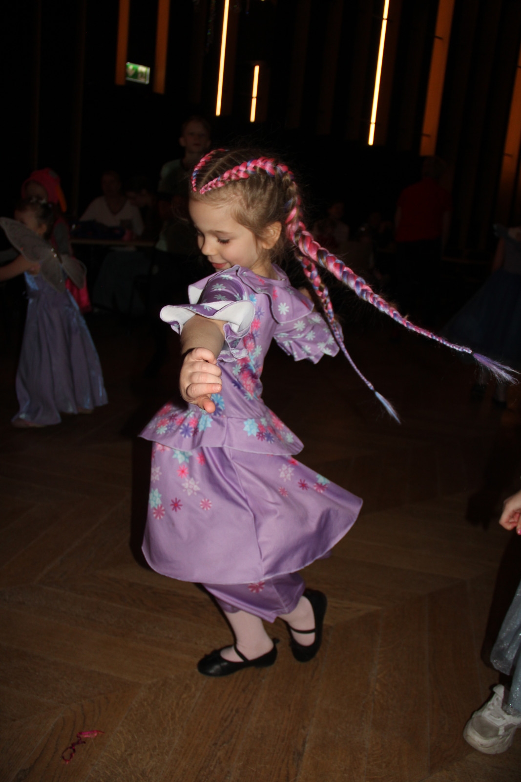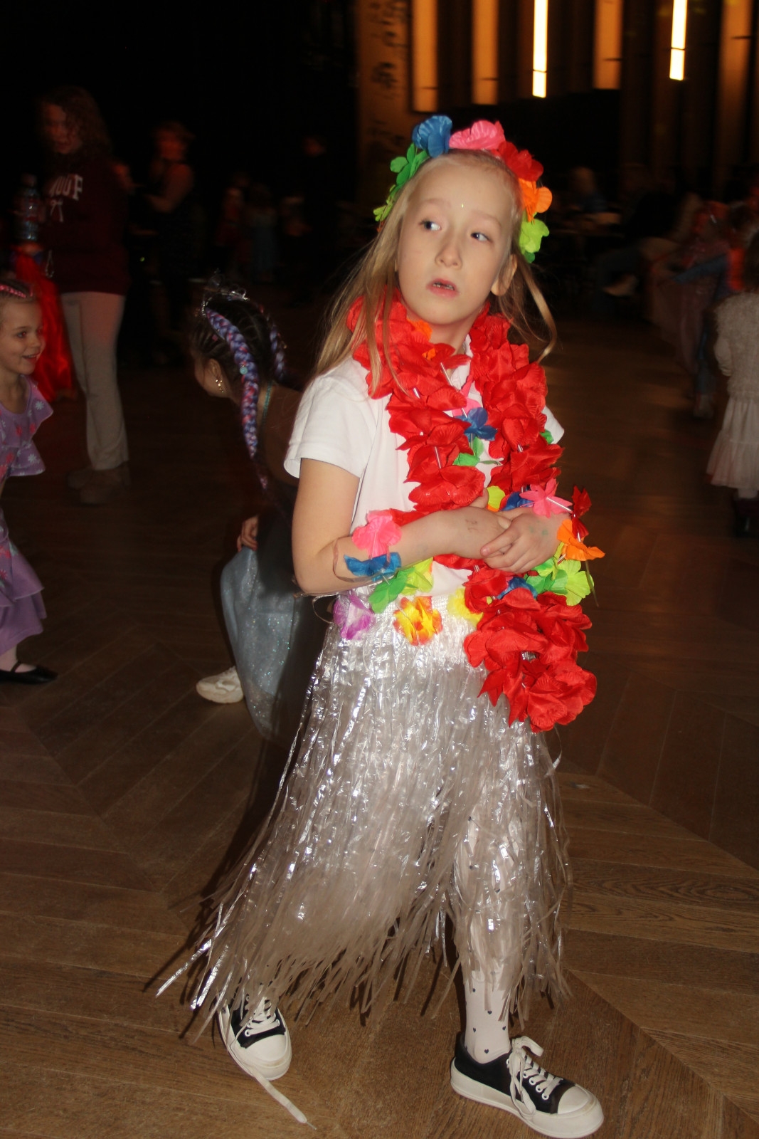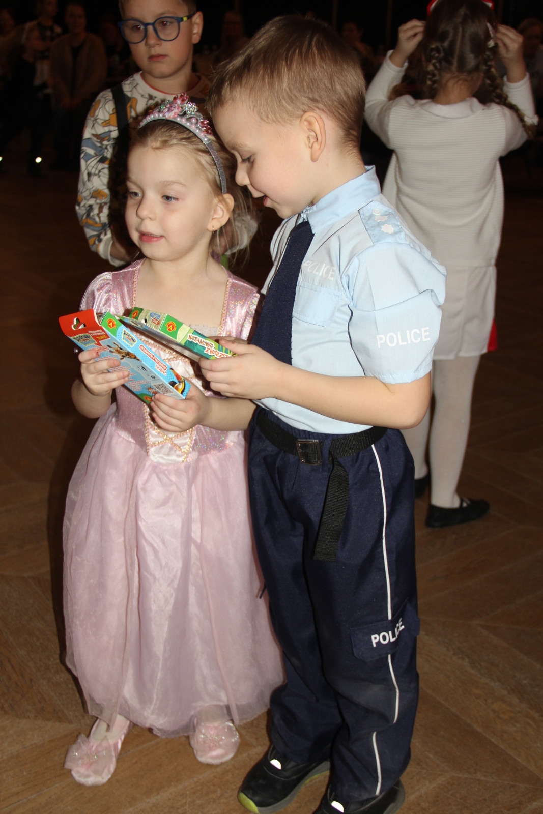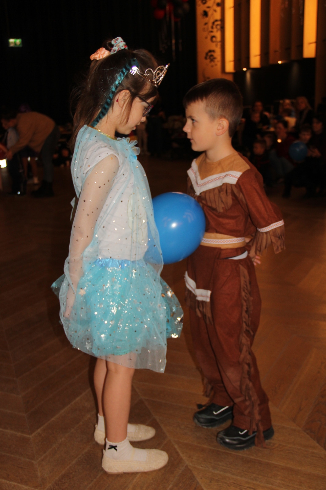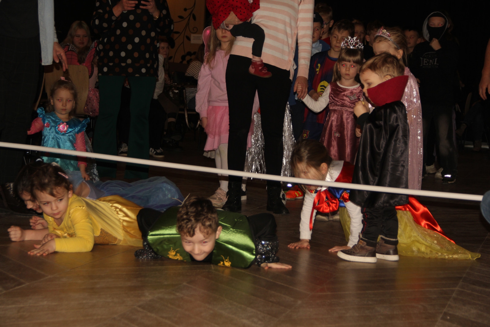 Podczas balu na dzieci czekało wiele atrakcji, zabaw i konkursów ruchowych. W programie znalazły się m.in. takie zabawy jak: „gorące krzesło”, „wędrujący prezent”, przechodzenie pod kijem, taniec z balonikami oraz liczne układy taneczne. Dzieci chętnie brały udział w tańcach takich jak „Zuzanna”, „Idą, idą moje nogi”, „Tańczymy la ba da”, a także w zabawach integracyjnych – wężu karnawałowym.