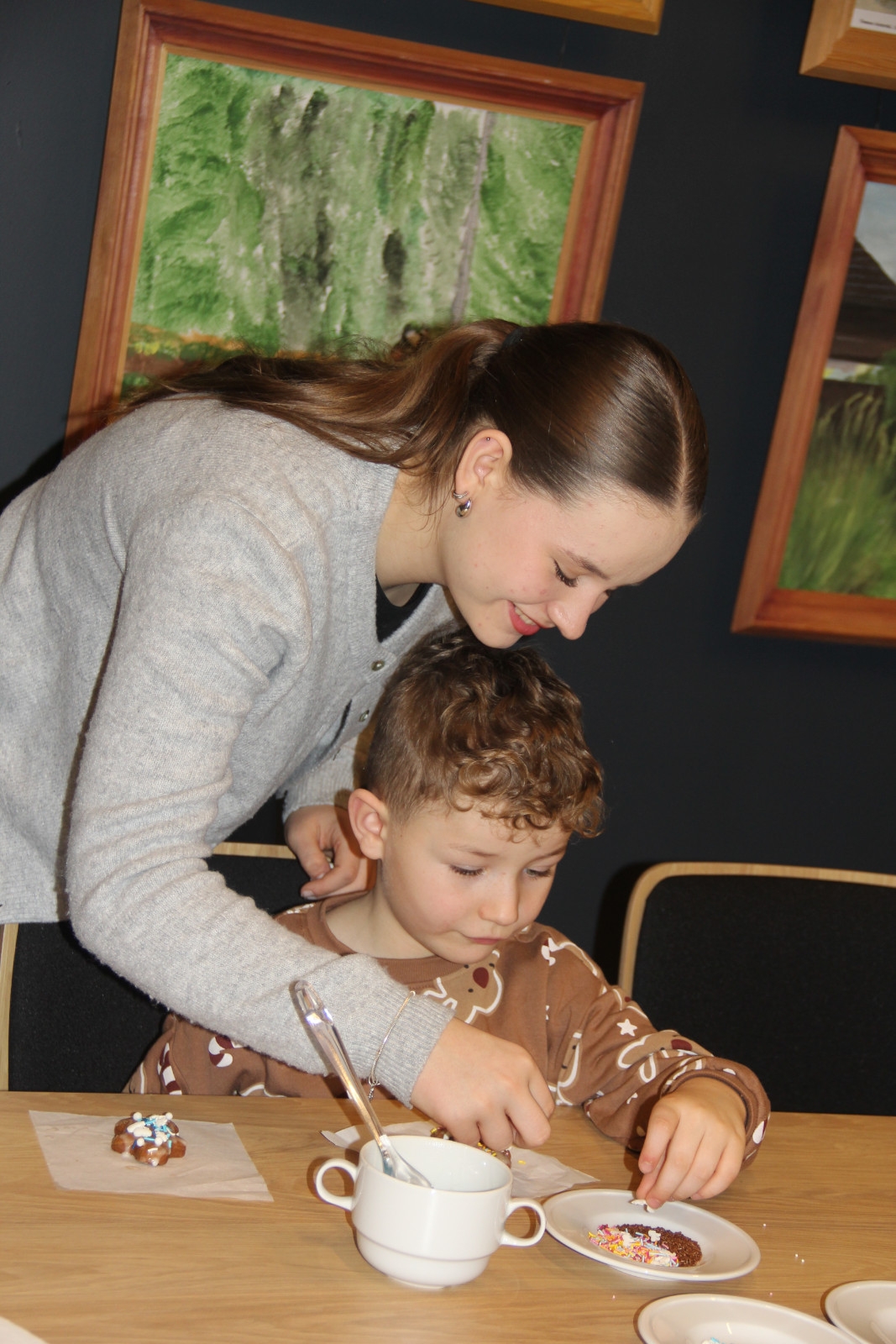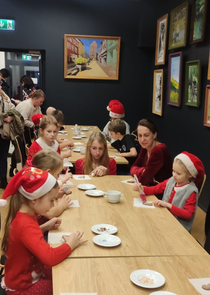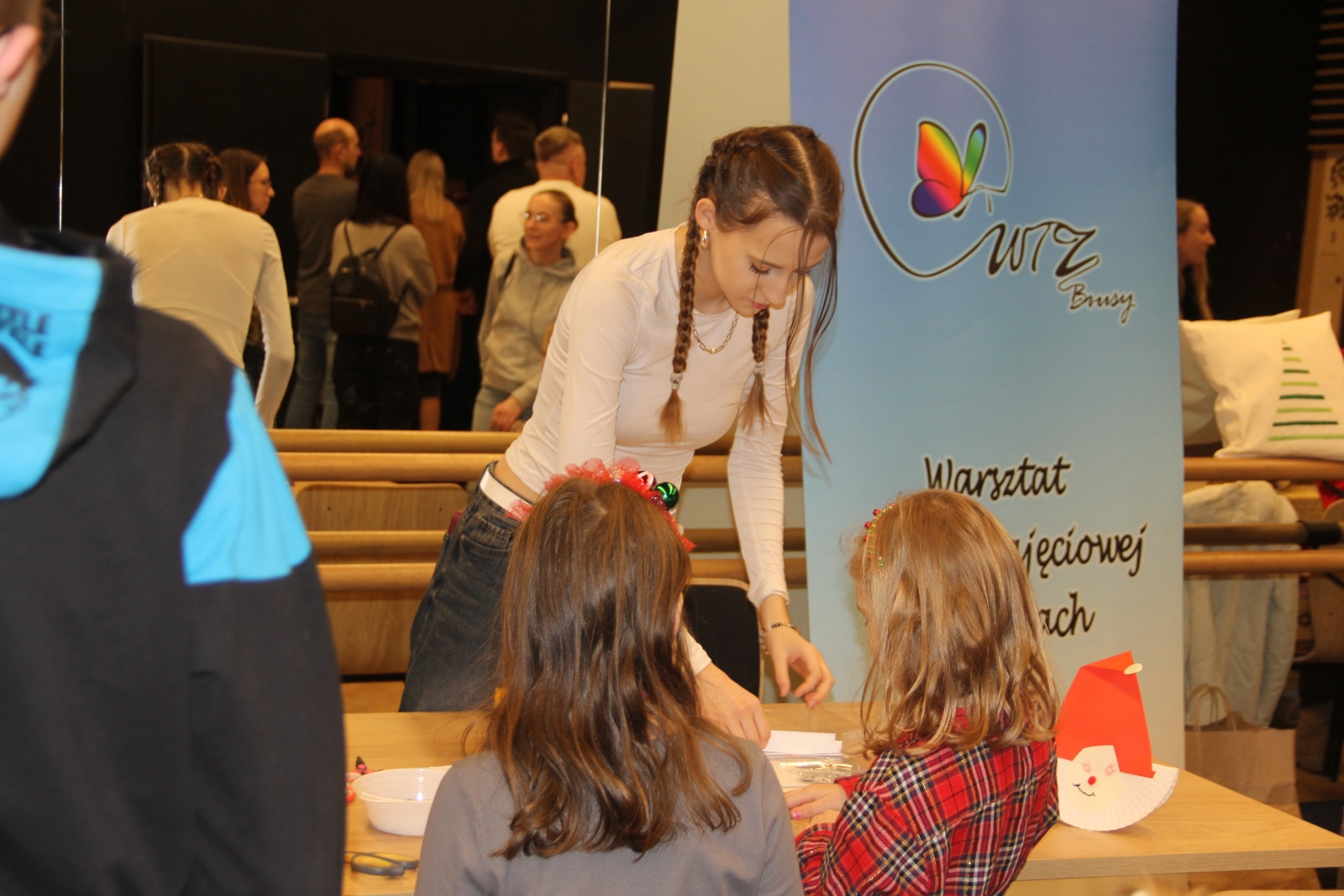 Równolegle odbywały się warsztaty robienia świątecznych bransoletek, prowadzone przez pracowników Środowiskowego Domu Samopomocy w Brusach, a także zajęcia z dekorowania pierników, którymi zajęli się pracownicy Centrum Kultury i Biblioteki.