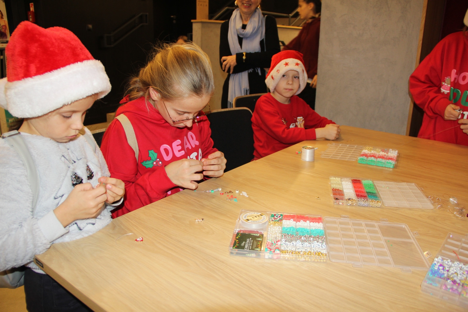 Dużą atrakcją wydarzenia była strefa twórcza, w której dzieci mogły rozwijać swoją kreatywność. Uczestniczki koła plastycznego „Tęcza” prowadziły warsztaty tworzenia świątecznych ozdób, pomagając najmłodszym przygotować oryginalne dekoracje choinkowe.