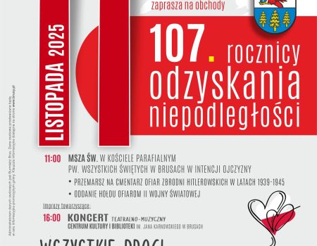 Burmistrz Brus zaprasza na obchody 107. rocznicy odzyskania niepodległości przez Polskę!