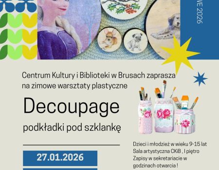 W ofercie Centrum Kultury i Biblioteki im. Jana Karnowskiego w Brusach są następujące koła plastyczne: