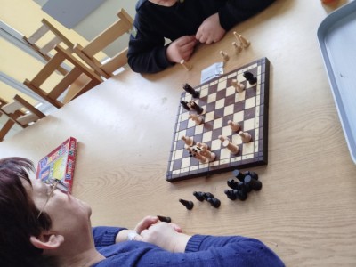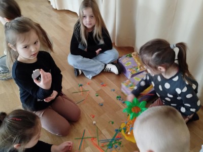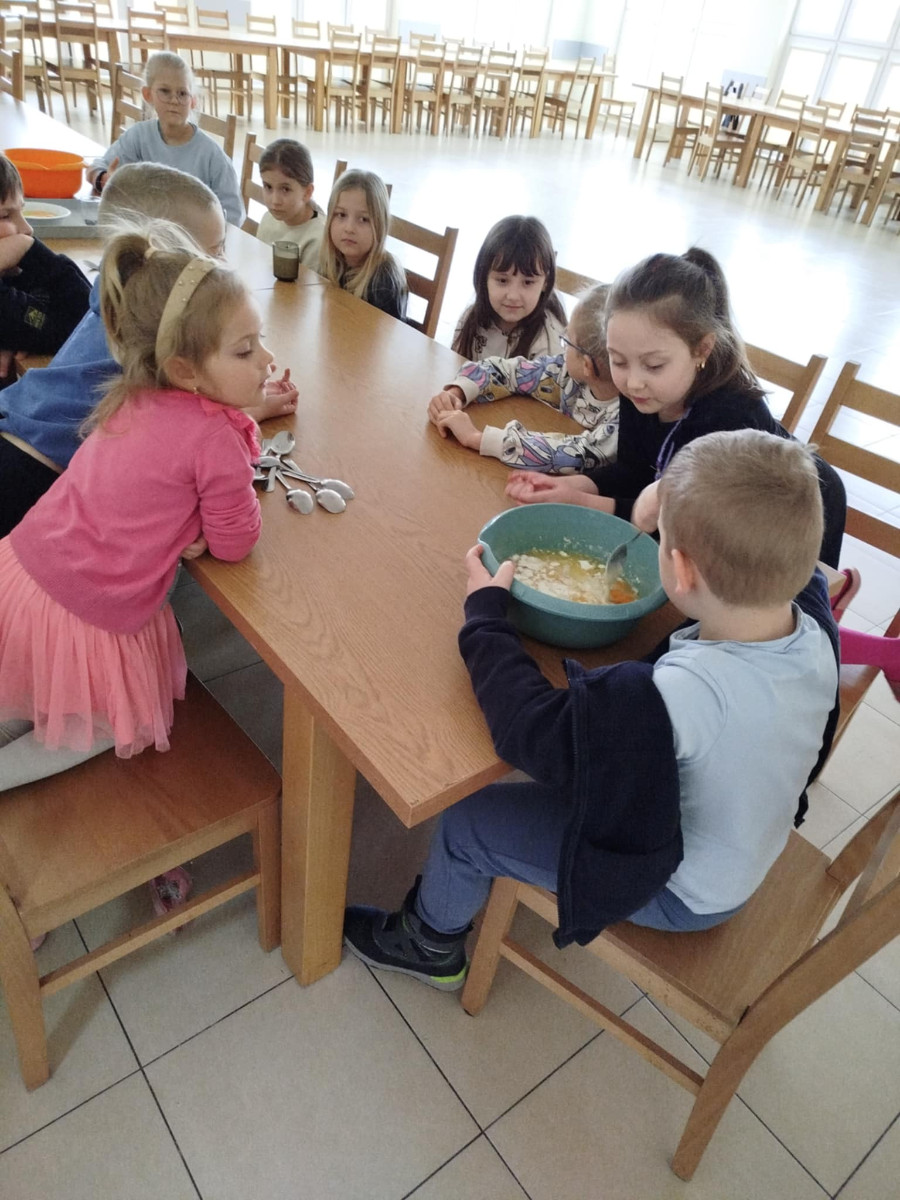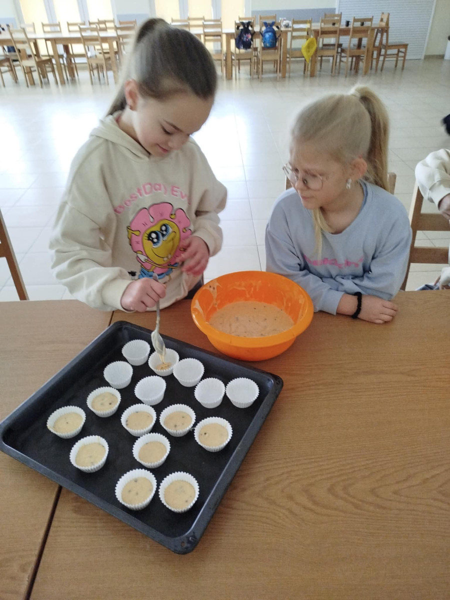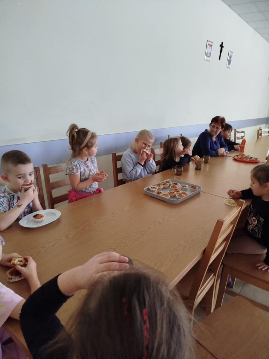 Czwartek i piątek były dniami pełnymi kuchennych słodkości. Przy niewielkiej pomocy dorosłych dzieci upiekły naleśniki oraz przygotowały babeczki, które z apetytem zjadły. Po słodkich przyjemnościach przyszedł czas na gry planszowe i zabawy ruchowe.