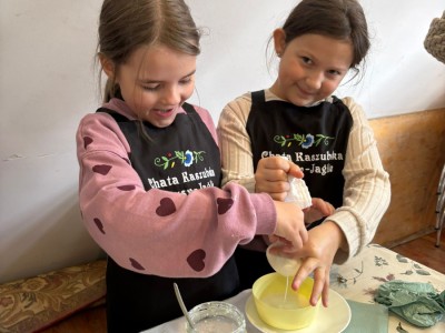 Uczestnicy z dużym zaangażowaniem wykonywali wszystkie etapy pracy, ucząc się poprzez działanie i zabawę. Warsztaty były ciekawą lekcją kaszubskich tradycji oraz okazją do rozwijania samodzielności i współpracy.