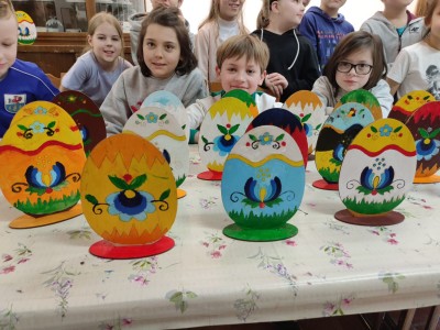 Szkole Podstawowej nr 1 im. Jana Pawła II w Brusach, uczestniczyli w warsztatach regionalnych pn. "Kaszubskie pisanki".