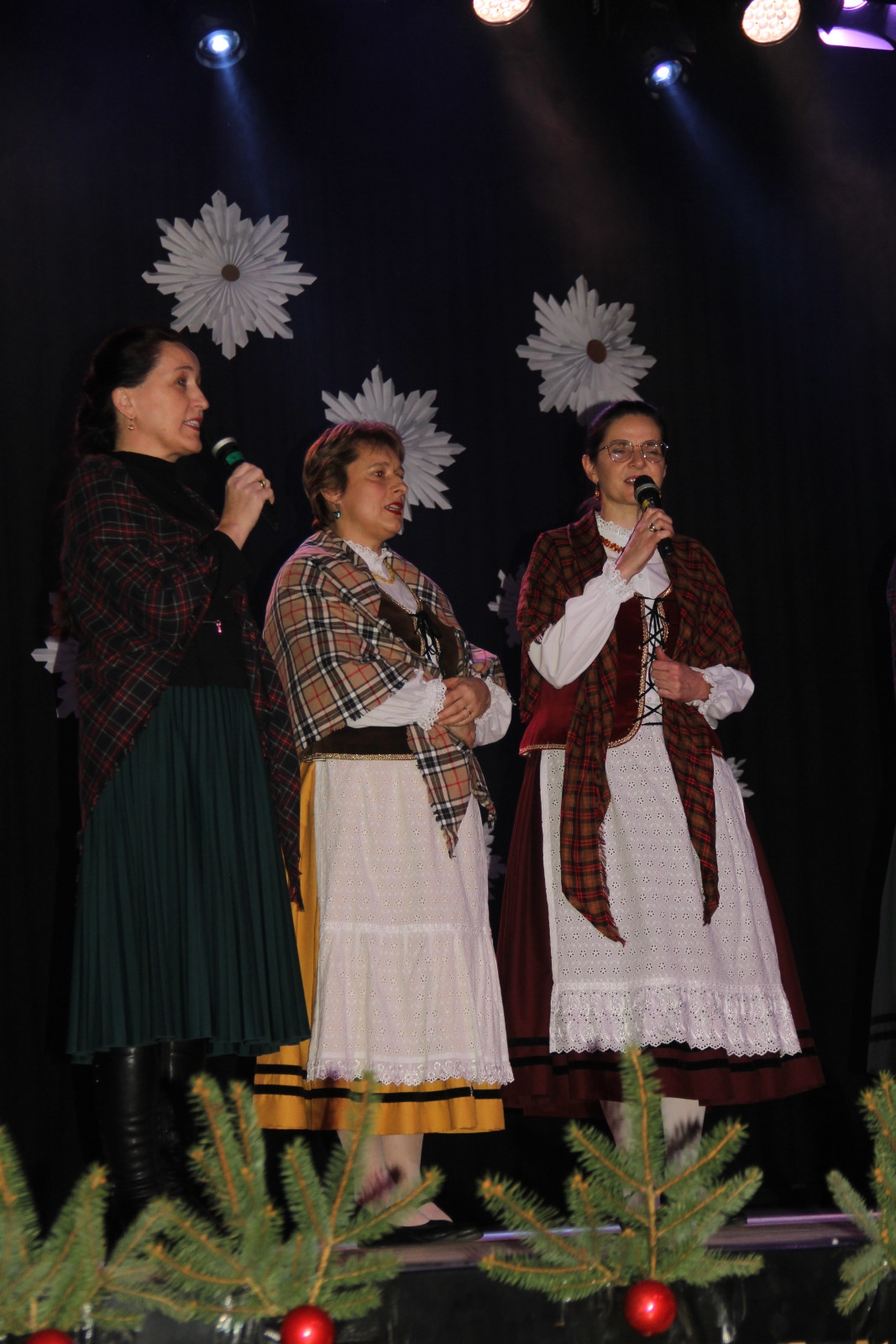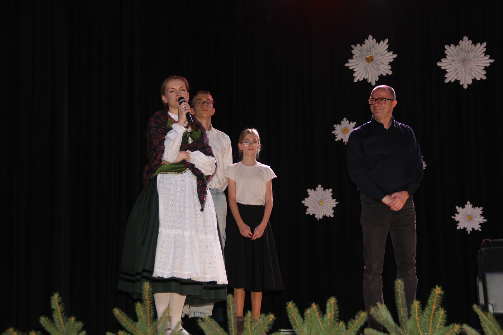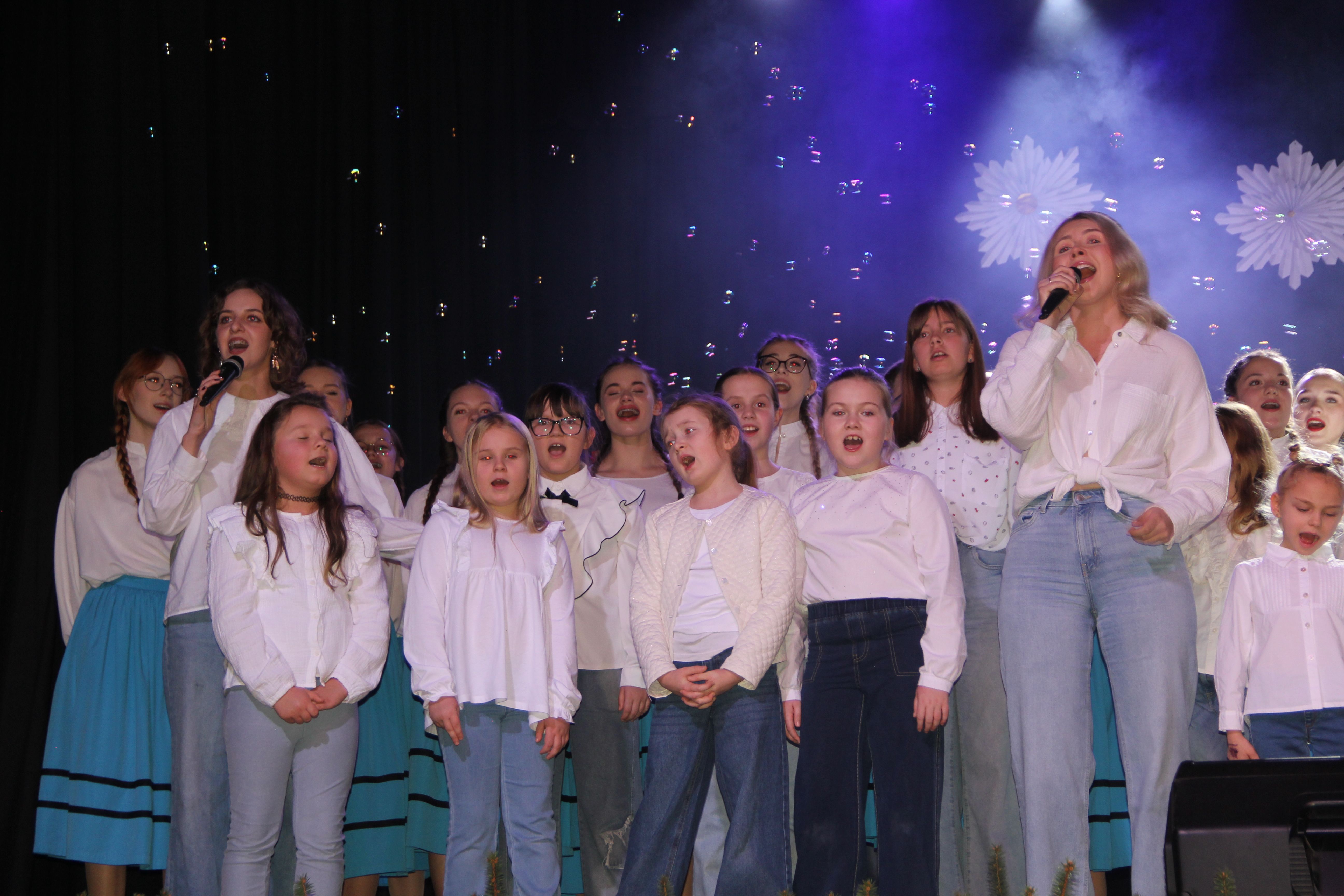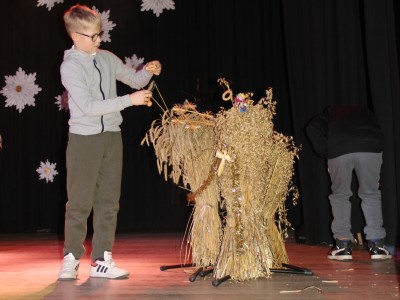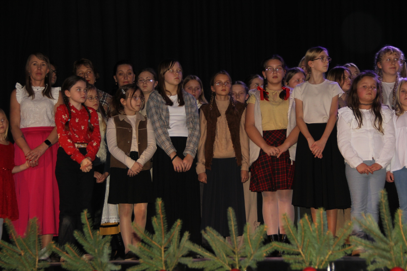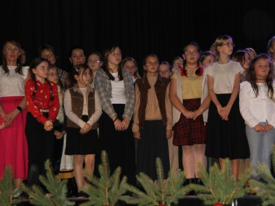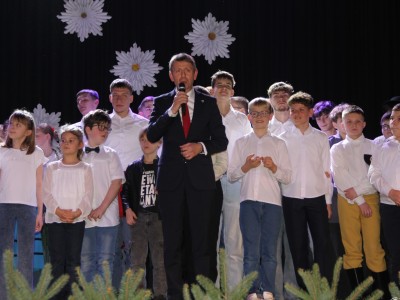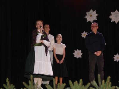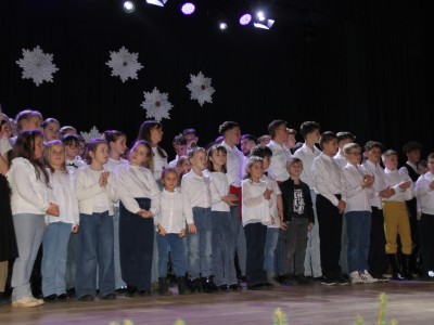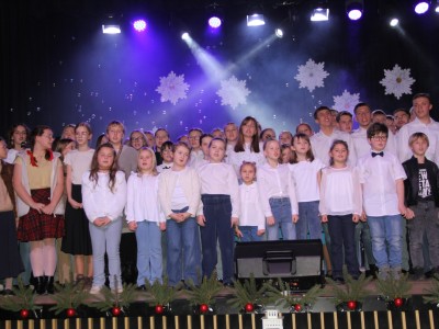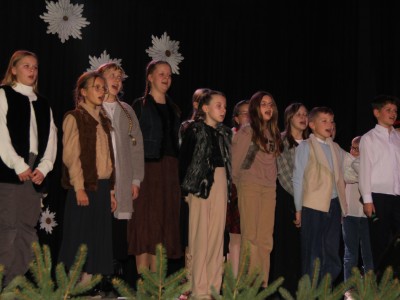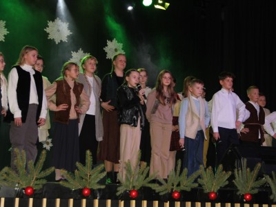 Scenariusz prowadził publiczność przez kolejne etapy tradycyjnego Adwentu – od andrzejek, poprzez roraty i mikołajki, aż po Wigilię, wspólne kolędowanie i pasterkę. Koncert wzbogacały scenki obyczajowe inspirowane dawnymi zwyczajami, pełne ciepła i humoru dialogi narratorów oraz wspomnienia tradycji przekazywanych z pokolenia na pokolenie. Integralną częścią były liczne utwory muzyczne i kolędy, które podkreślały kaszubskie dziedzictwo kulturowe oraz rodzinny charakter świąt. Całość tworzyła spójna opowieść o radości wspólnego przeżywania, bliskości i wzajemnej życzliwości a finał koncertu niósł uniwersalne przesłanie o miłości, wspólnocie i nadziei – wartościach, które w sposób szczególny ujawniają się w czasie Bożego Narodzenia i łączą wszystkich, niezależnie od wieku. Była to doskonała okazja, by na chwilę zwolnić tempo, spotkać się w gronie bliskich i wspólnie poczuć prawdziwego ducha nadchodzących świąt.