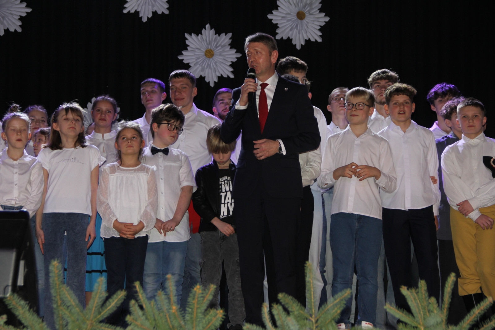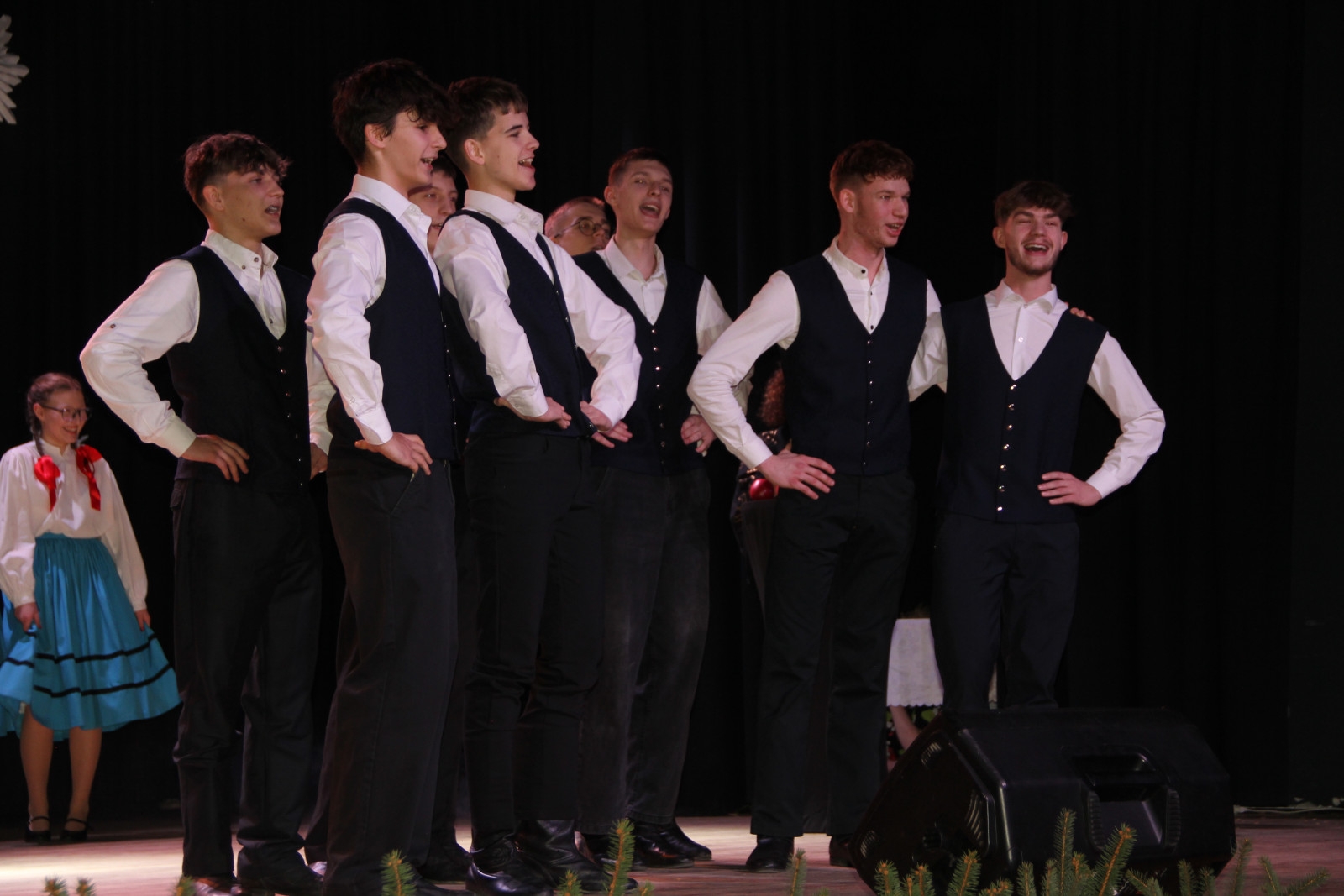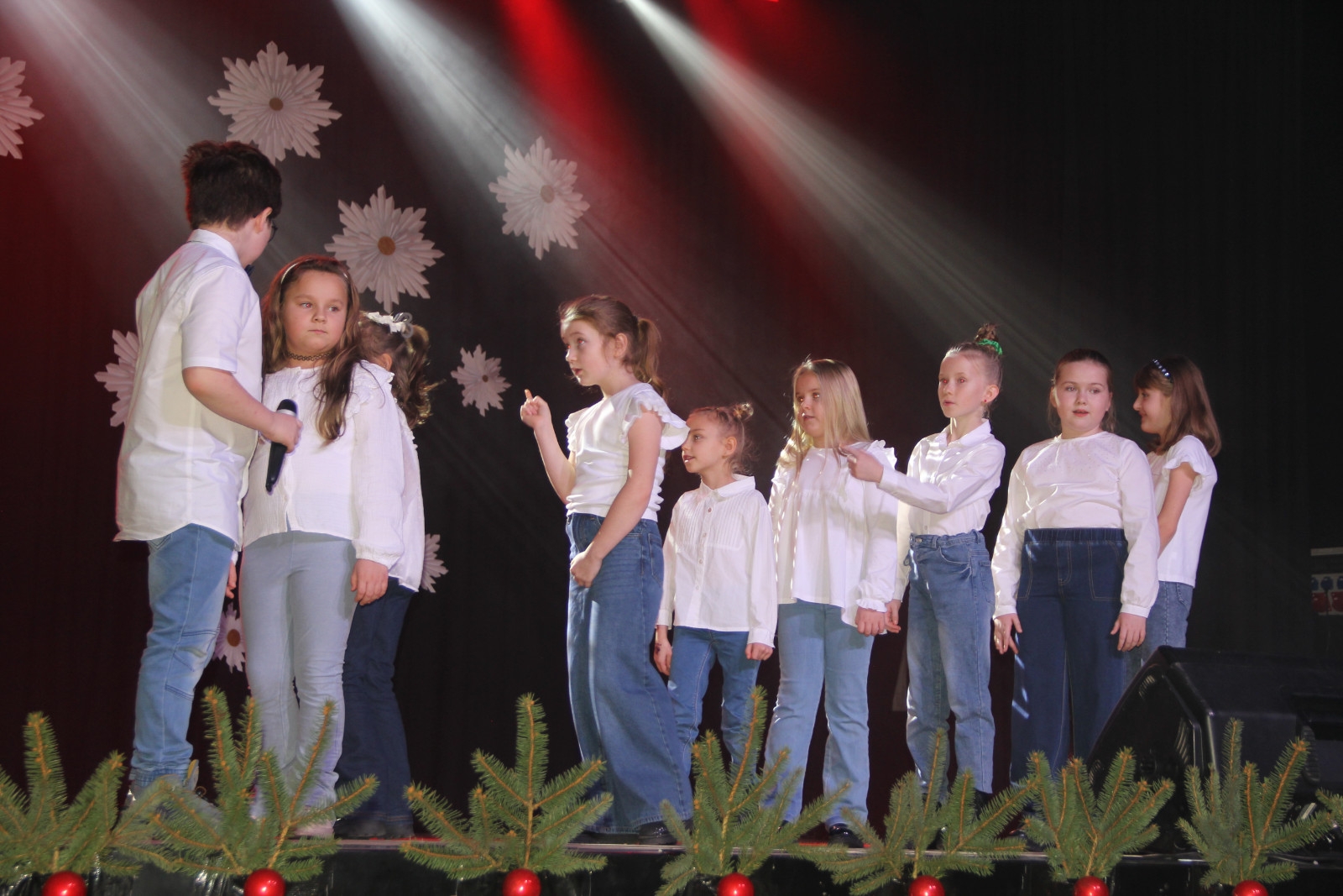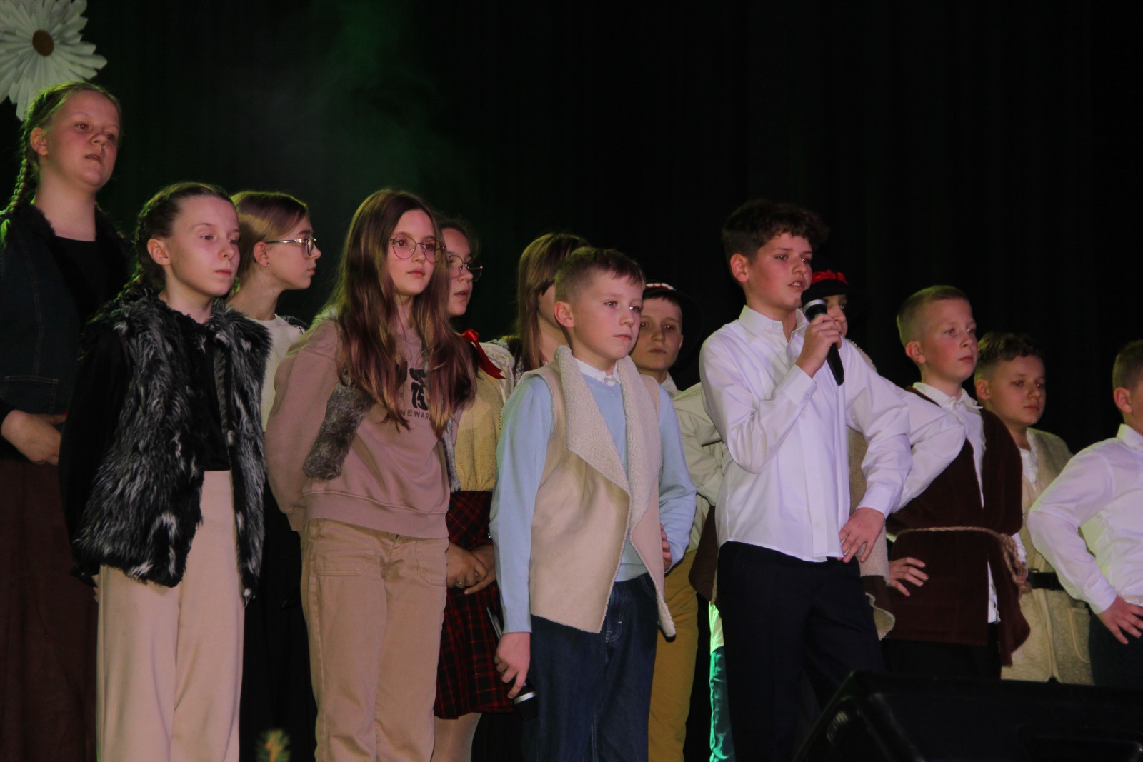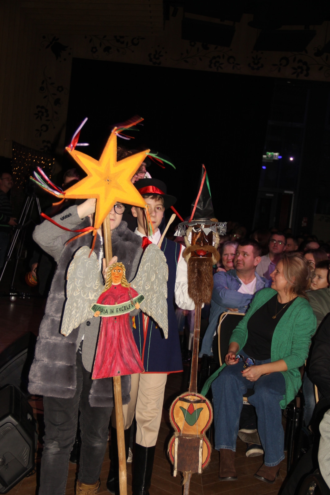 Scenariusz prowadził publiczność przez kolejne etapy tradycyjnego Adwentu – od andrzejek, poprzez roraty i mikołajki, aż po Wigilię, wspólne kolędowanie i pasterkę. Koncert wzbogacały scenki obyczajowe inspirowane dawnymi zwyczajami, pełne ciepła i humoru dialogi narratorów oraz wspomnienia tradycji przekazywanych z pokolenia na pokolenie. Integralną częścią były liczne utwory muzyczne i kolędy, które podkreślały kaszubskie dziedzictwo kulturowe oraz rodzinny charakter świąt. Całość tworzyła spójna opowieść o radości wspólnego przeżywania, bliskości i wzajemnej życzliwości a finał koncertu niósł uniwersalne przesłanie o miłości, wspólnocie i nadziei – wartościach, które w sposób szczególny ujawniają się w czasie Bożego Narodzenia i łączą wszystkich, niezależnie od wieku. Była to doskonała okazja, by na chwilę zwolnić tempo, spotkać się w gronie bliskich i wspólnie poczuć prawdziwego ducha nadchodzących świąt.