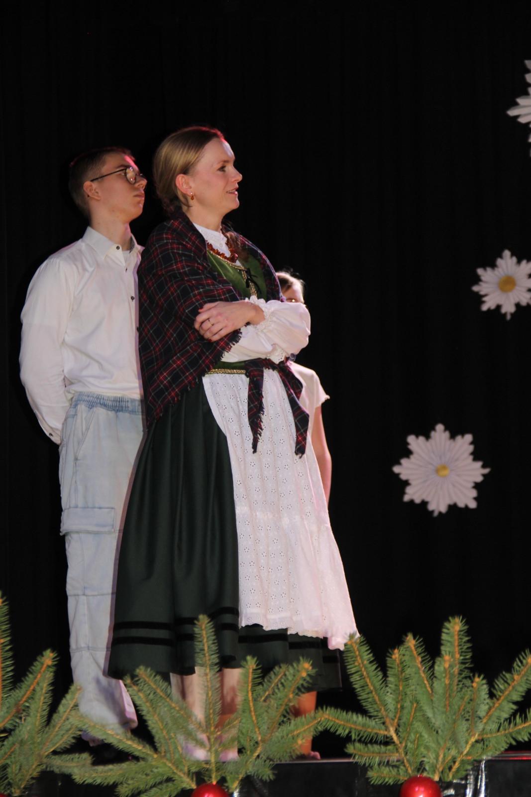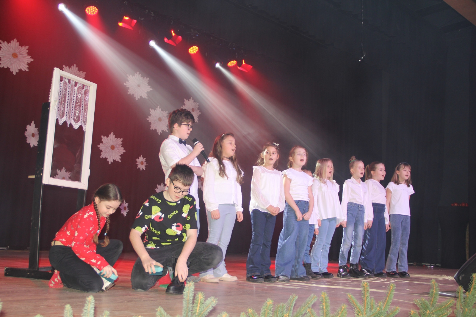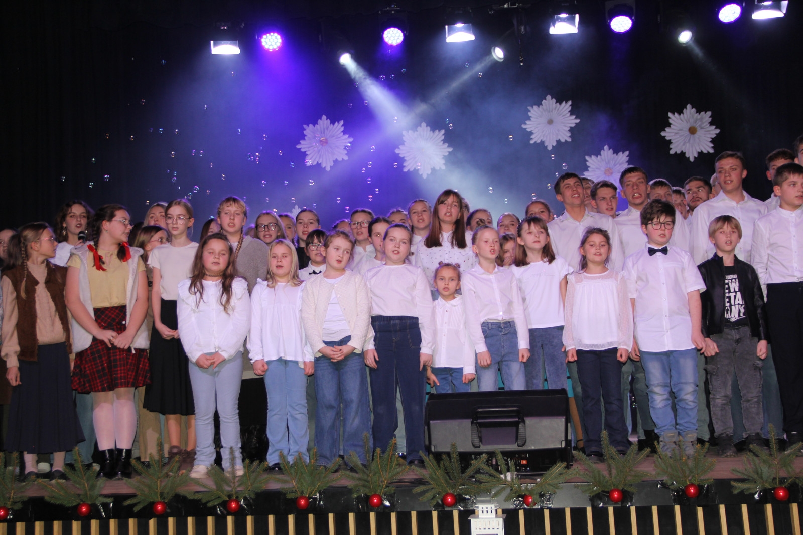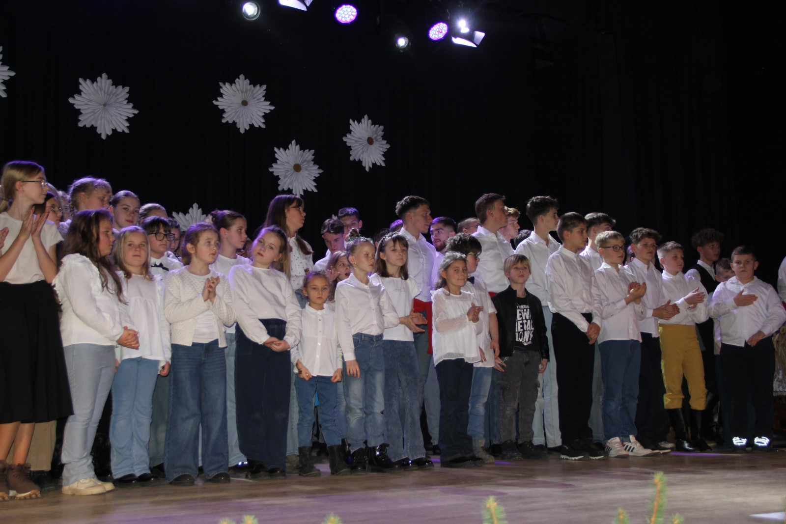 Scenariusz prowadził publiczność przez kolejne etapy tradycyjnego Adwentu – od andrzejek, poprzez roraty i mikołajki, aż po Wigilię, wspólne kolędowanie i pasterkę. Koncert wzbogacały scenki obyczajowe inspirowane dawnymi zwyczajami, pełne ciepła i humoru dialogi narratorów oraz wspomnienia tradycji przekazywanych z pokolenia na pokolenie. Integralną częścią były liczne utwory muzyczne i kolędy, które podkreślały kaszubskie dziedzictwo kulturowe oraz rodzinny charakter świąt. Całość tworzyła spójna opowieść o radości wspólnego przeżywania, bliskości i wzajemnej życzliwości a finał koncertu niósł uniwersalne przesłanie o miłości, wspólnocie i nadziei – wartościach, które w sposób szczególny ujawniają się w czasie Bożego Narodzenia i łączą wszystkich, niezależnie od wieku. Była to doskonała okazja, by na chwilę zwolnić tempo, spotkać się w gronie bliskich i wspólnie poczuć prawdziwego ducha nadchodzących świąt.