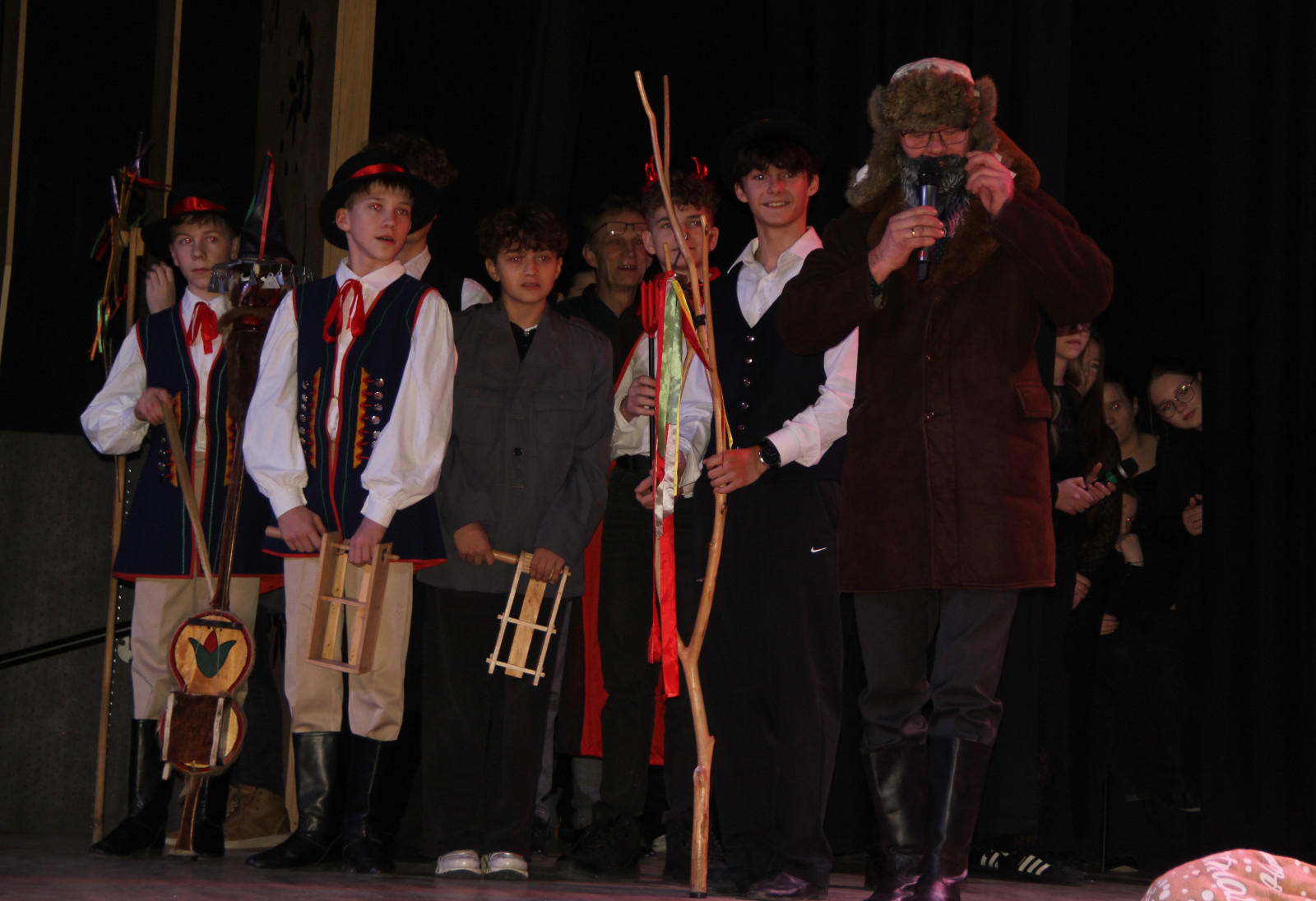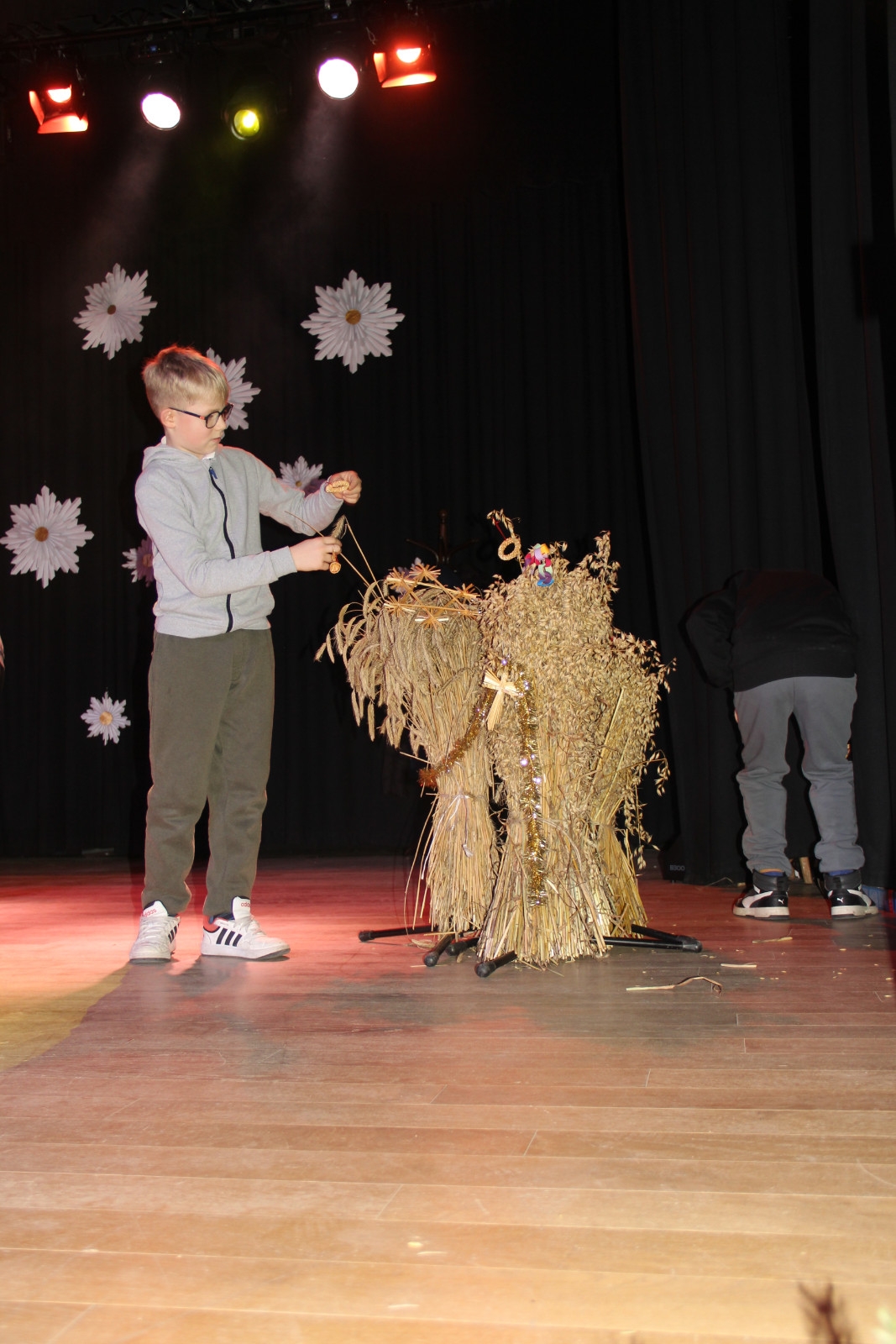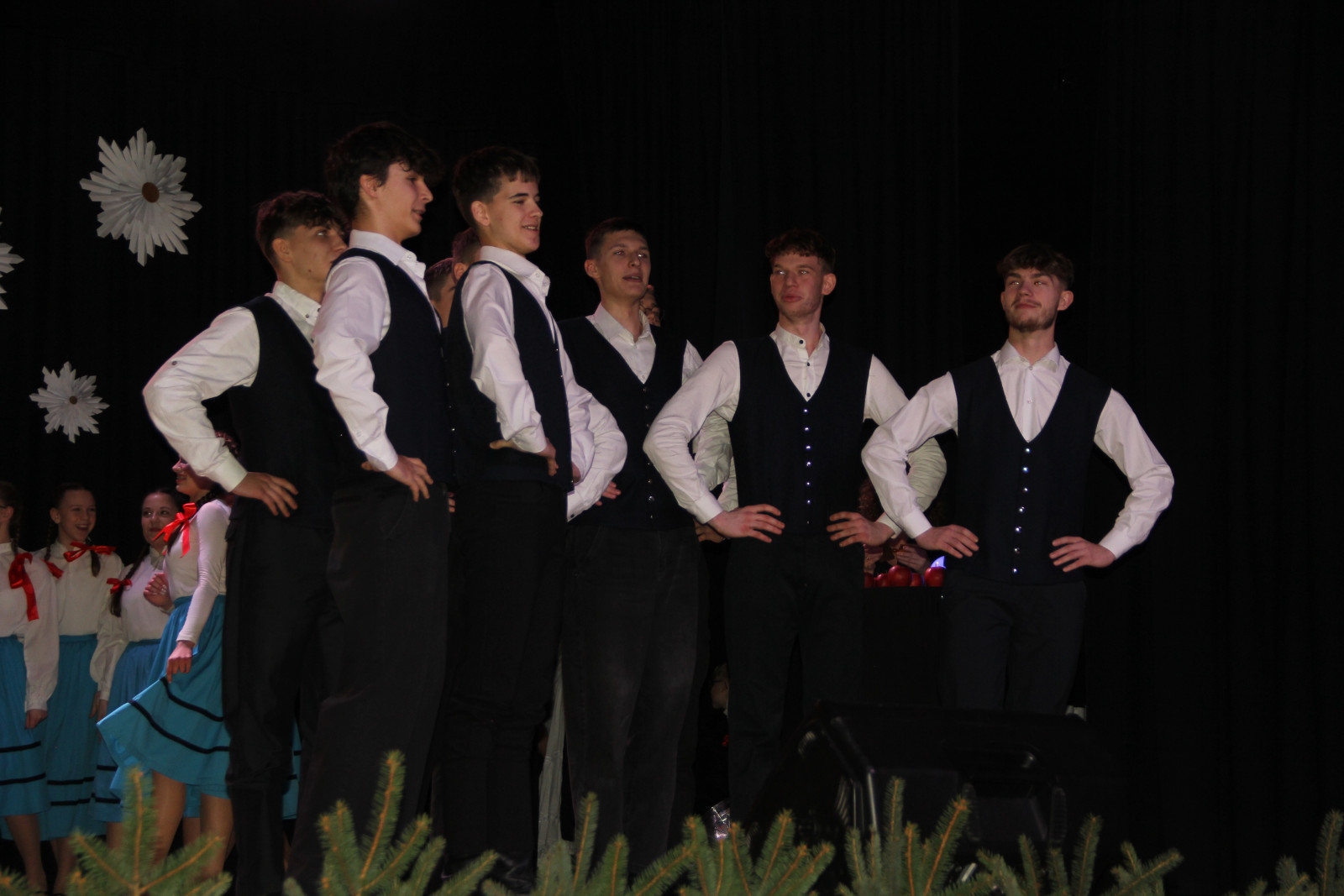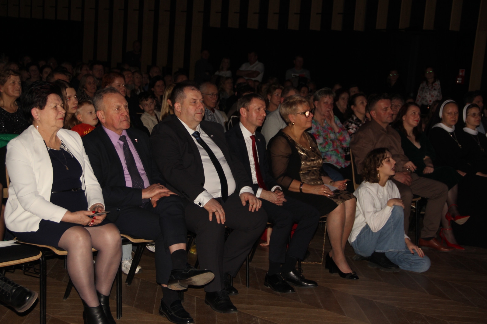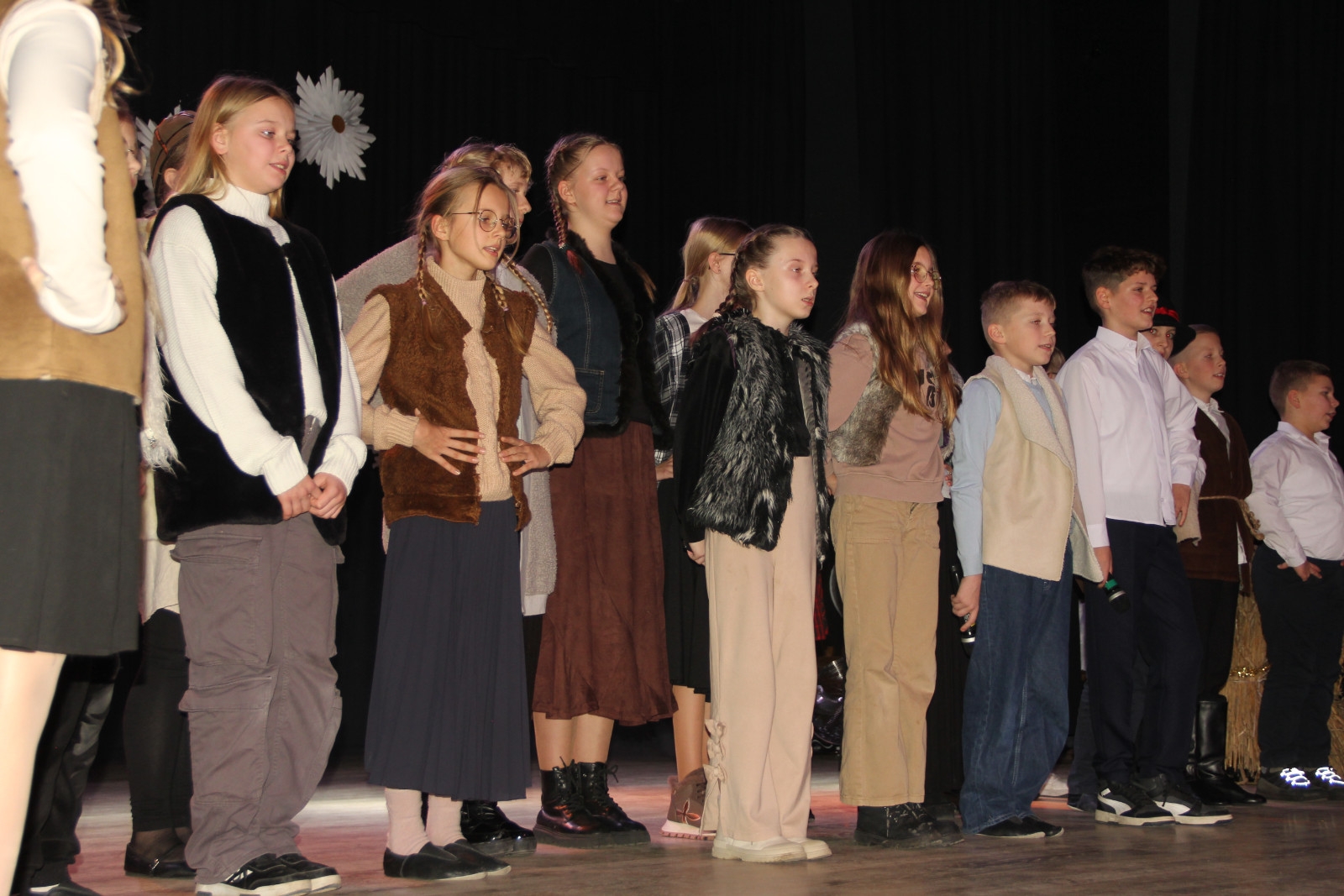 Scenariusz prowadził publiczność przez kolejne etapy tradycyjnego Adwentu – od andrzejek, poprzez roraty i mikołajki, aż po Wigilię, wspólne kolędowanie i pasterkę. Koncert wzbogacały scenki obyczajowe inspirowane dawnymi zwyczajami, pełne ciepła i humoru dialogi narratorów oraz wspomnienia tradycji przekazywanych z pokolenia na pokolenie. Integralną częścią były liczne utwory muzyczne i kolędy, które podkreślały kaszubskie dziedzictwo kulturowe oraz rodzinny charakter świąt. Całość tworzyła spójna opowieść o radości wspólnego przeżywania, bliskości i wzajemnej życzliwości a finał koncertu niósł uniwersalne przesłanie o miłości, wspólnocie i nadziei – wartościach, które w sposób szczególny ujawniają się w czasie Bożego Narodzenia i łączą wszystkich, niezależnie od wieku. Była to doskonała okazja, by na chwilę zwolnić tempo, spotkać się w gronie bliskich i wspólnie poczuć prawdziwego ducha nadchodzących świąt.
