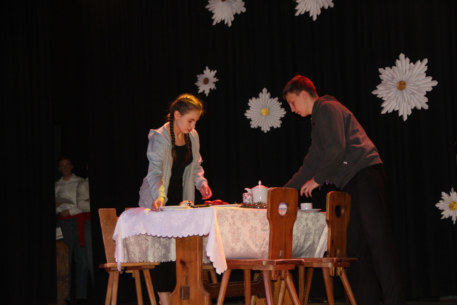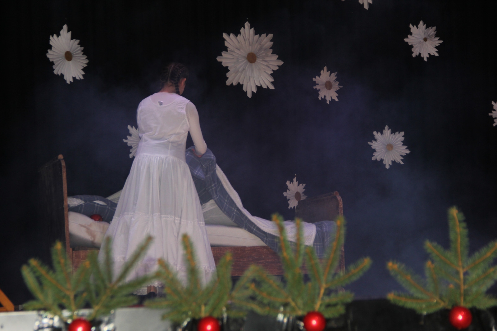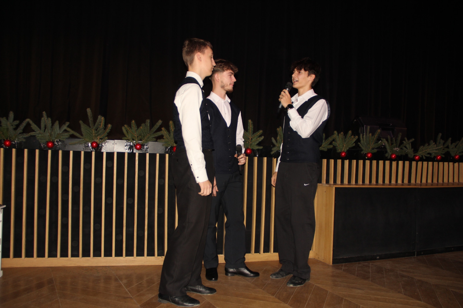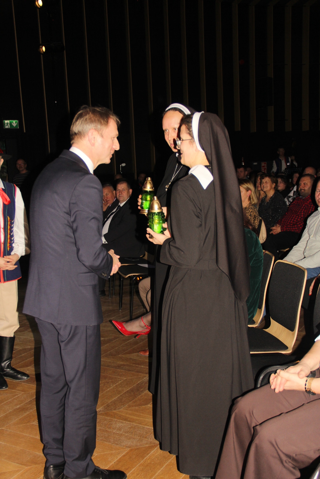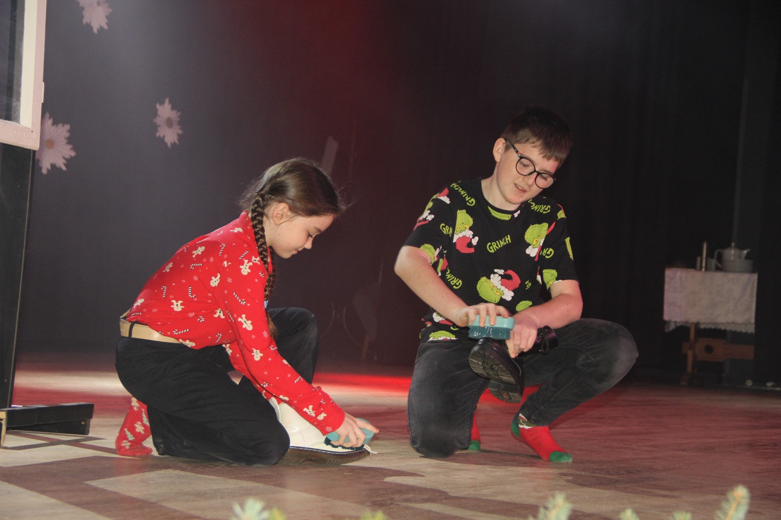 Scenariusz prowadził publiczność przez kolejne etapy tradycyjnego Adwentu – od andrzejek, poprzez roraty i mikołajki, aż po Wigilię, wspólne kolędowanie i pasterkę. Koncert wzbogacały scenki obyczajowe inspirowane dawnymi zwyczajami, pełne ciepła i humoru dialogi narratorów oraz wspomnienia tradycji przekazywanych z pokolenia na pokolenie. Integralną częścią były liczne utwory muzyczne i kolędy, które podkreślały kaszubskie dziedzictwo kulturowe oraz rodzinny charakter świąt. Całość tworzyła spójna opowieść o radości wspólnego przeżywania, bliskości i wzajemnej życzliwości a finał koncertu niósł uniwersalne przesłanie o miłości, wspólnocie i nadziei – wartościach, które w sposób szczególny ujawniają się w czasie Bożego Narodzenia i łączą wszystkich, niezależnie od wieku. Była to doskonała okazja, by na chwilę zwolnić tempo, spotkać się w gronie bliskich i wspólnie poczuć prawdziwego ducha nadchodzących świąt.