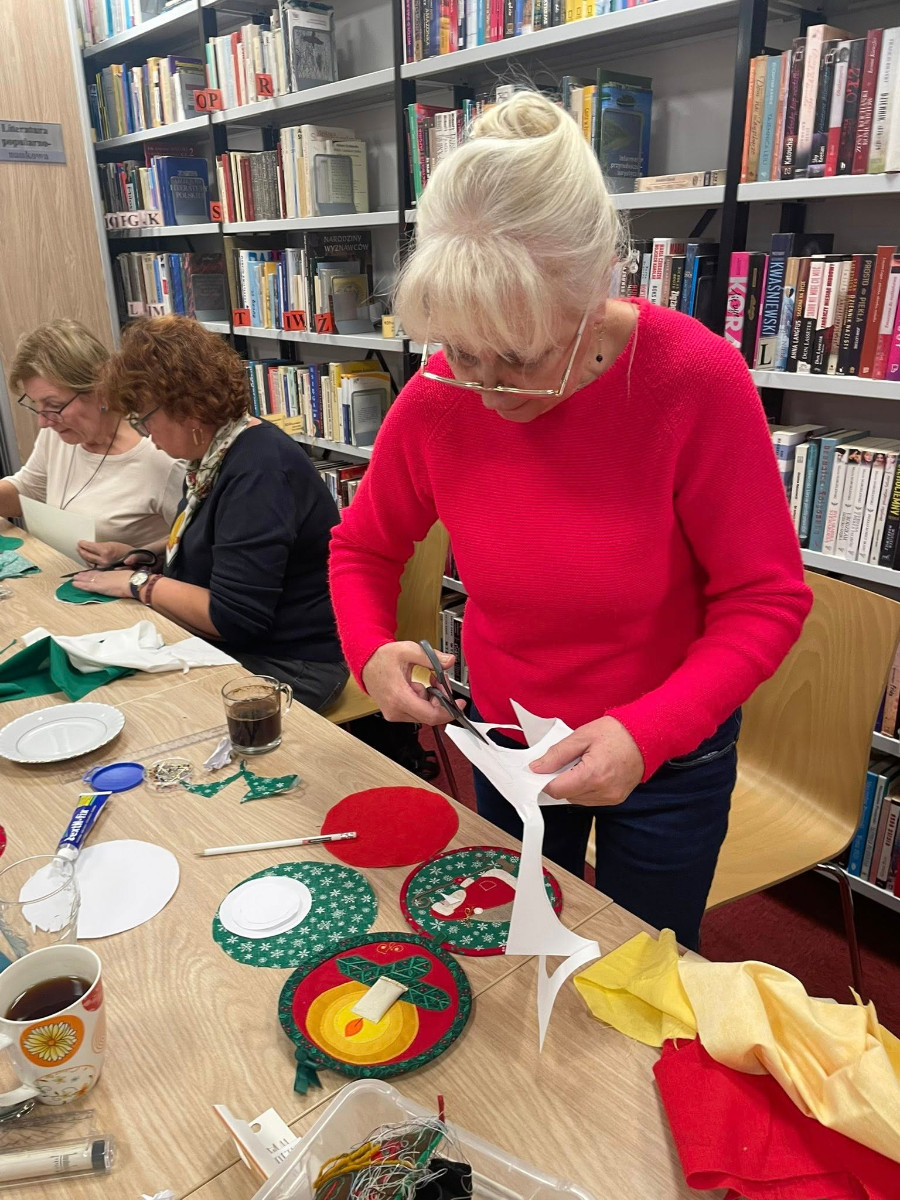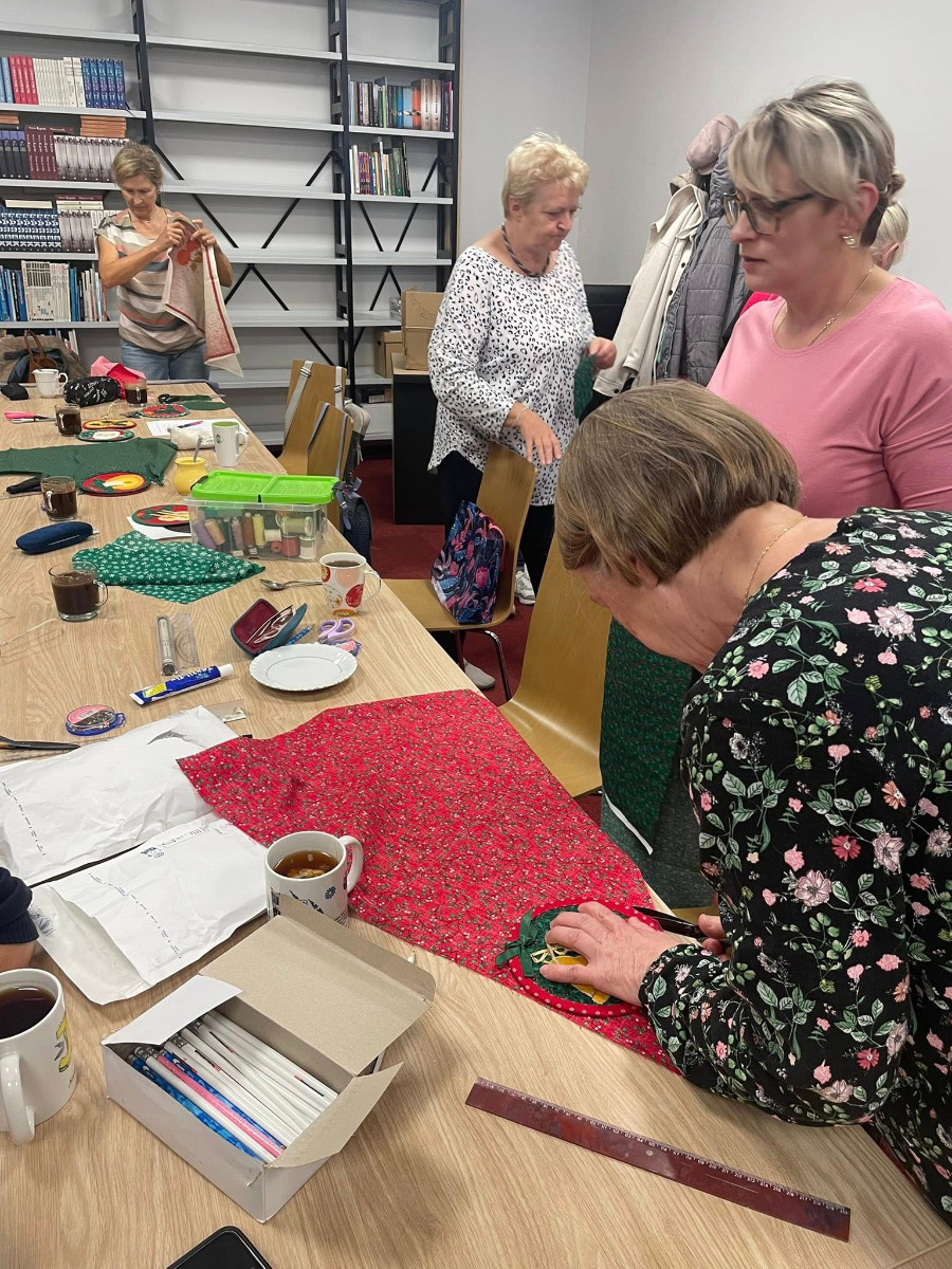 23 października Panie z grupy „Kreatywnie w bibliotece” rozpoczęły przygodę z nową techniką szycia – patchworkiem! 🧵