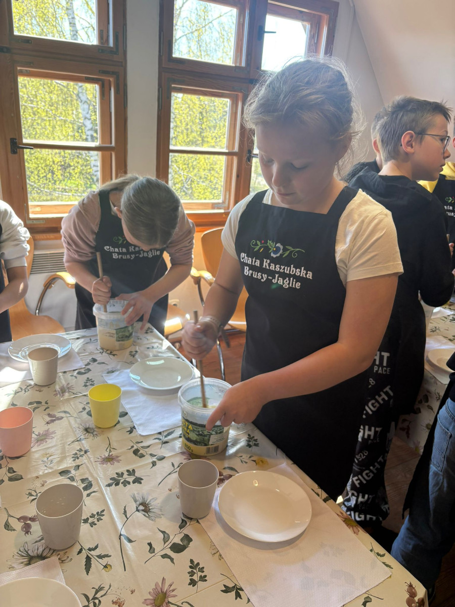 Uczniowie klasy IV z Zespołu Szkół w Lipnicy uczestniczyli w warsztatach regionalnych „Ogniste wafle”, które odbyły się 28 kwietnia 2026 r. w Chacie Kaszubskiej w Brusach Jagliach.