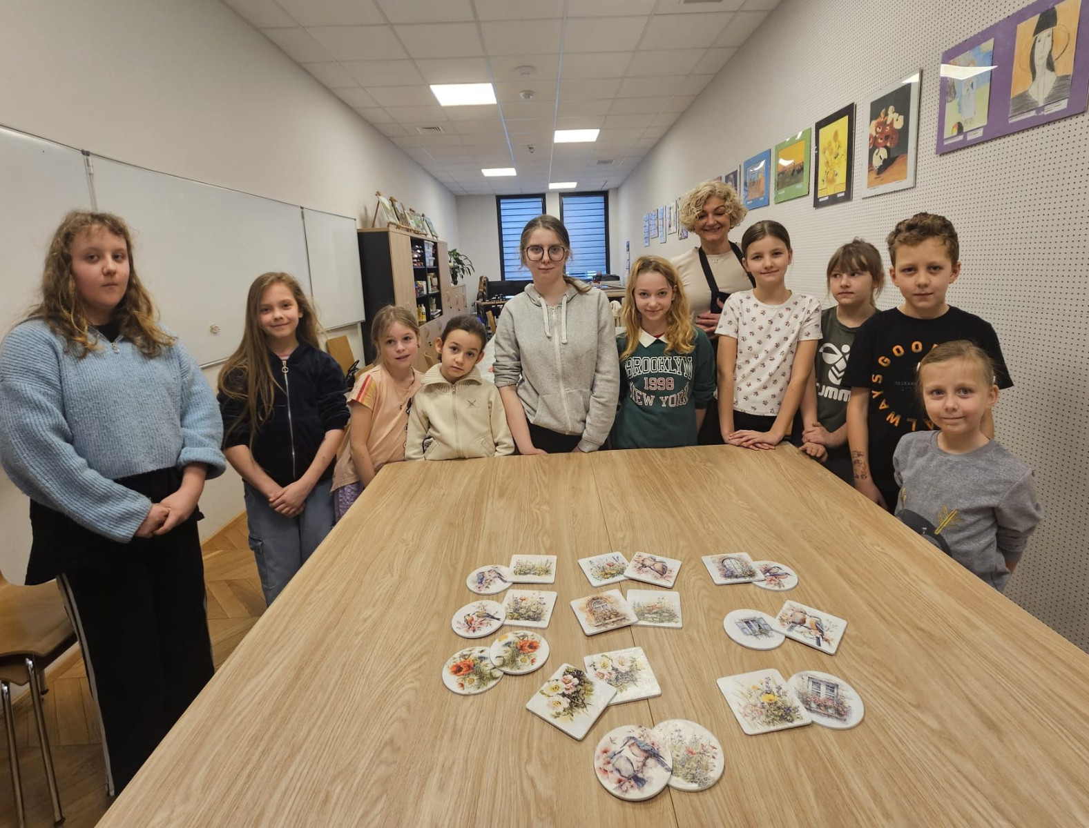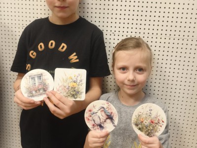 Efektem warsztatów były niepowtarzalne, ręcznie zdobione podkładki, które każdy uczestnik mógł zabrać ze sobą do domu. Gotowe prace mogą stać się miłą pamiątką z ferii lub oryginalnym prezentem dla bliskiej osoby.