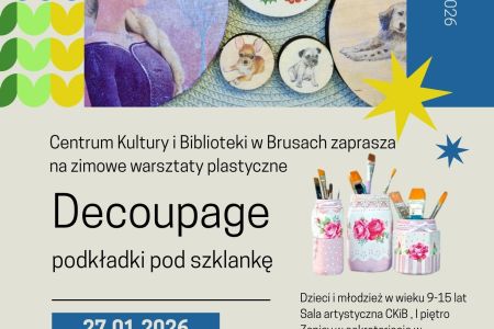 Centrum Kultury i Biblioteki w Brusach zaprasza dzieci i młodzież w wieku 9–15 lat na kreatywne zajęcia plastyczne, podczas których uczestnicy wykonają własnoręczne podkładki pod…