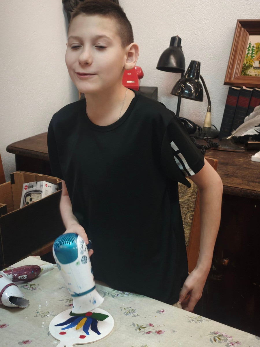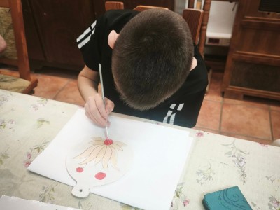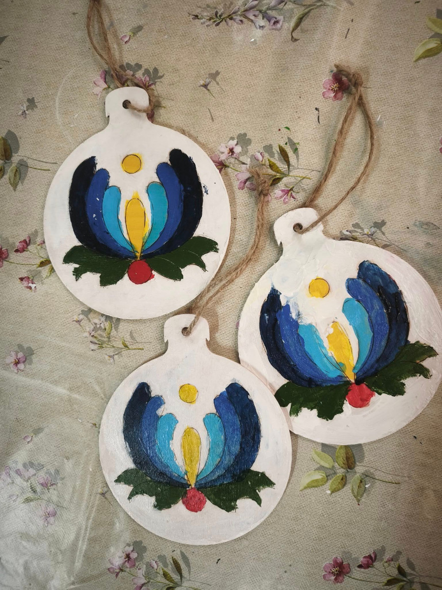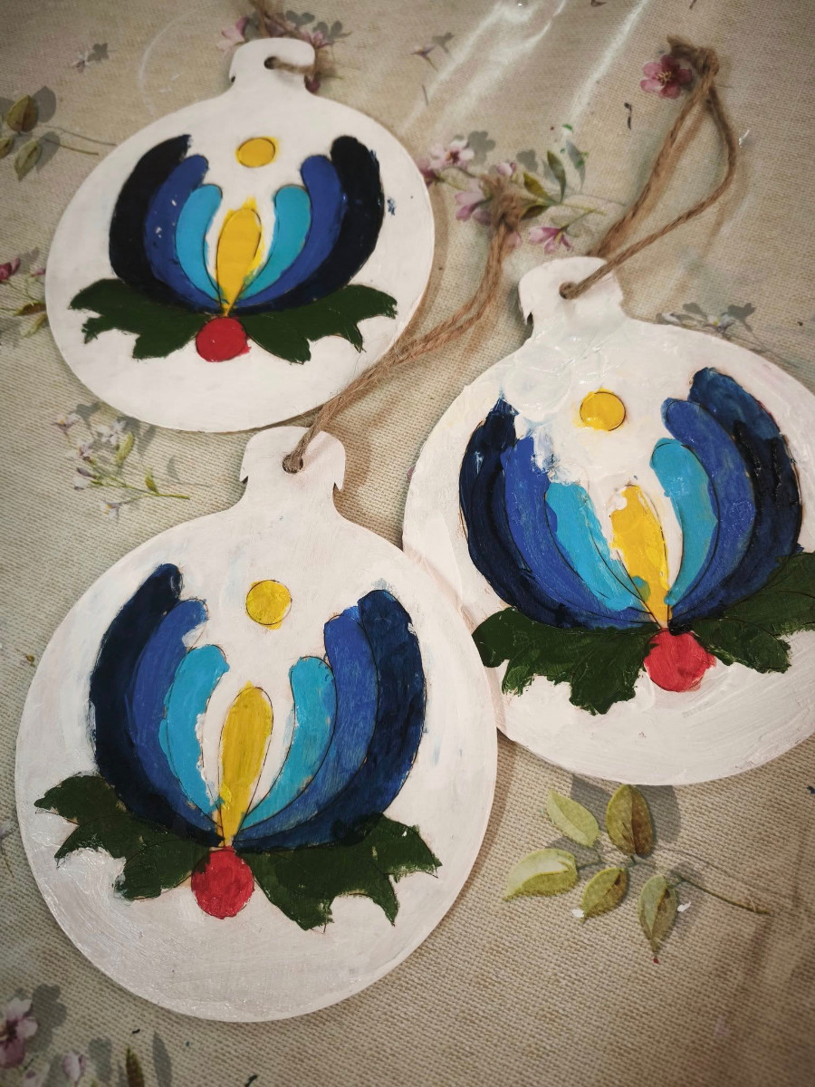 Głównym celem warsztatów było zapoznanie dzieci z historią ozdób choinkowych na Zaborach. Po krótkim wprowadzeniu uczestnicy przystąpili do części praktycznej – samodzielnie malowali drewniane bombki farbami akrylowymi, wykorzystując charakterystyczne motywy haftu kaszubskiego, takie jak palmeta i tulipan. Każde dziecko wykonało własną, niepowtarzalną ozdobę, którą zabrało ze sobą na pamiątkę, łącząc naukę o regionalnym dziedzictwie z radością tworzenia.