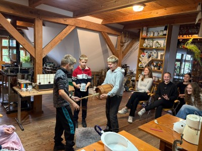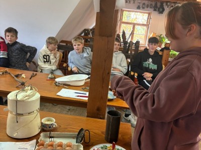 4 listopada 2025 roku uczniowie klas V–VIII ze Szkoły Podstawowej w Połczynie wzięli udział w warsztatach „Życie na Zaborach” w Chacie Kaszubskiej. Podczas zajęć poznali dawne zwyczaje, narzędzia i codzienne życie mieszkańców Kaszub, a także spróbowali swoich sił w tradycyjnych rzemiosłach. Była to ciekawa i pouczająca lekcja historii oraz kultury naszego regionu.